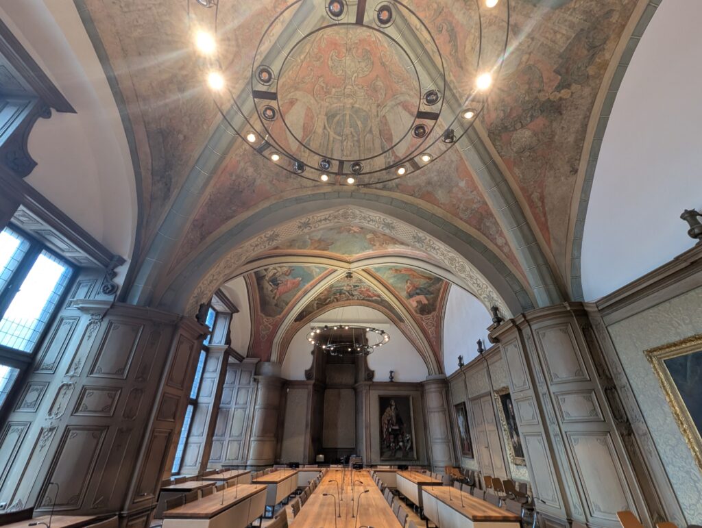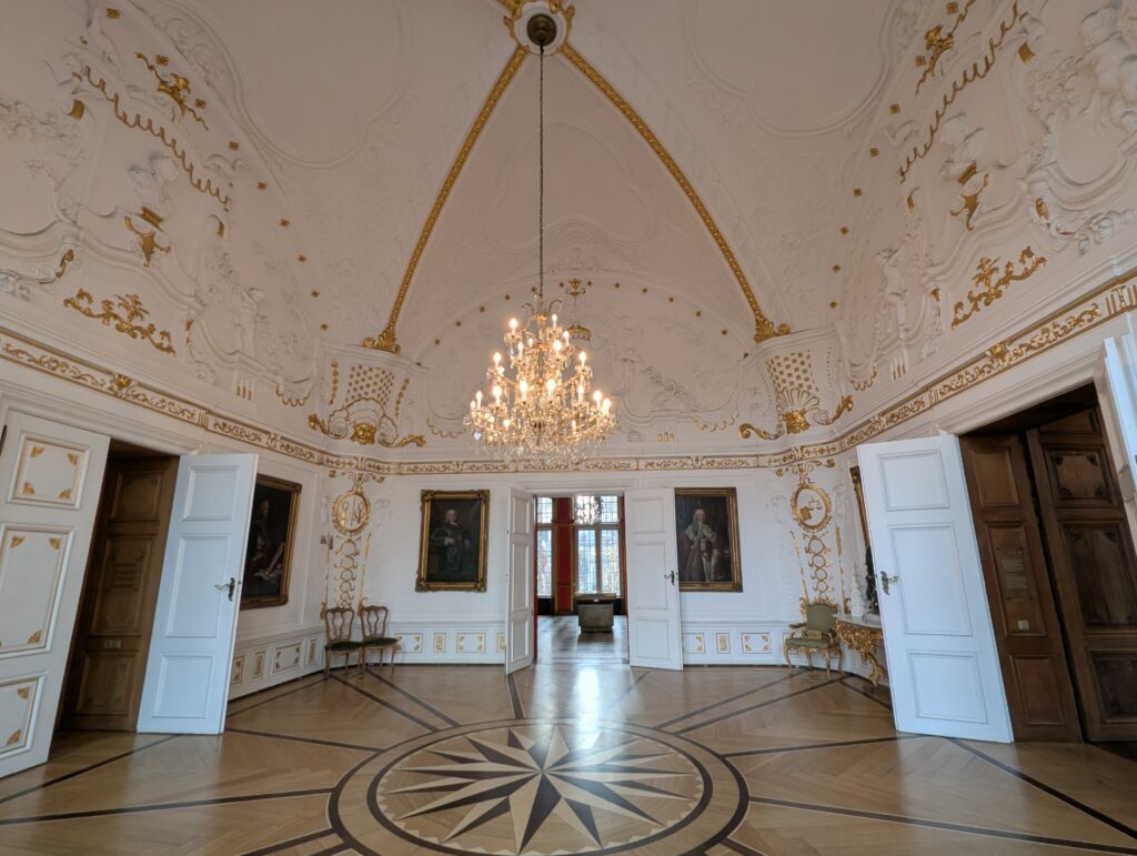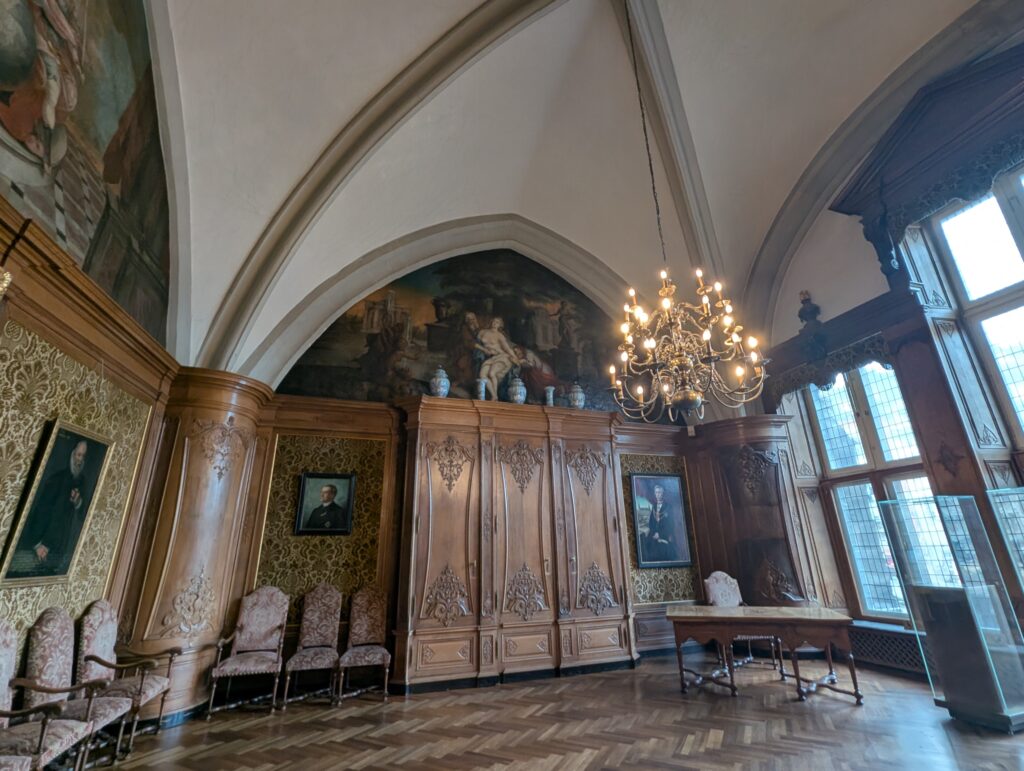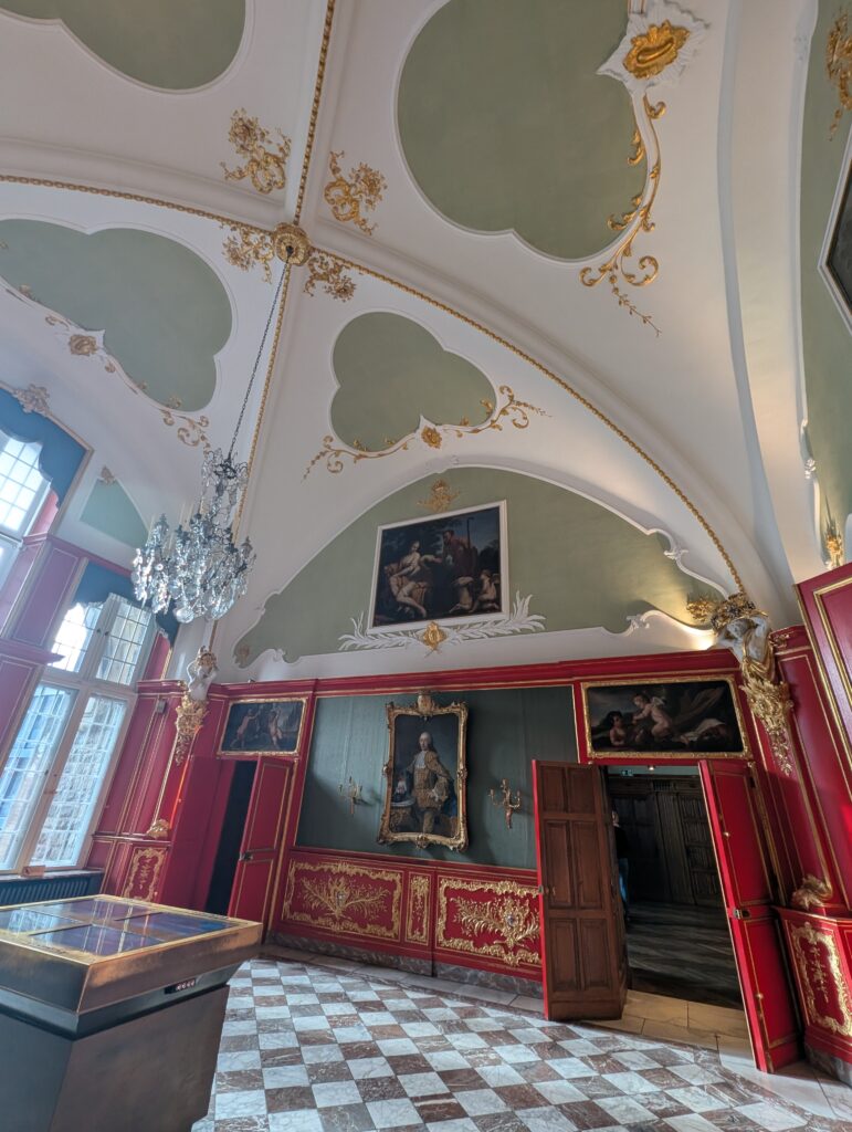 The tapestry room which contain tapestries of the story of Decius Mus sacrificing himself to win a war. They were woven in the 1600’s.