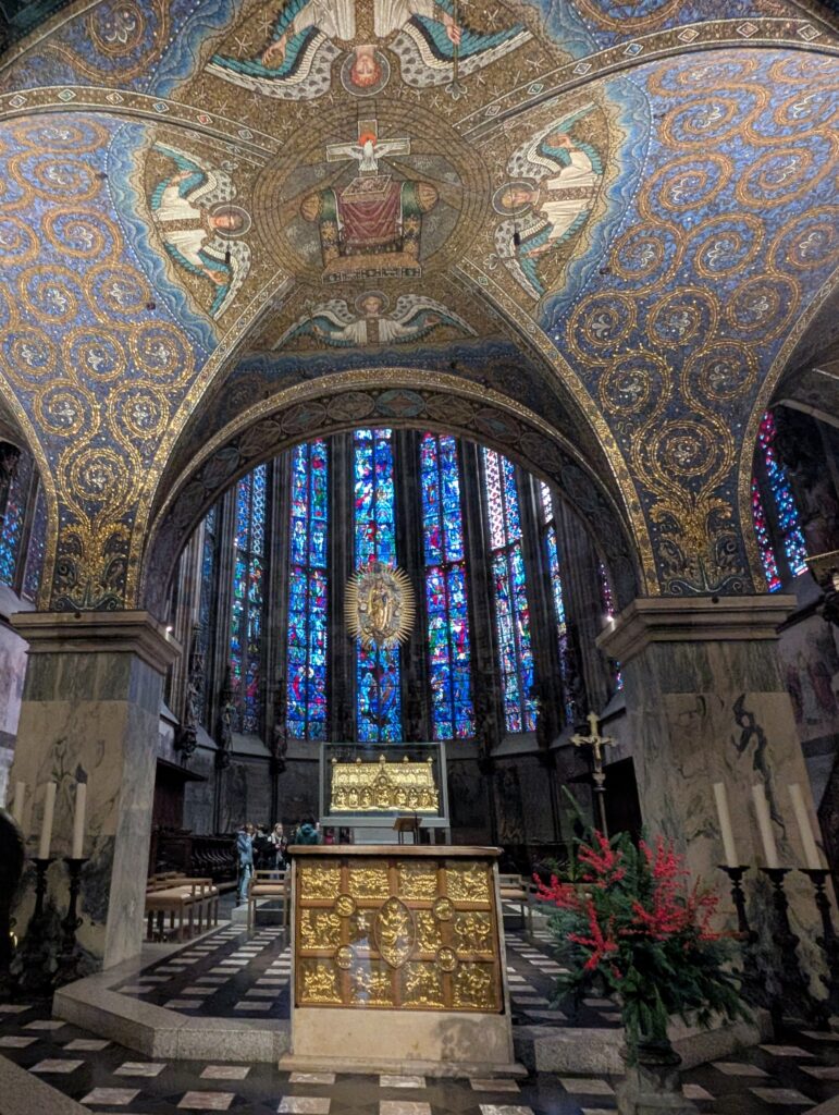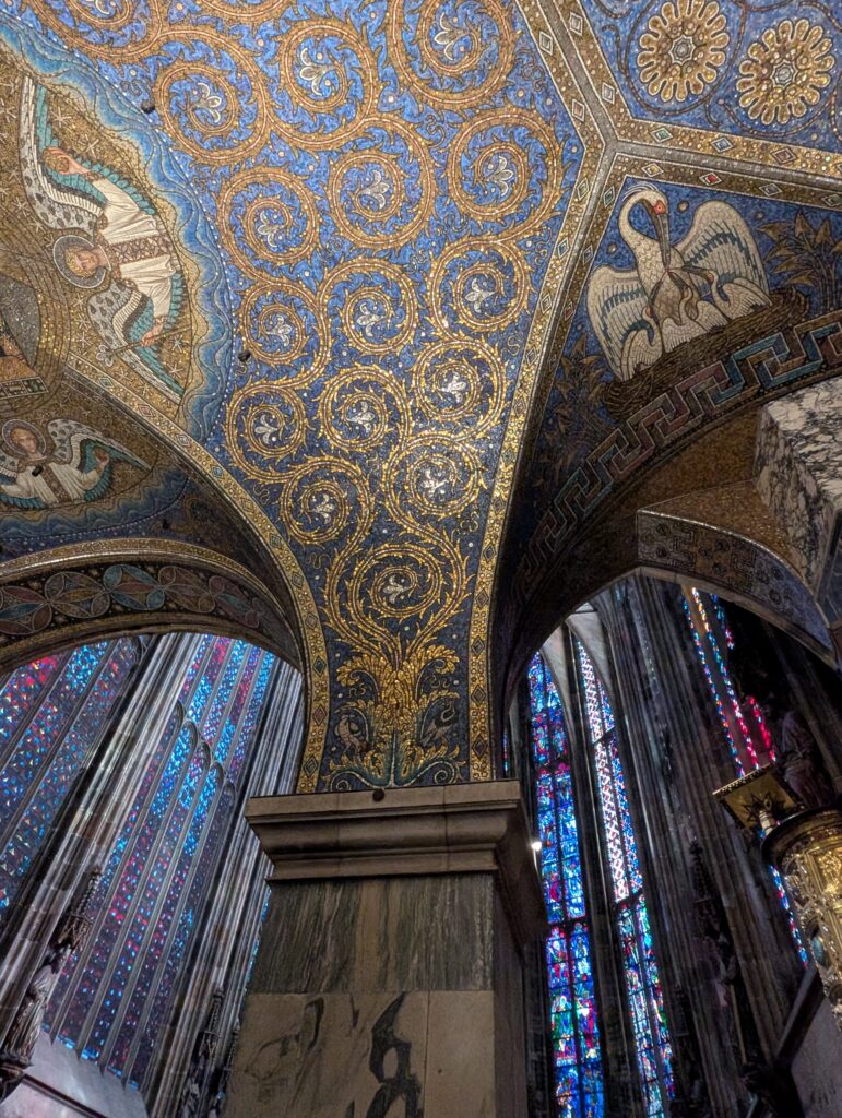 The picture gallery wing built on top of earlier foundations. It used to have a flat room that had problems and a new one was constructed that has some amazing details.