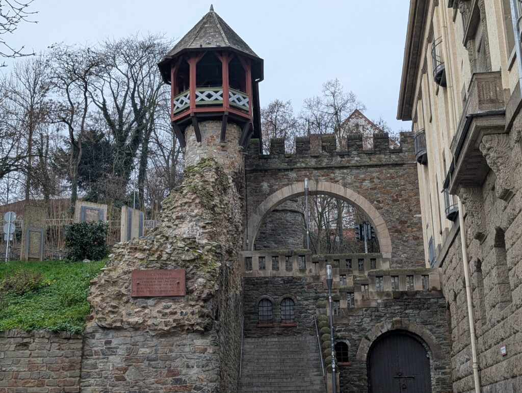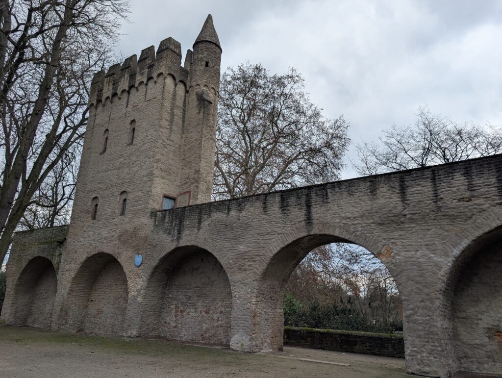 The black friars gate and black Abbey was built in the 13th century. The friars had the key to the gate and charged taxes for entrance. The tower was for defense and was part of the city wall at that time.