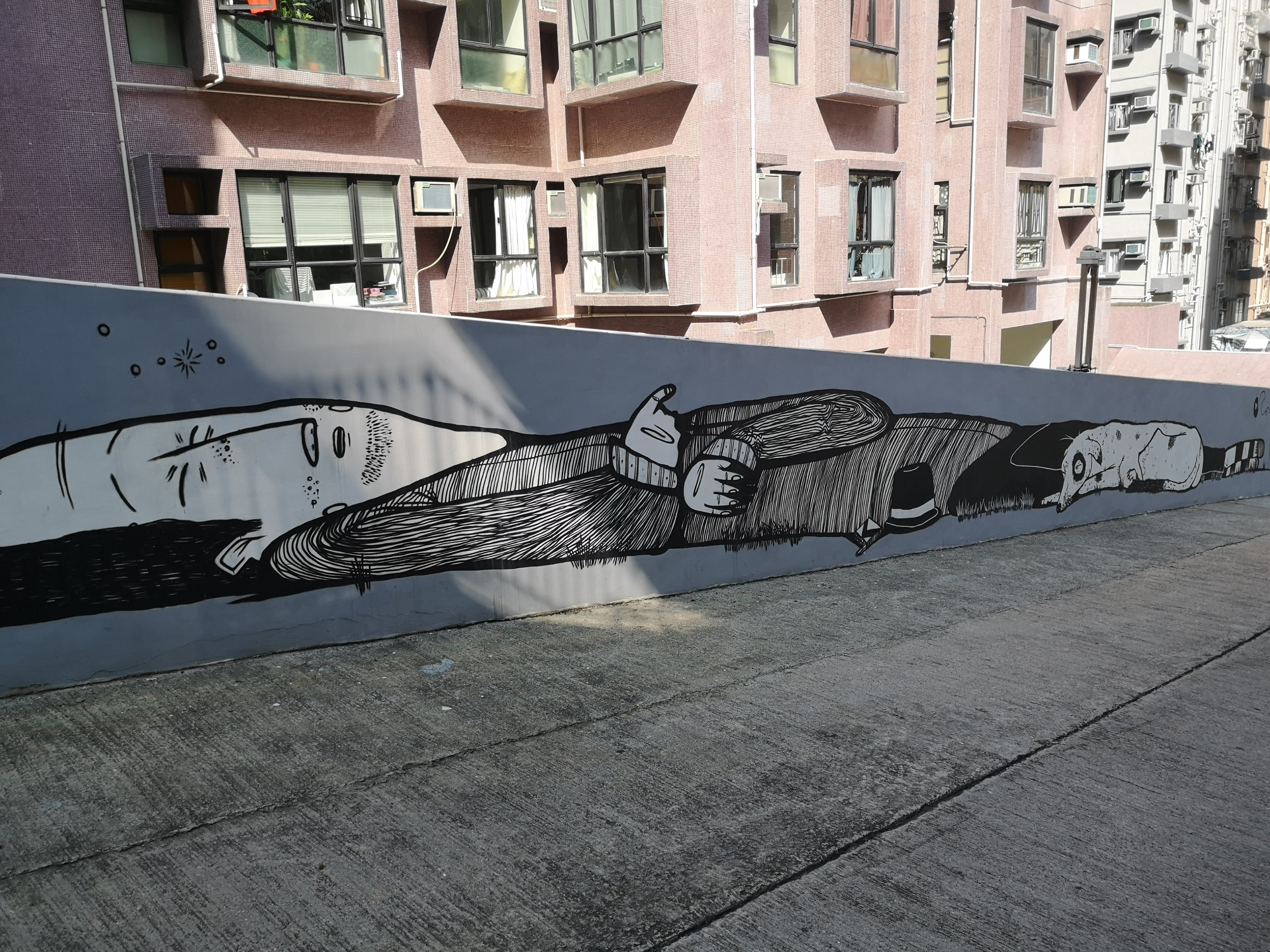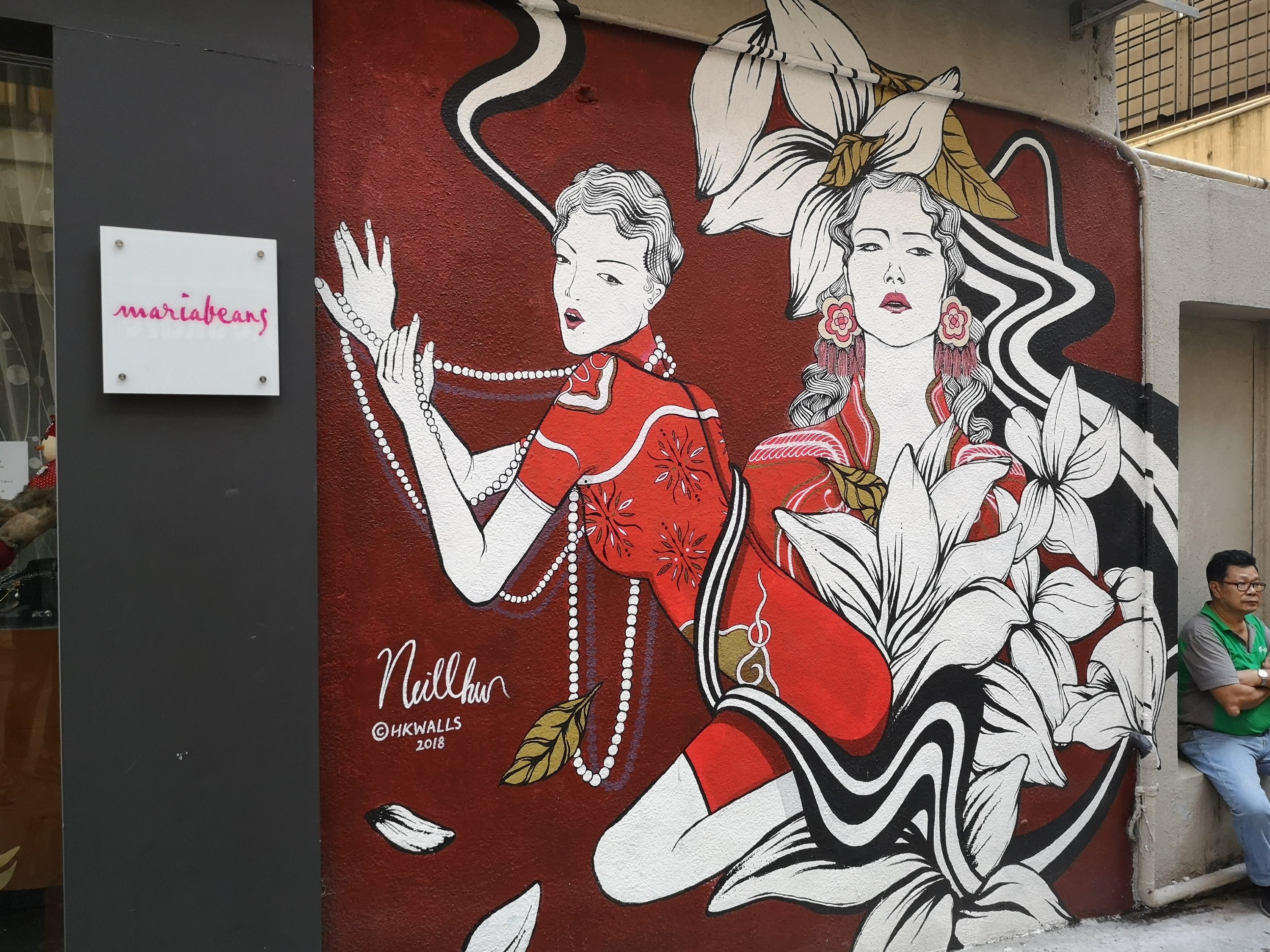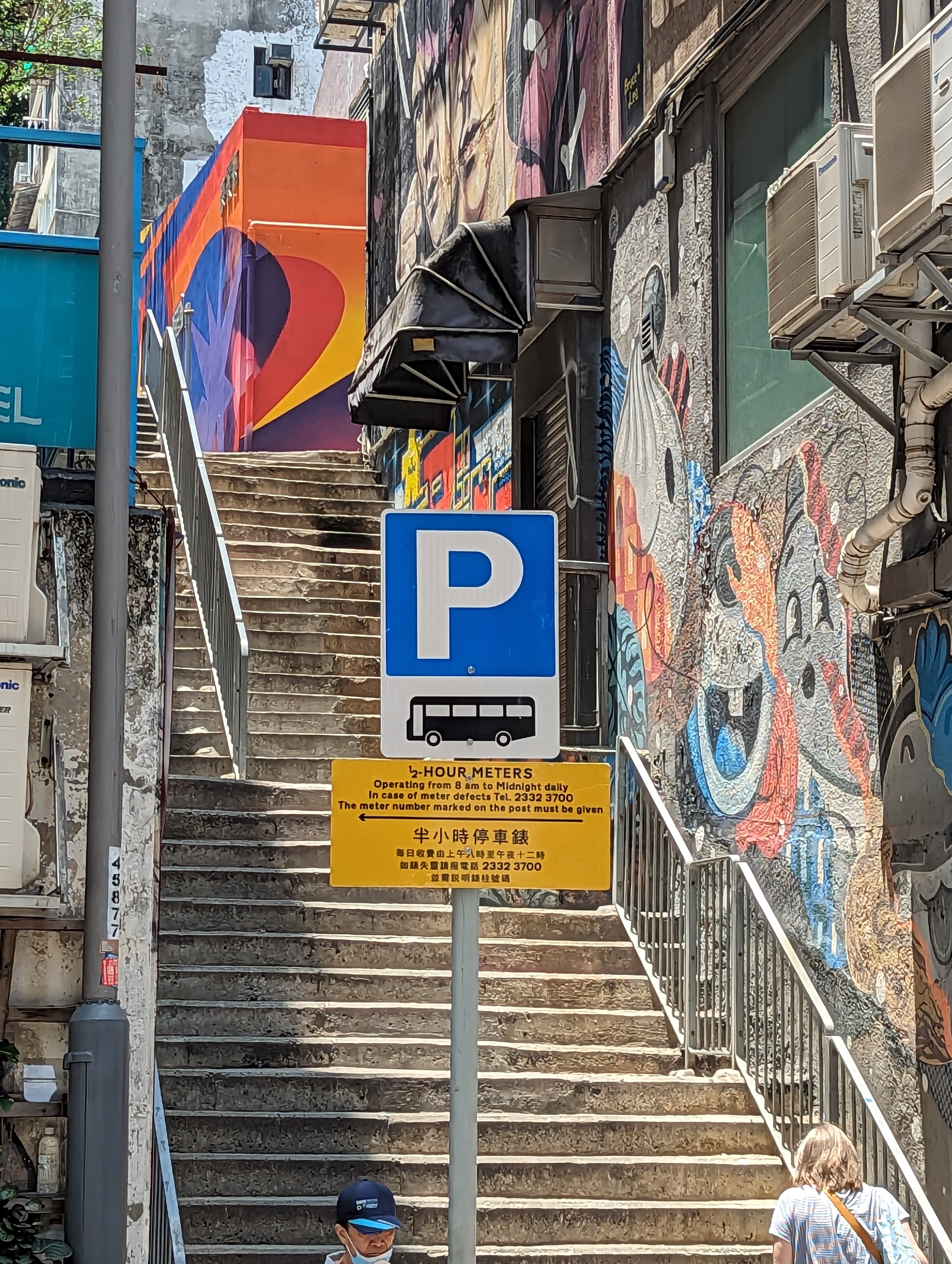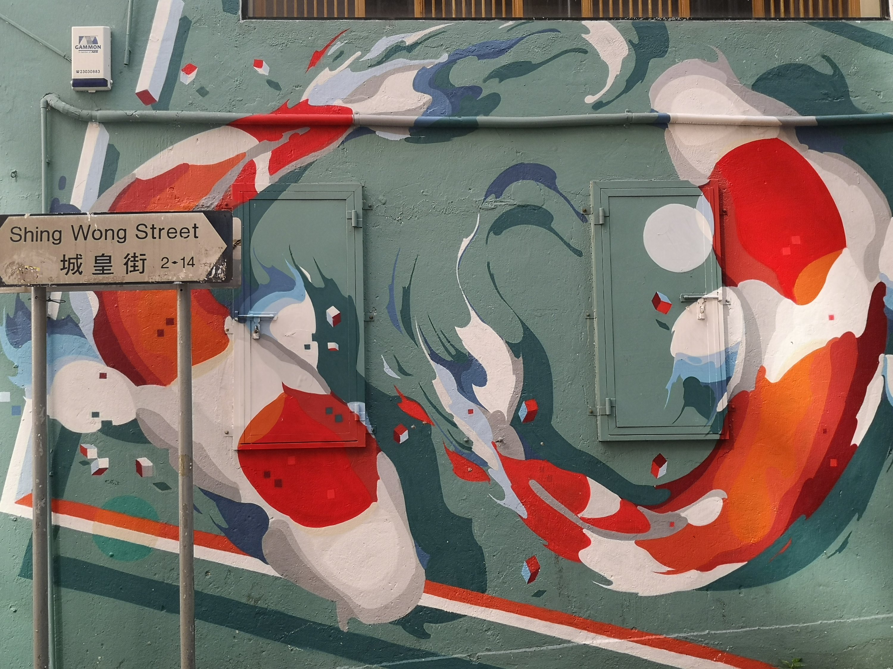 We walked along sheung wan where street art is but I am slow with stairs still.