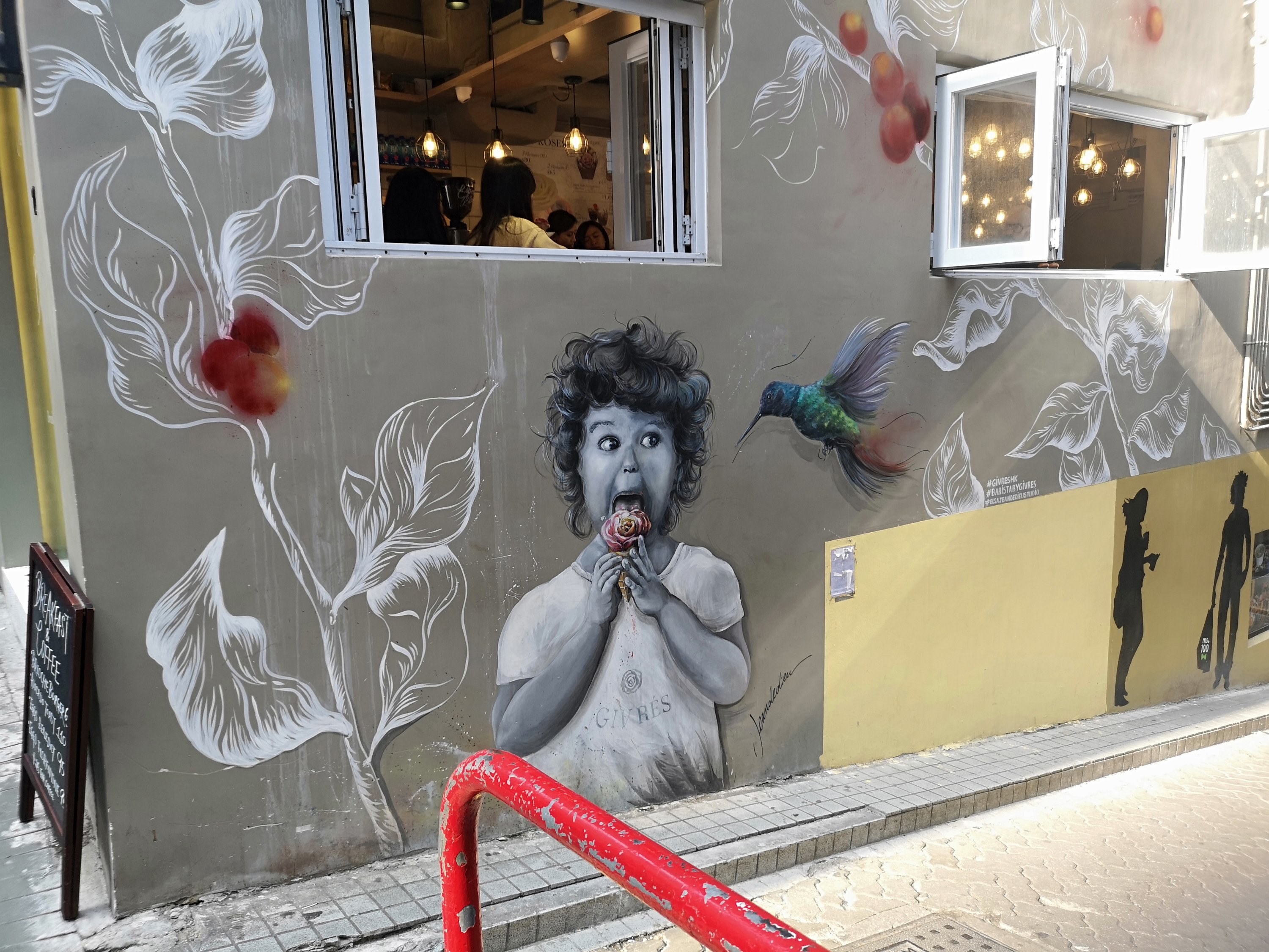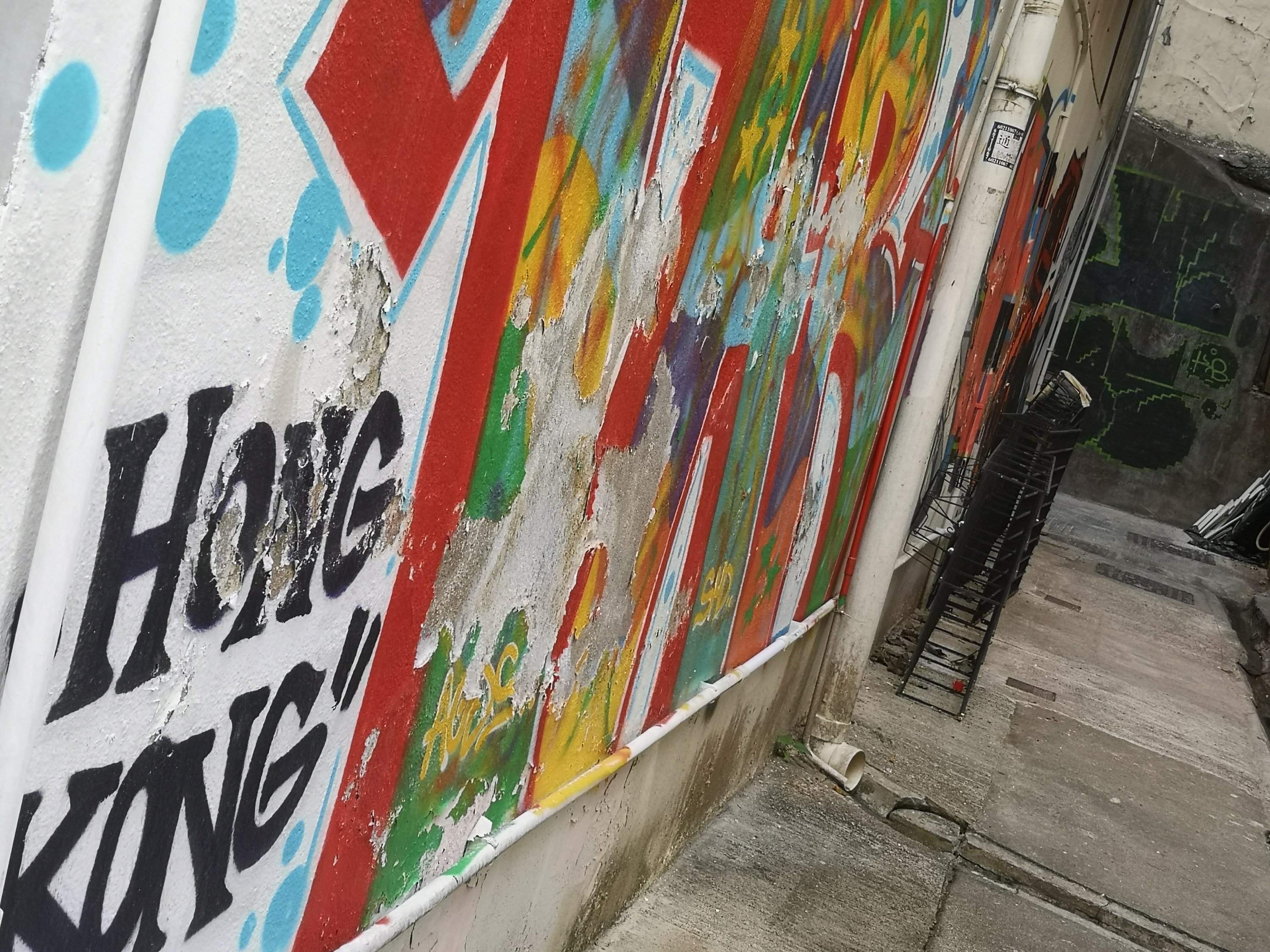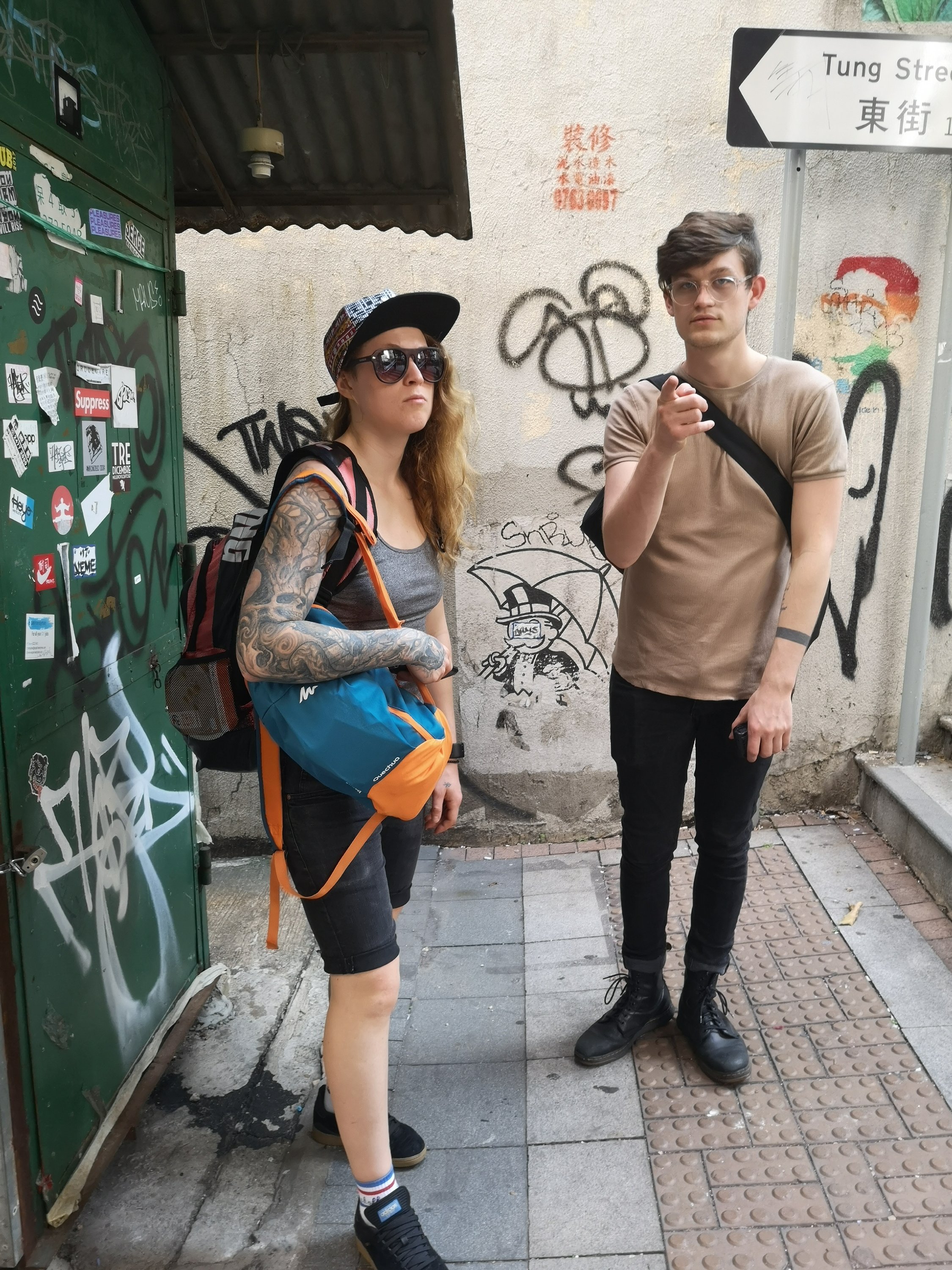 We walked along sheung wan where street art is but I am slow with stairs still.