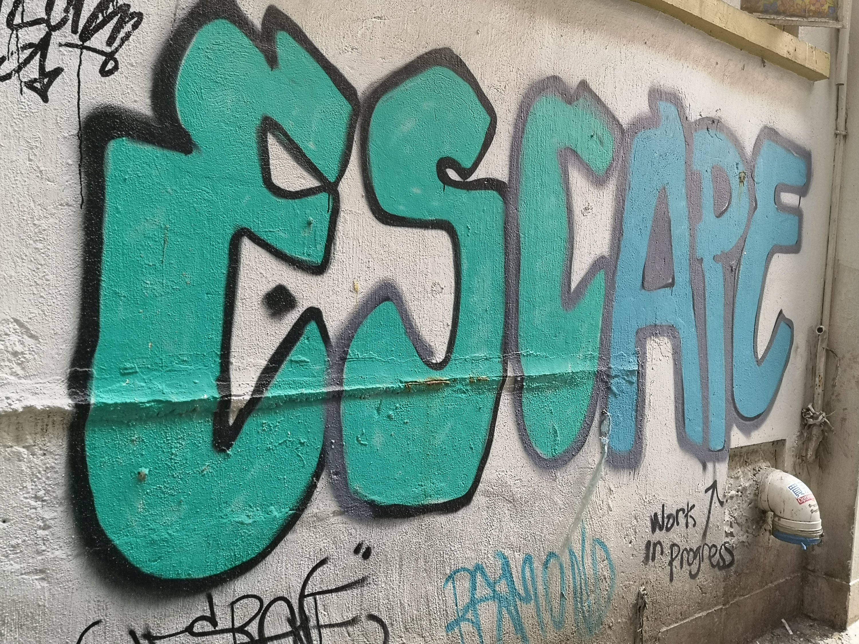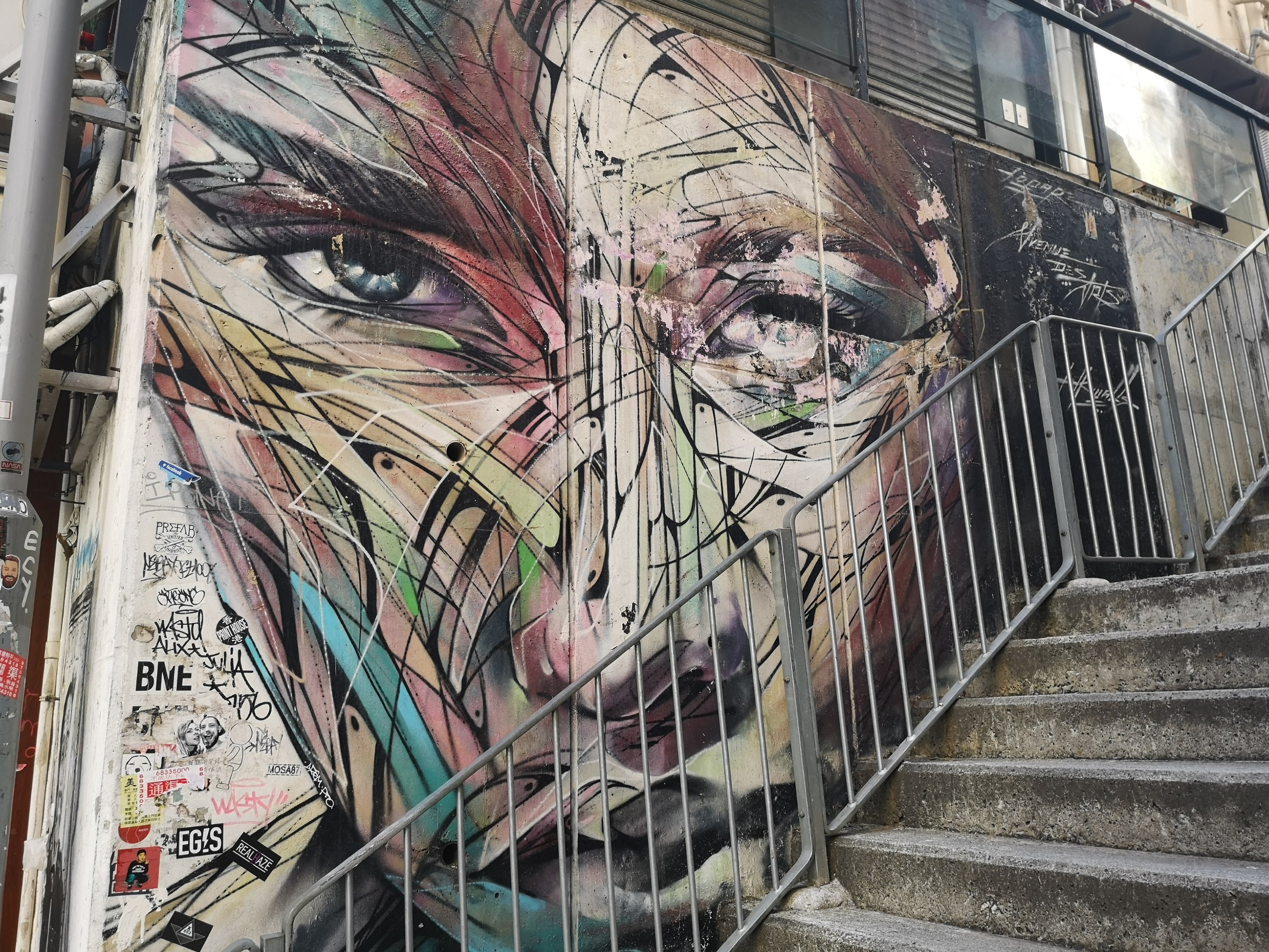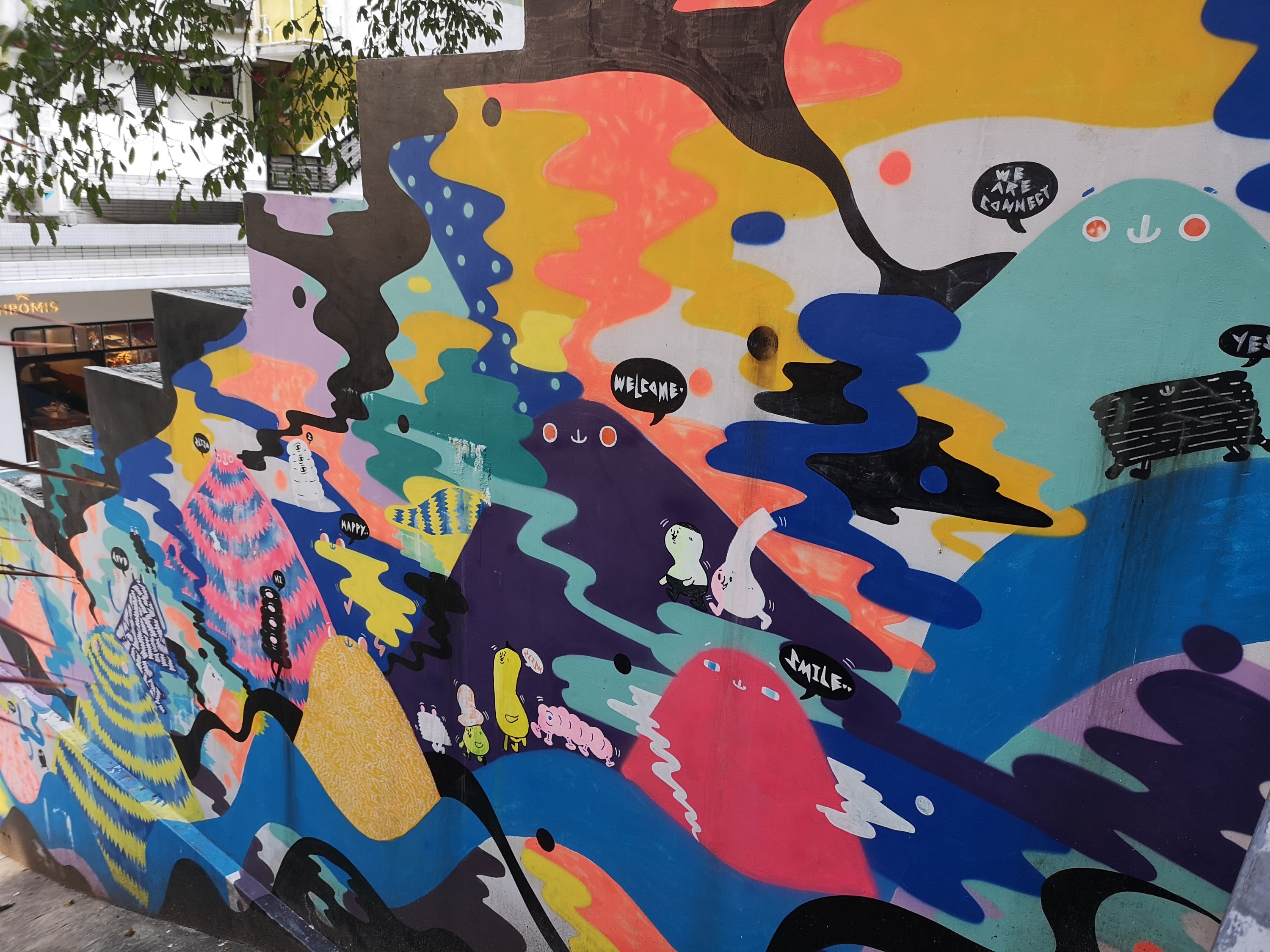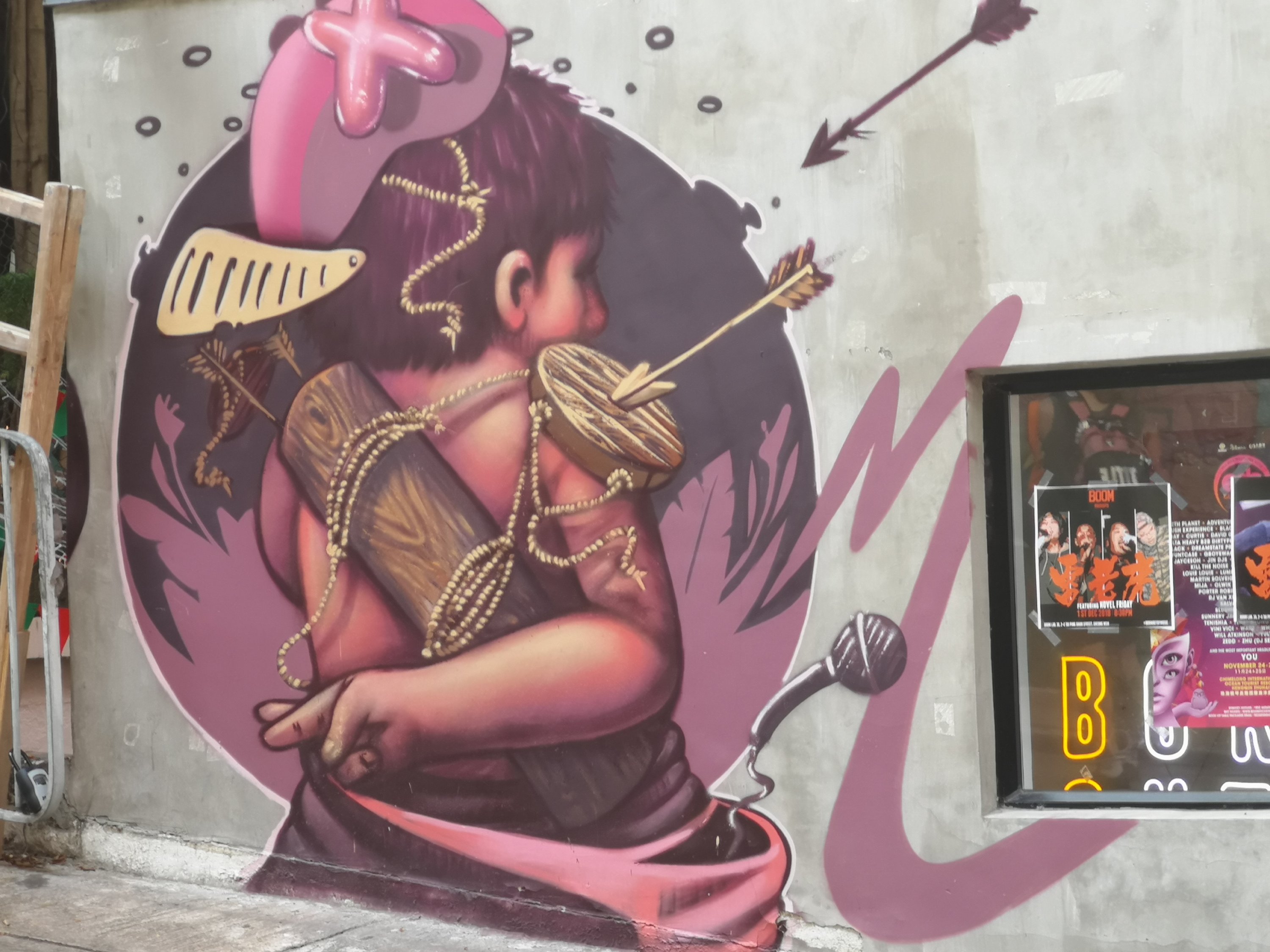 We walked along sheung wan where street art is but I am slow with stairs still.