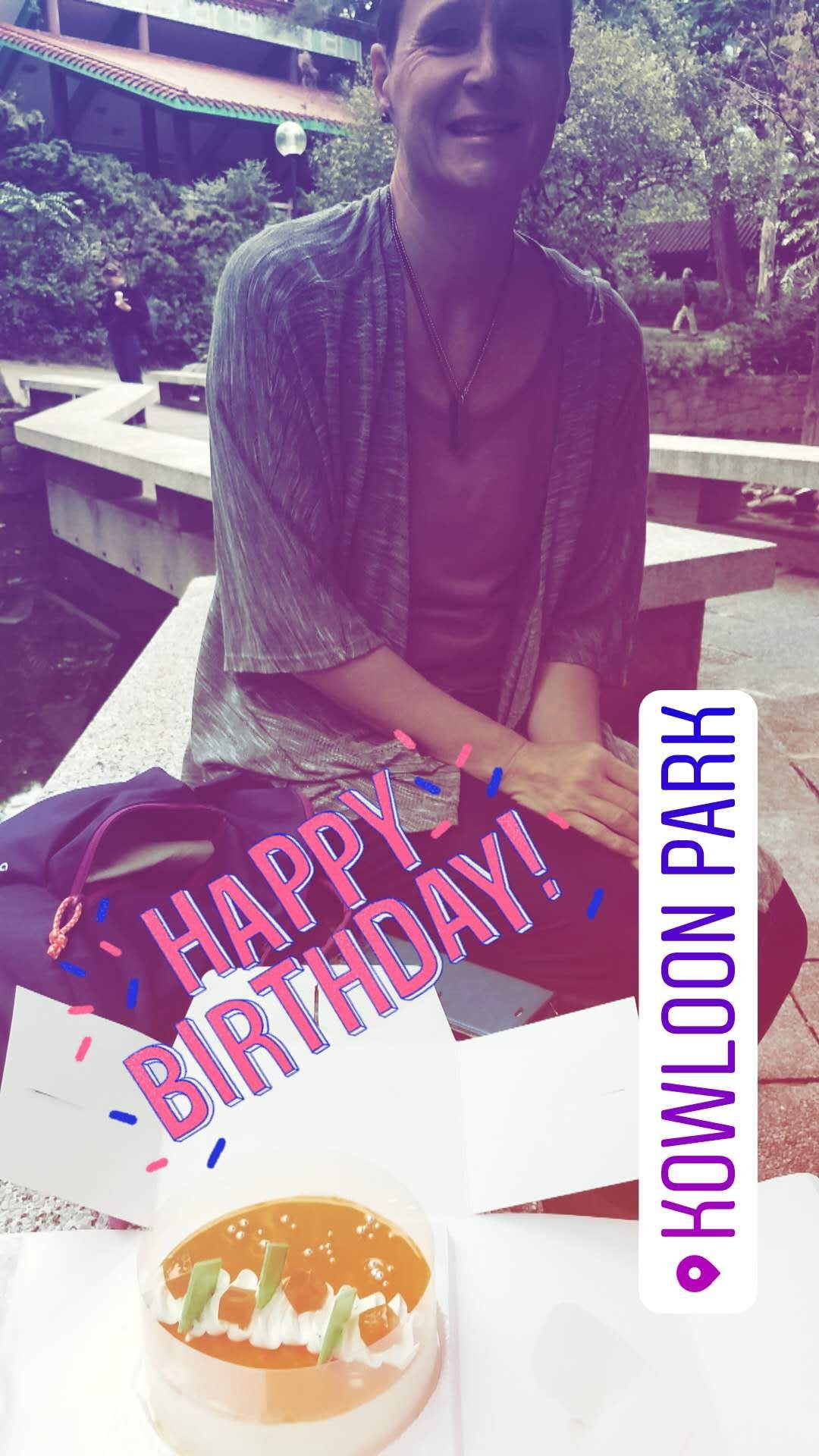 Becca and Ryan surprised me with a cheesecake for my birthday. We went to Kowloon Park to eat it. Mango cheesecake! It was yummy. I can’t believe we ate the cheesecake for dinner.