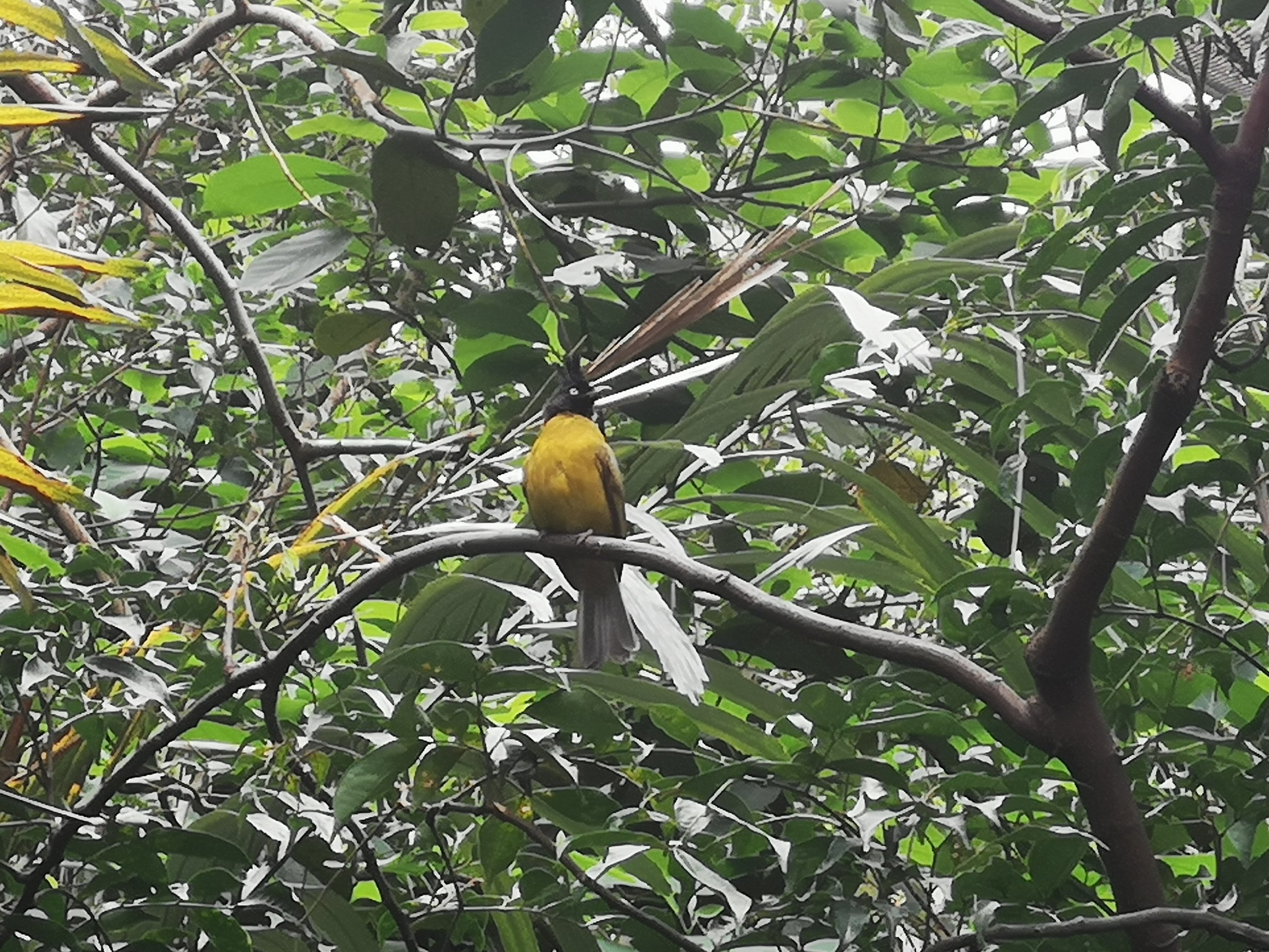 At Hong Kong park we visited the aviary.This is a black crested yellow bulbul.