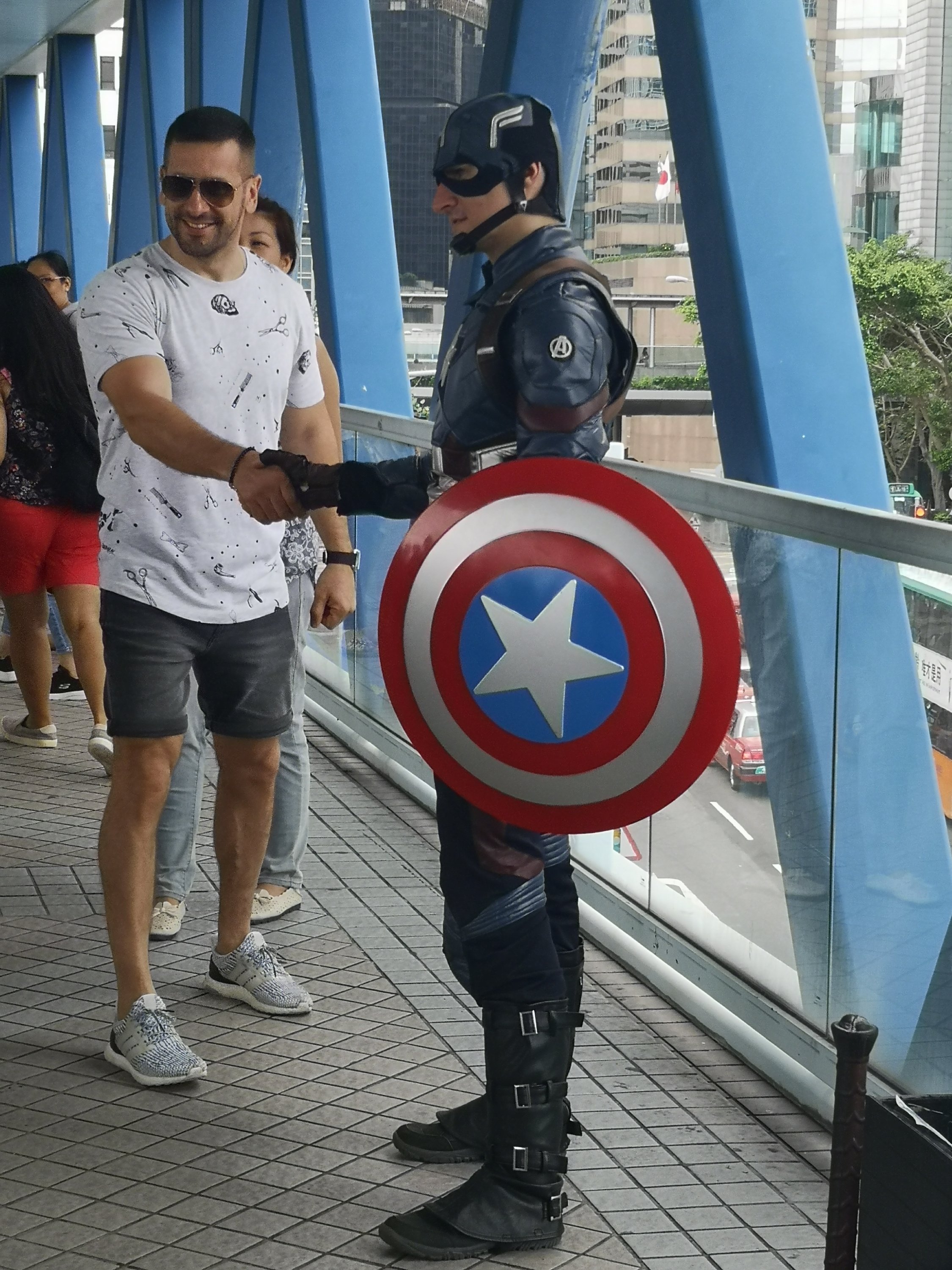 And where else but in Hong Kong will you have street performers with all kinds of music and show stoppers like Captain America?