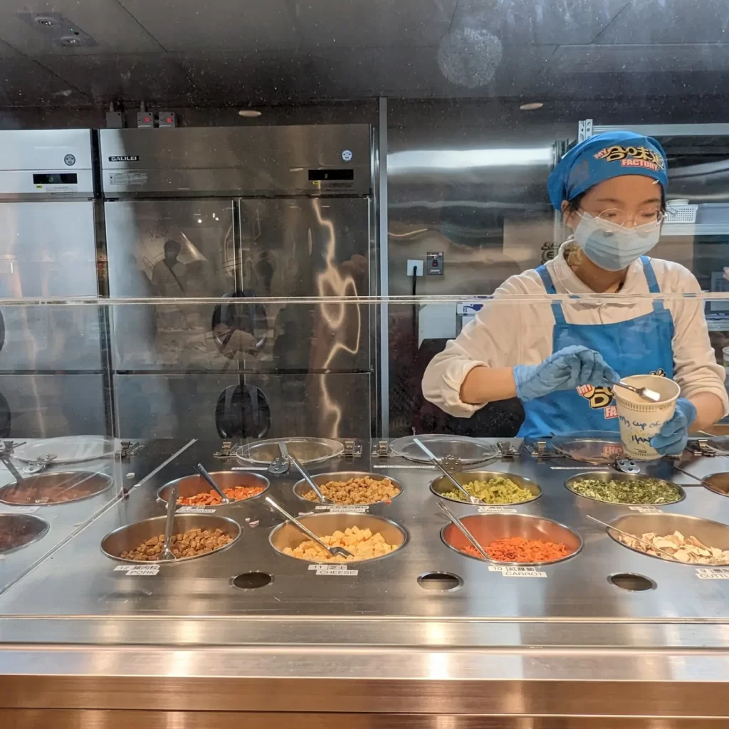 We decorated cups then chose our original mixture for the noodle soup. Mine included laksa soup base and even papaya!