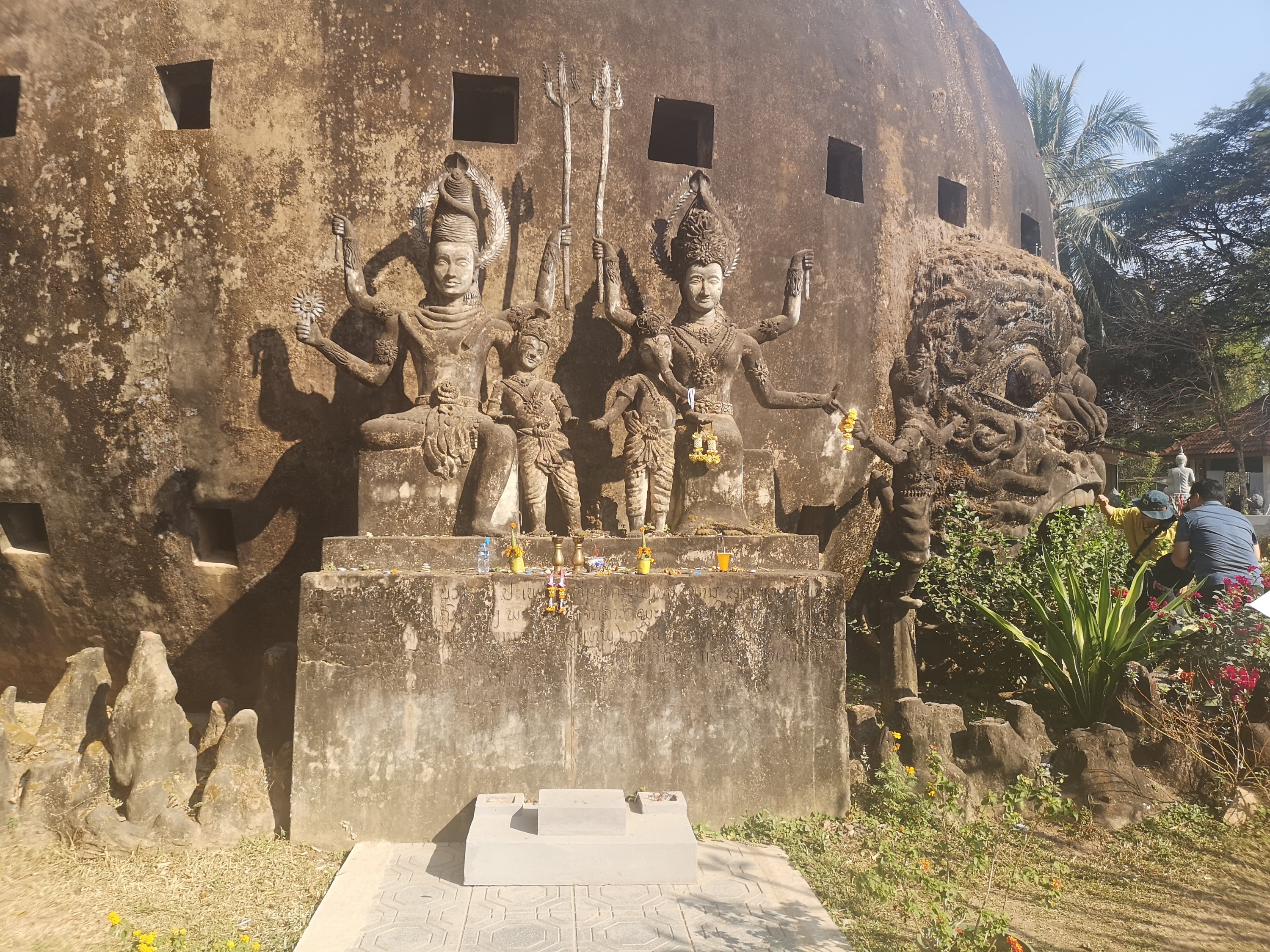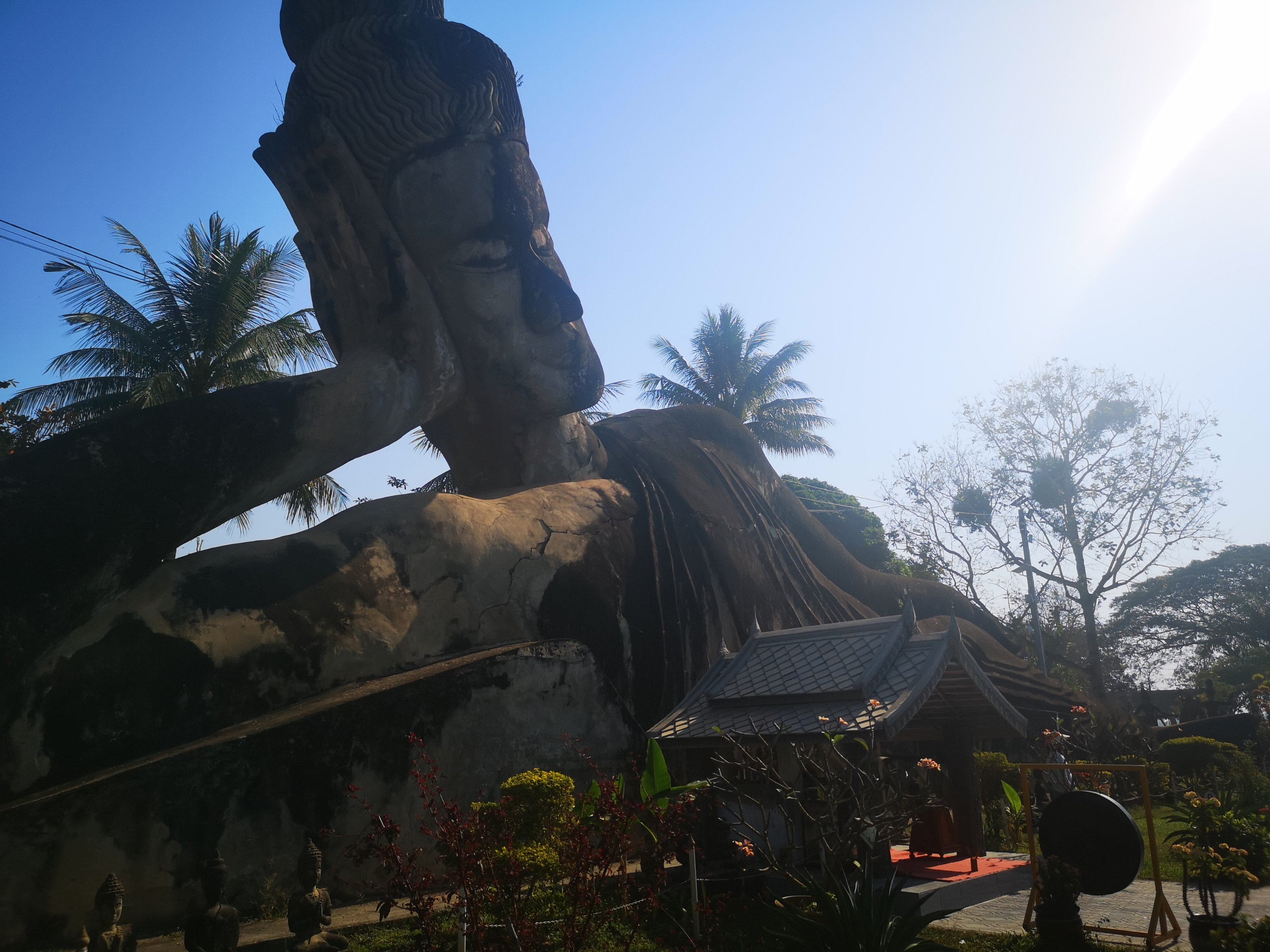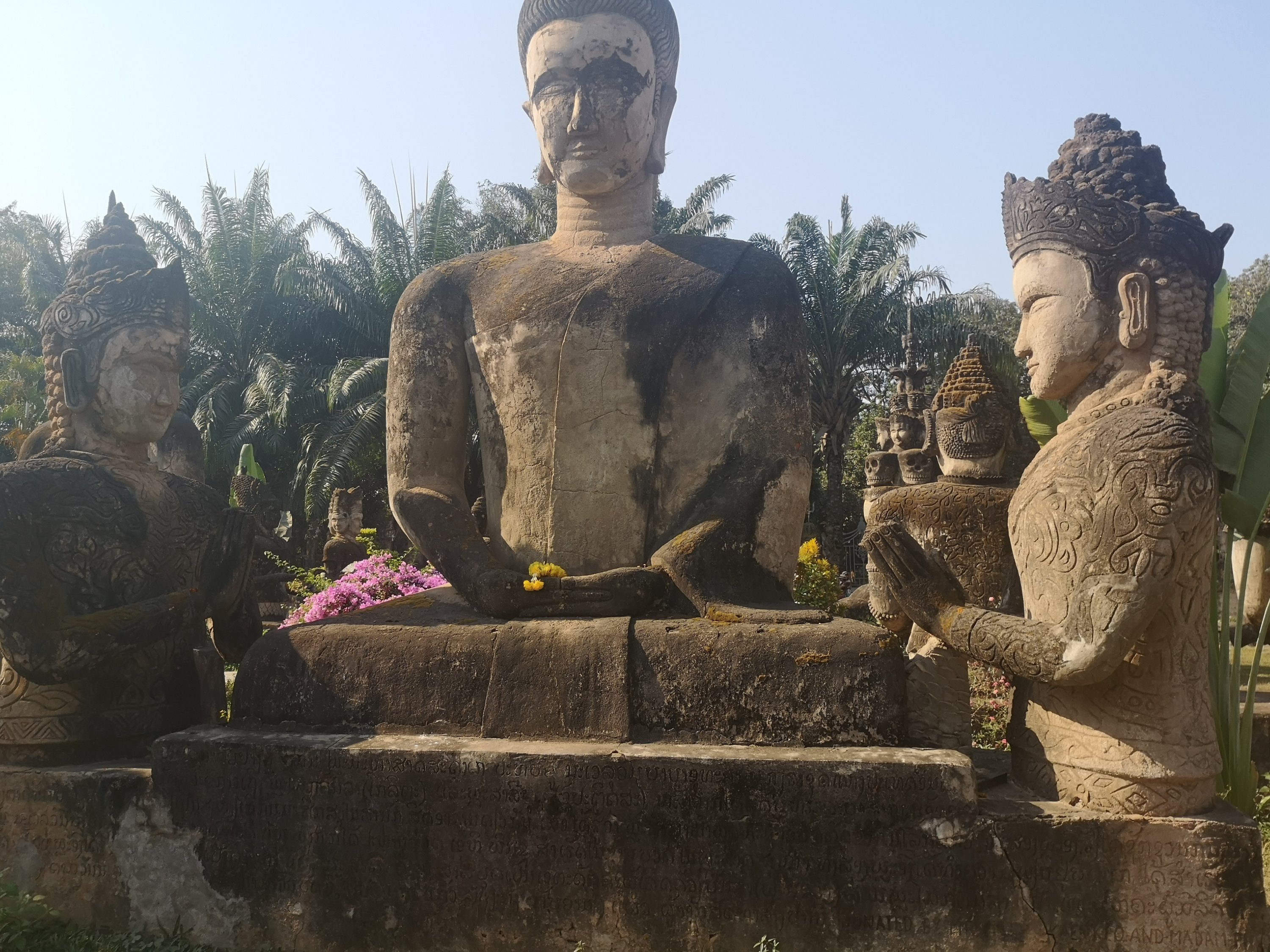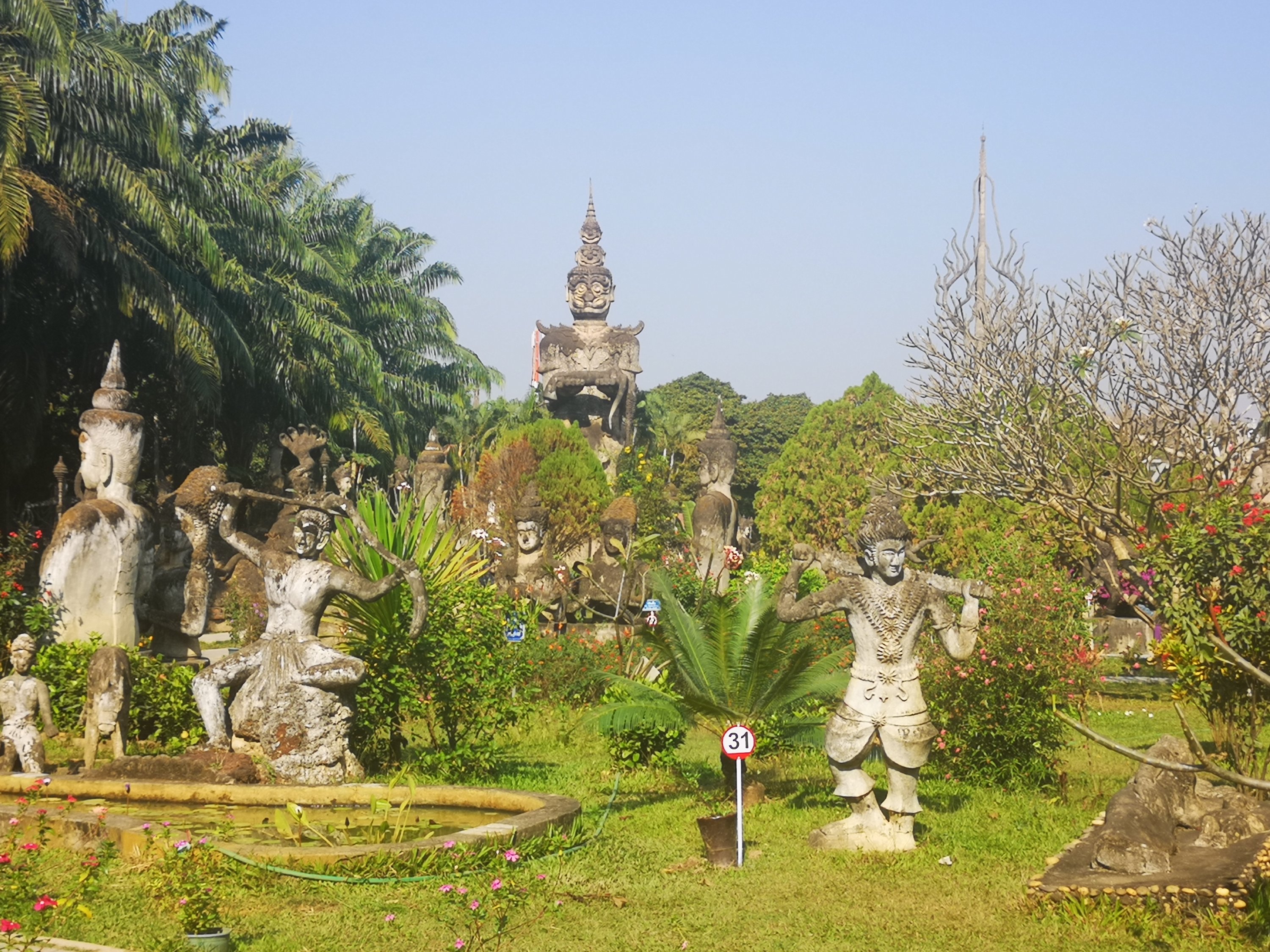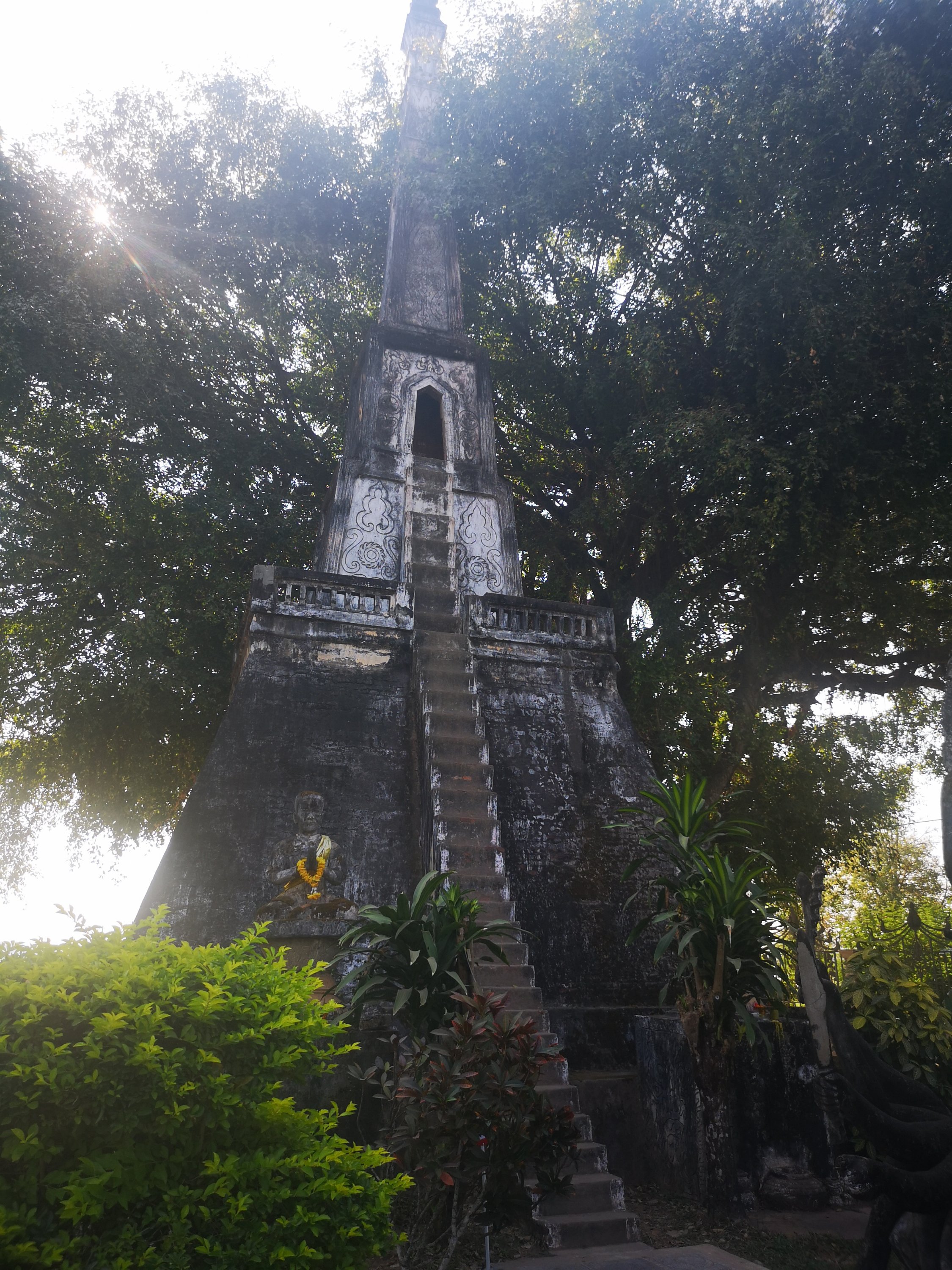 Buddha Park is also known as Xiang Khan, it means “Spirit City”. There are no traditional Buddha statues. Built by Luang Pu, who styled the park in Buddhist and Hindu mythology erected statues built by amateurs to showcase that mythology. The statues are bizarre and cool at the same timeand each tells a story. As it was my last morning in Vientiane and we needed to check out of the hotel, we did not spend time to do the audio tour. During unrest during the revolution in Laos in 1975, he fled the city into Thailand (Nong Khai) which is less than 1 kn away and built a similar park there. You can see the Laos park from the highest structure in the park in Thailand.