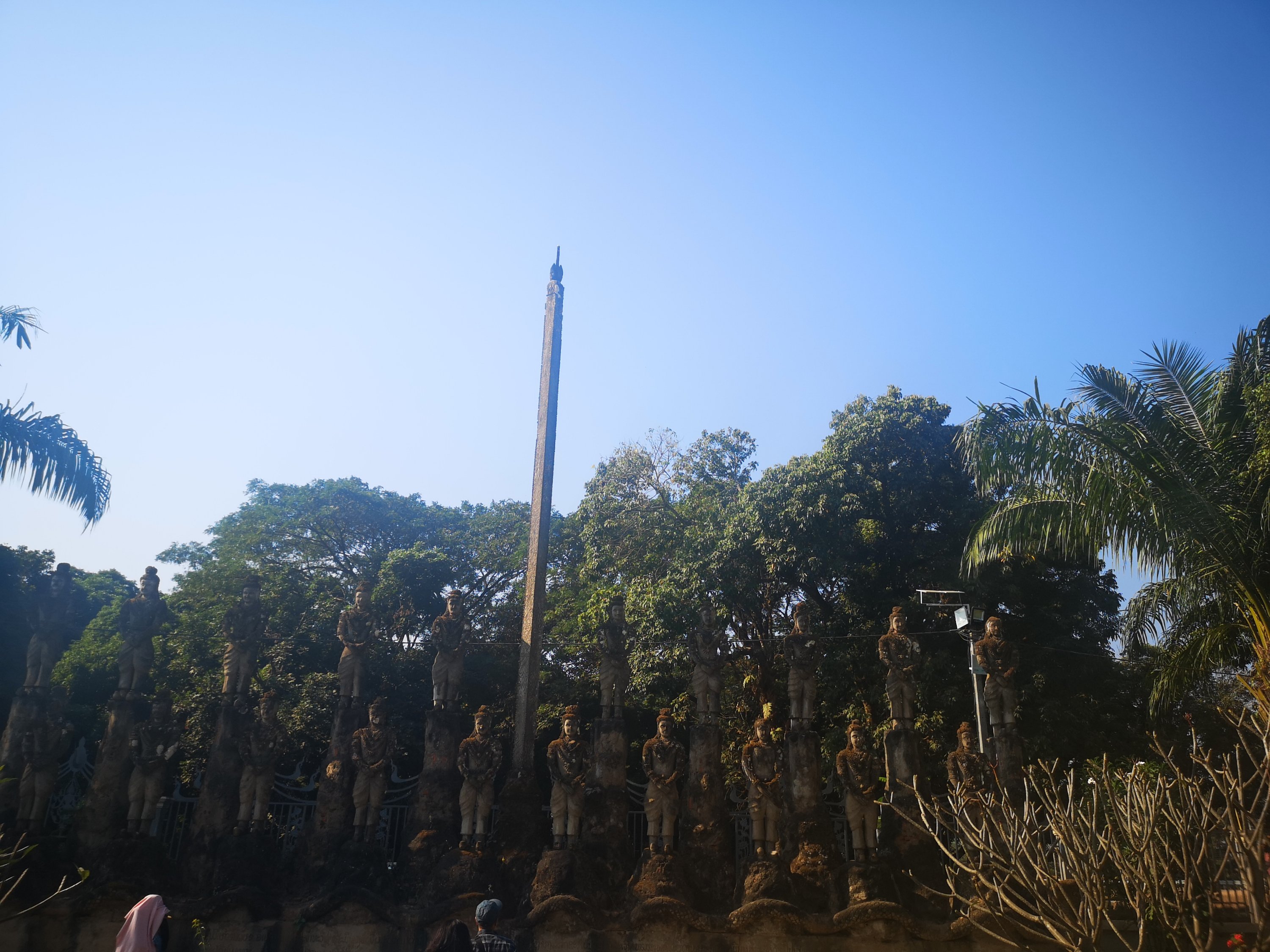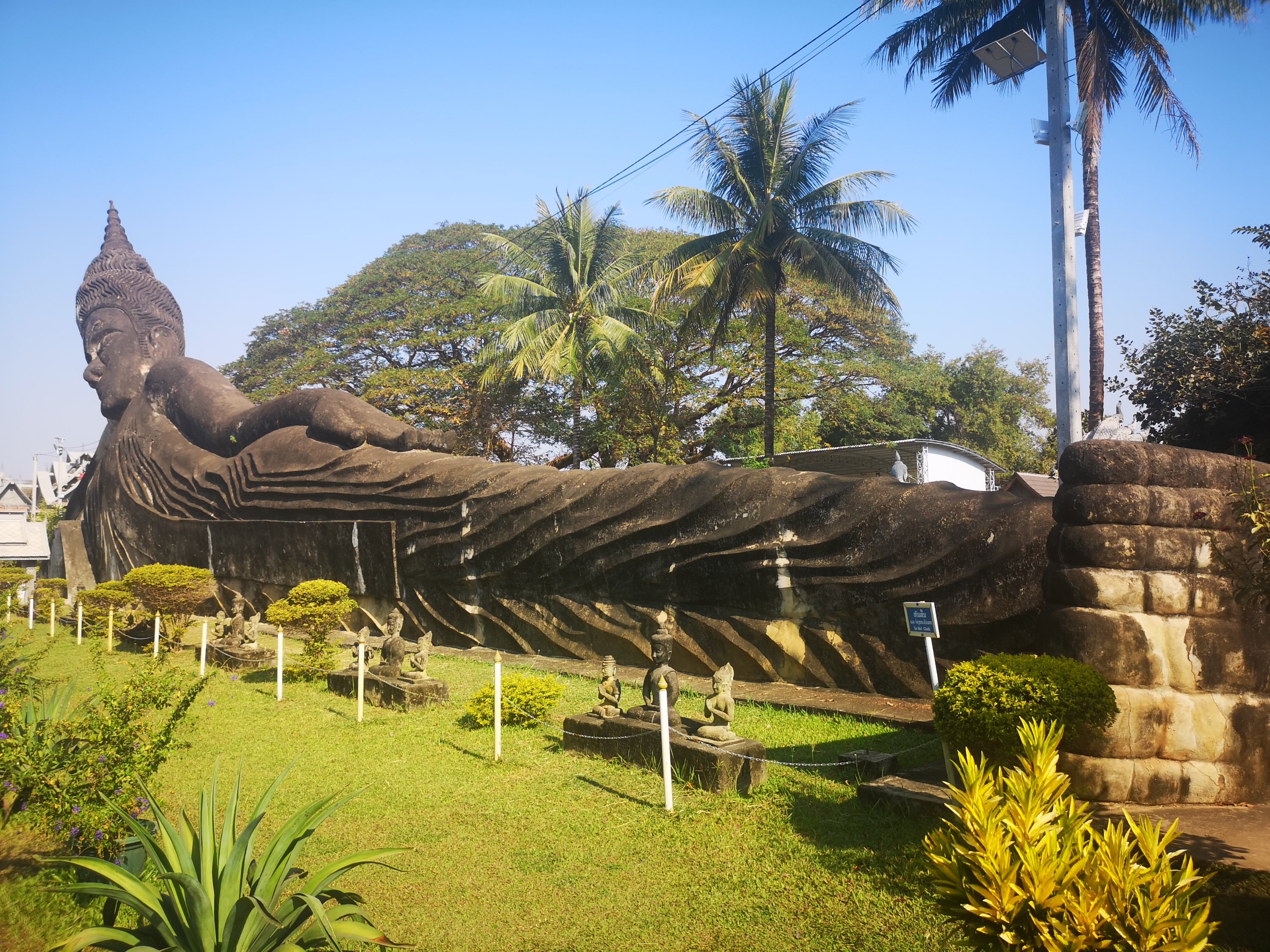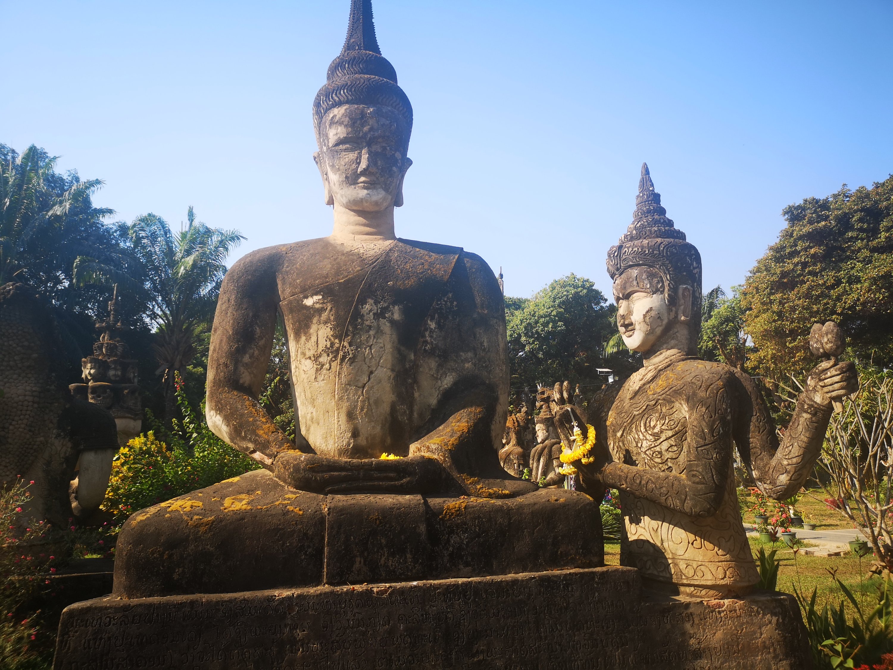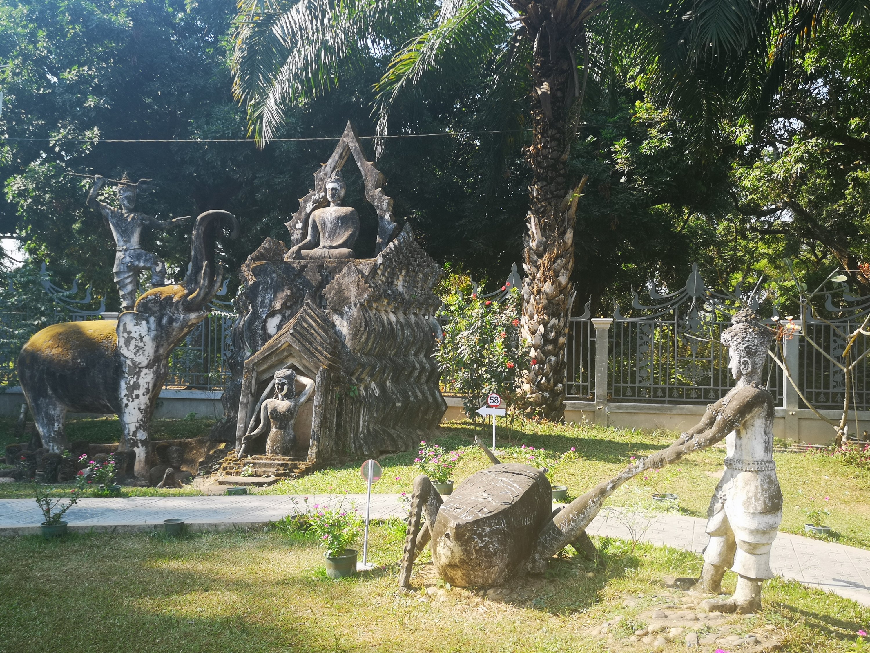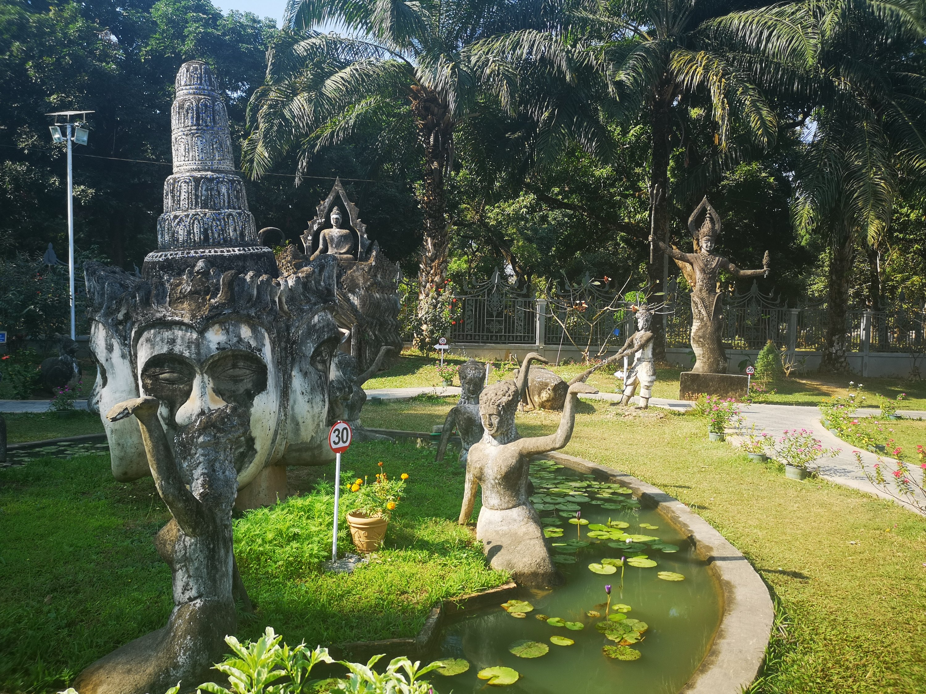 Buddha Park is also known as Xiang Khan, it means “Spirit City”. There are no traditional Buddha statues. Built by Luang Pu, who styled the park in Buddhist and Hindu mythology erected statues built by amateurs to showcase that mythology. The statues are bizarre and cool at the same timeand each tells a story. As it was my last morning in Vientiane and we needed to check out of the hotel, we did not spend time to do the audio tour. During unrest during the revolution in Laos in 1975, he fled the city into Thailand (Nong Khai) which is less than 1 kn away and built a similar park there. You can see the Laos park from the highest structure in the park in Thailand.
