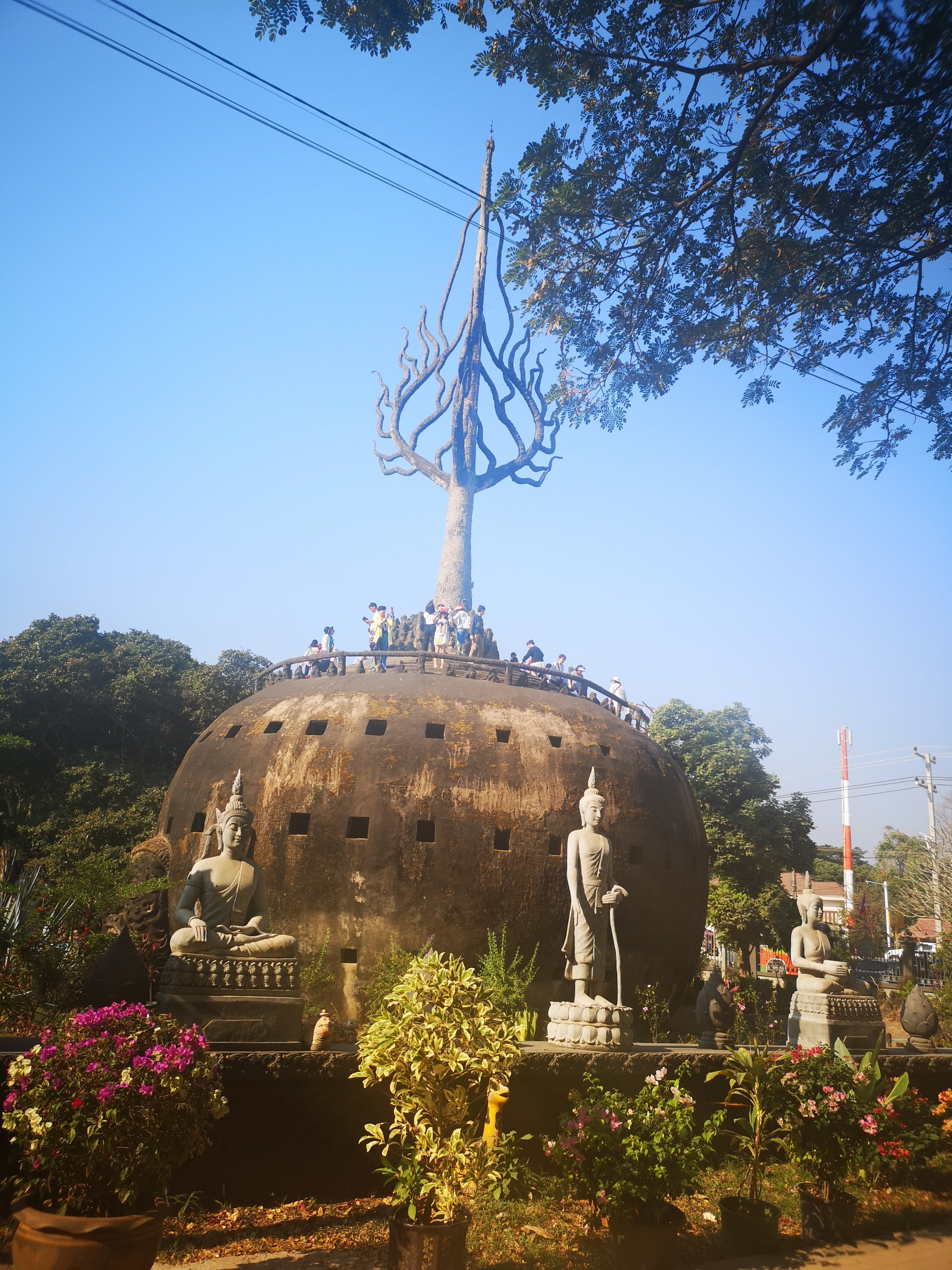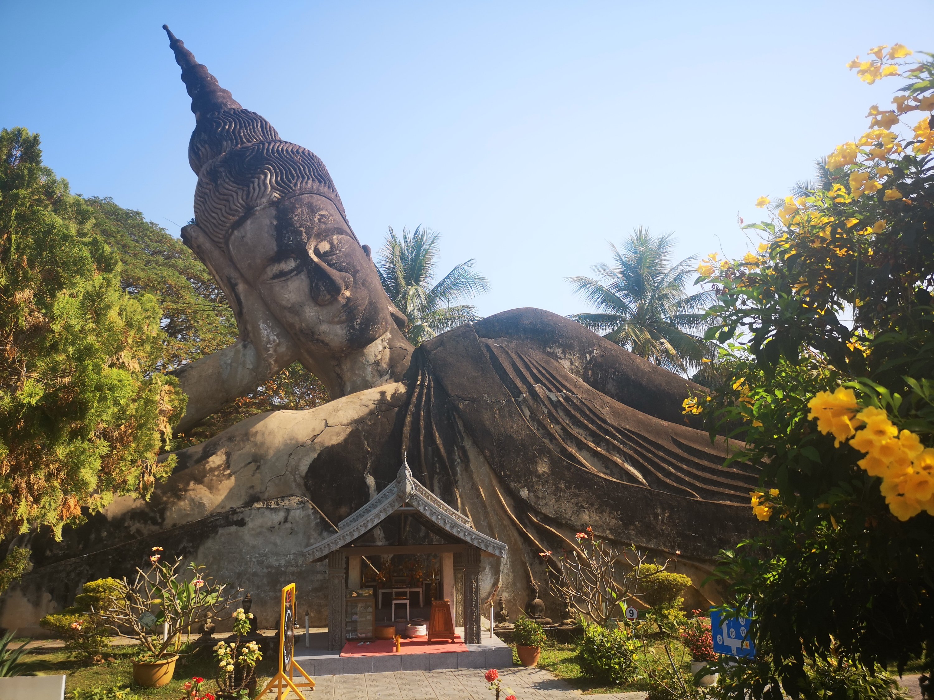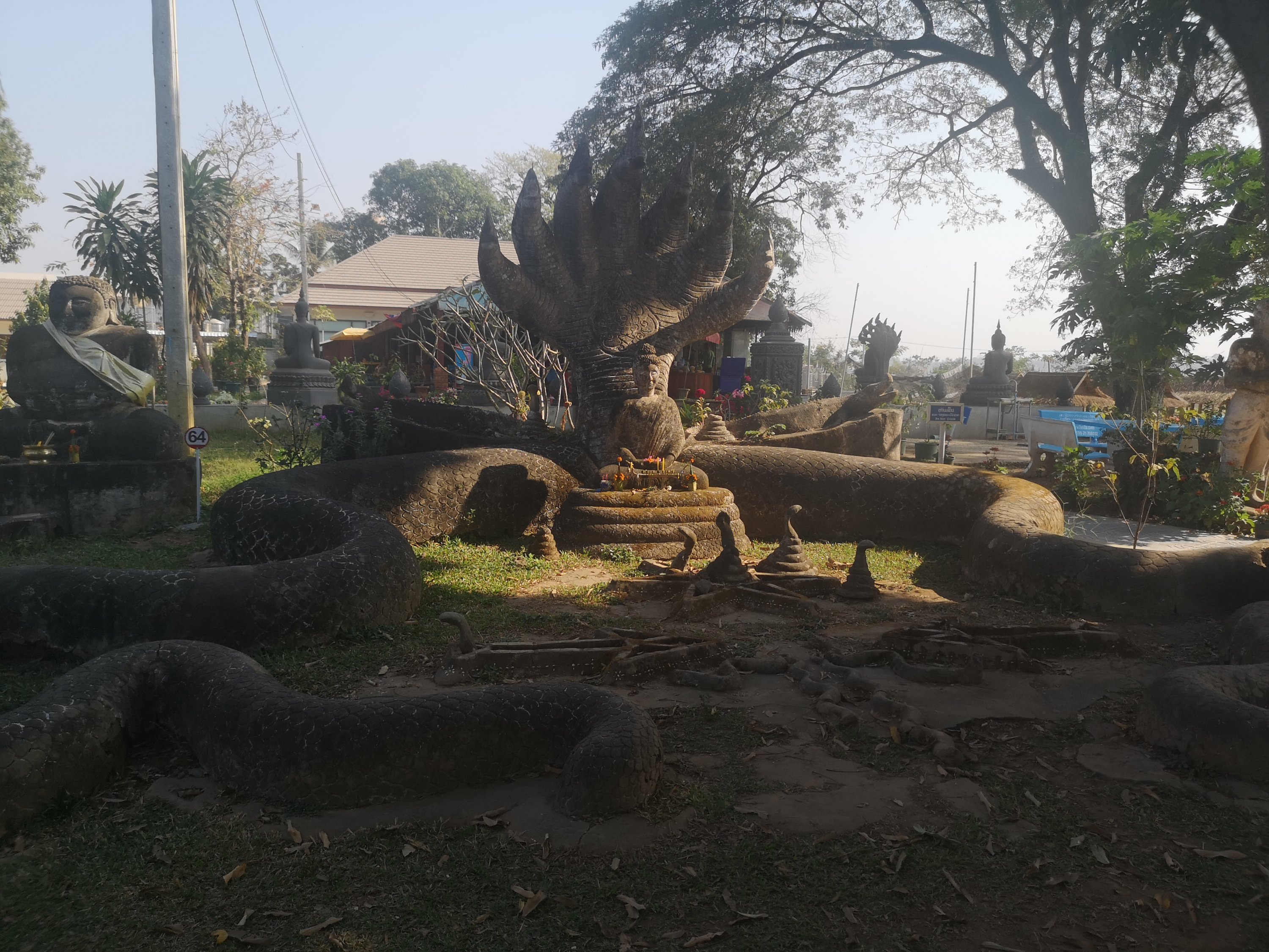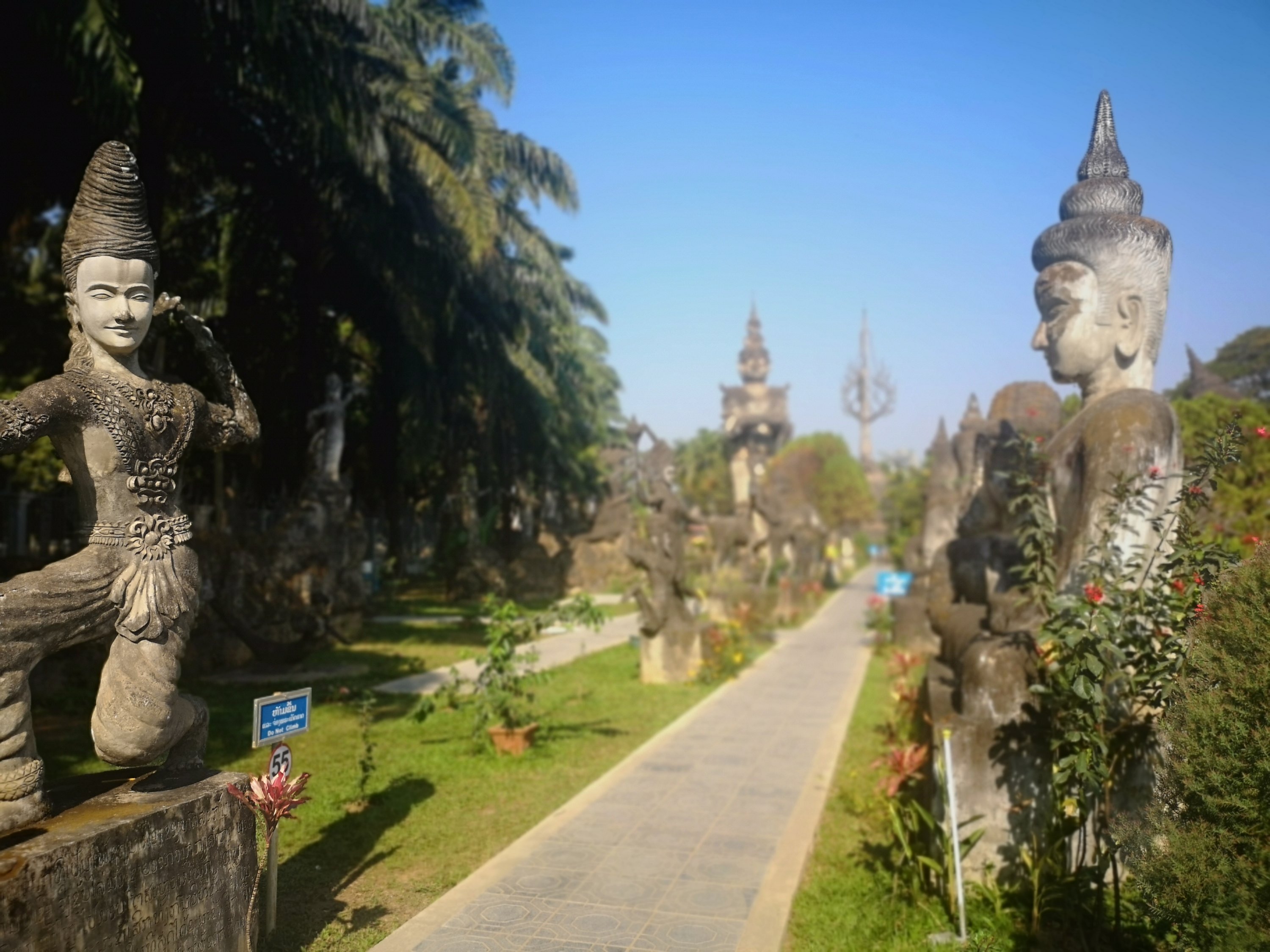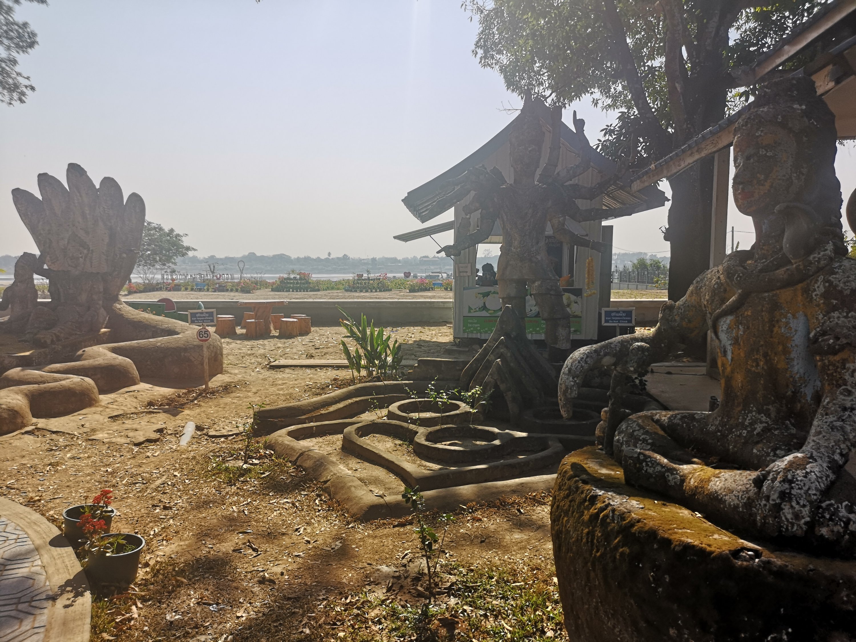 Buddha Park is also known as Xiang Khan, it means “Spirit City”. There are no traditional Buddha statues. Built by Luang Pu, who styled the park in Buddhist and Hindu mythology erected statues built by amateurs to showcase that mythology. The statues are bizarre and cool at the same timeand each tells a story. As it was my last morning in Vientiane and we needed to check out of the hotel, we did not spend time to do the audio tour. During unrest during the revolution in Laos in 1975, he fled the city into Thailand (Nong Khai) which is less than 1 kn away and built a similar park there. You can see the Laos park from the highest structure in the park in Thailand.