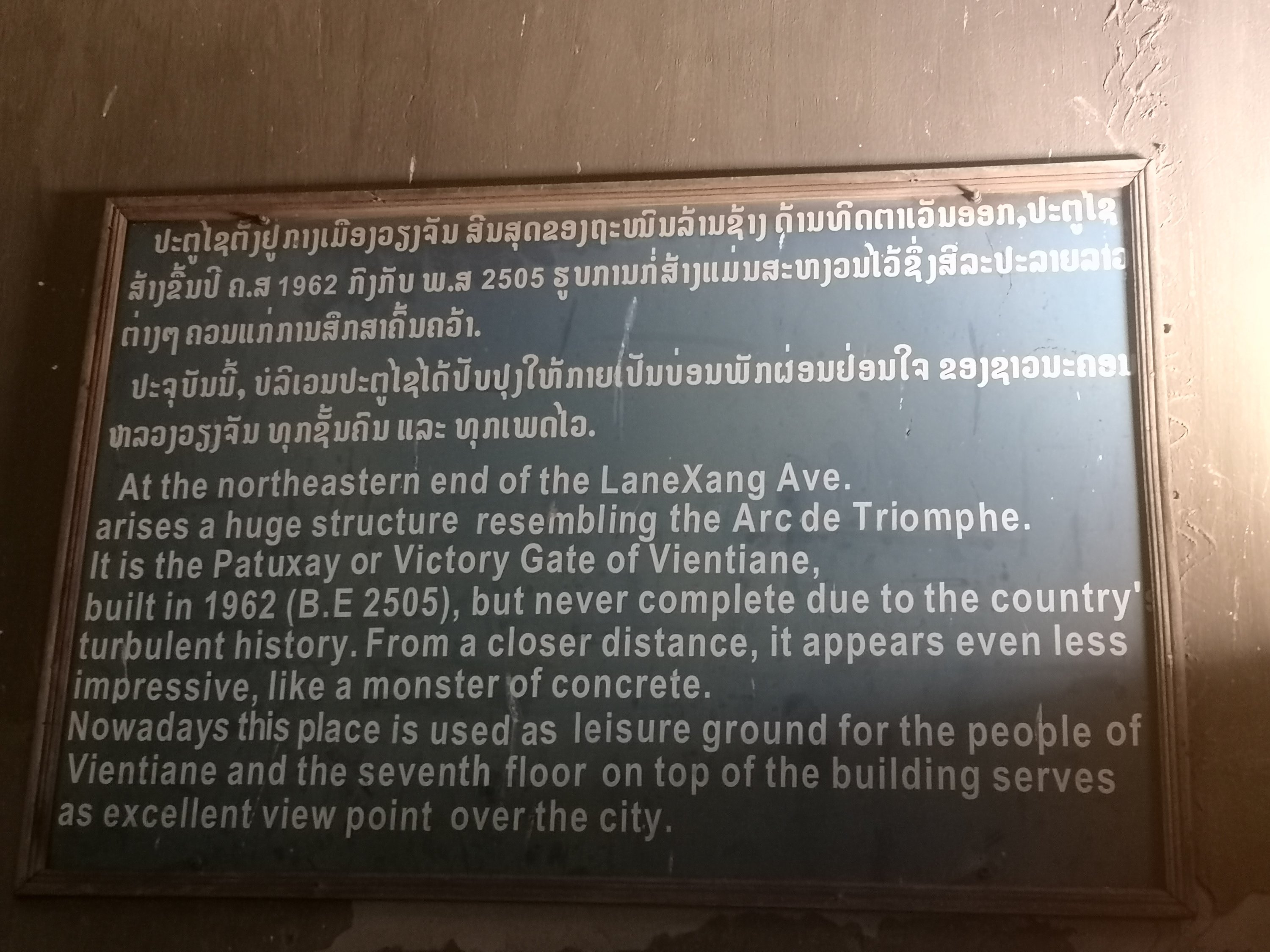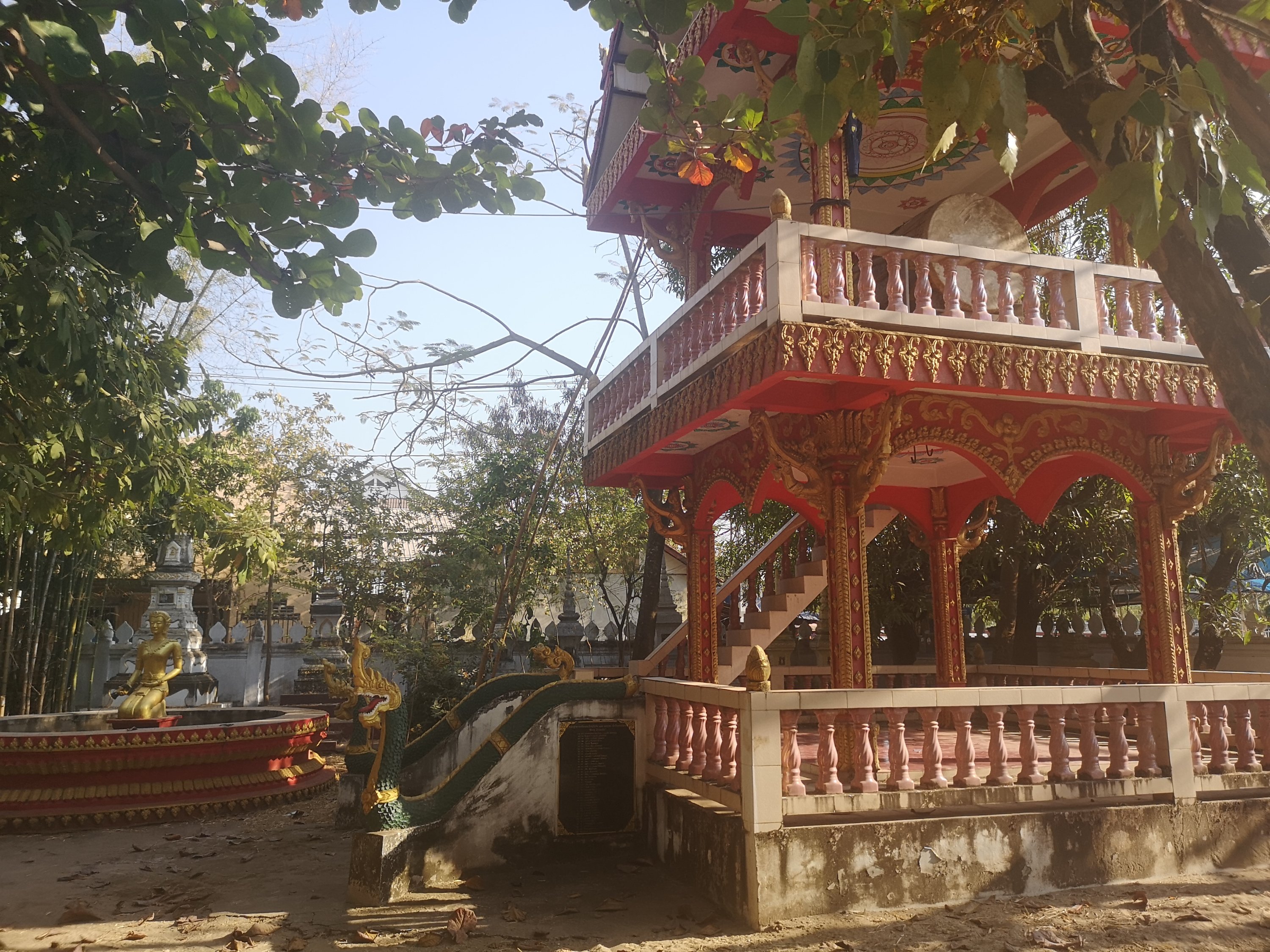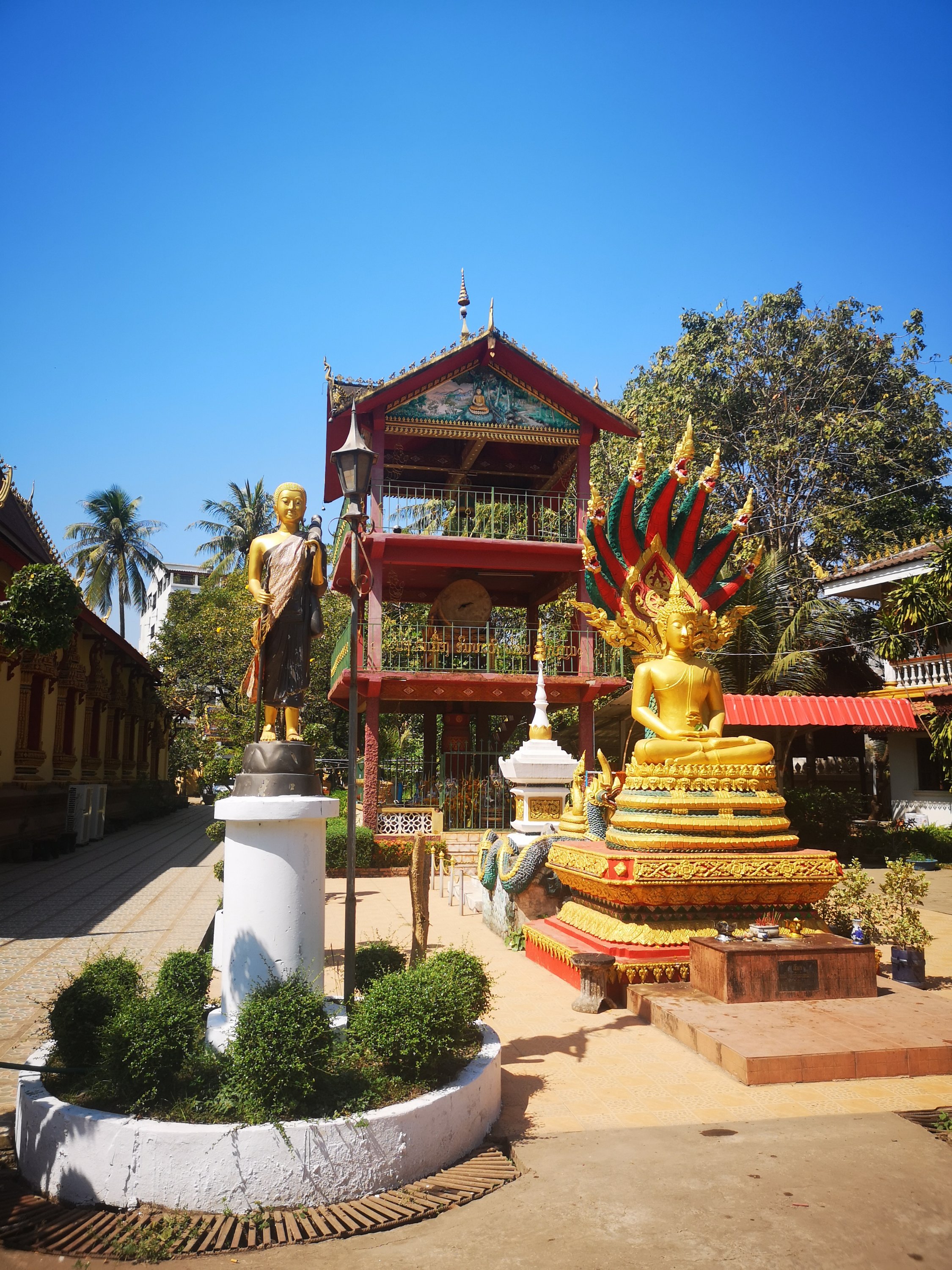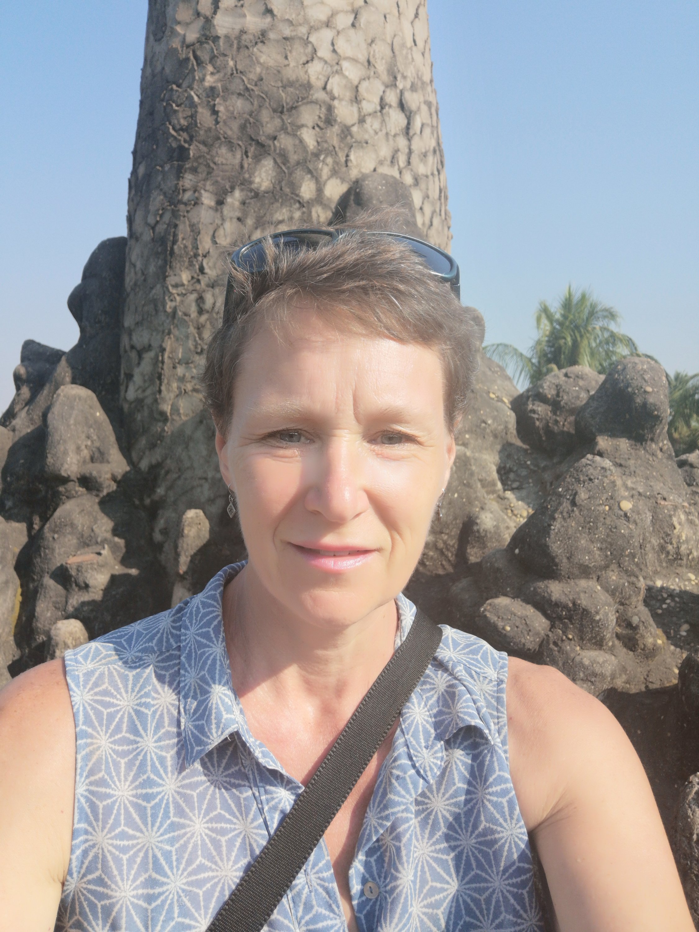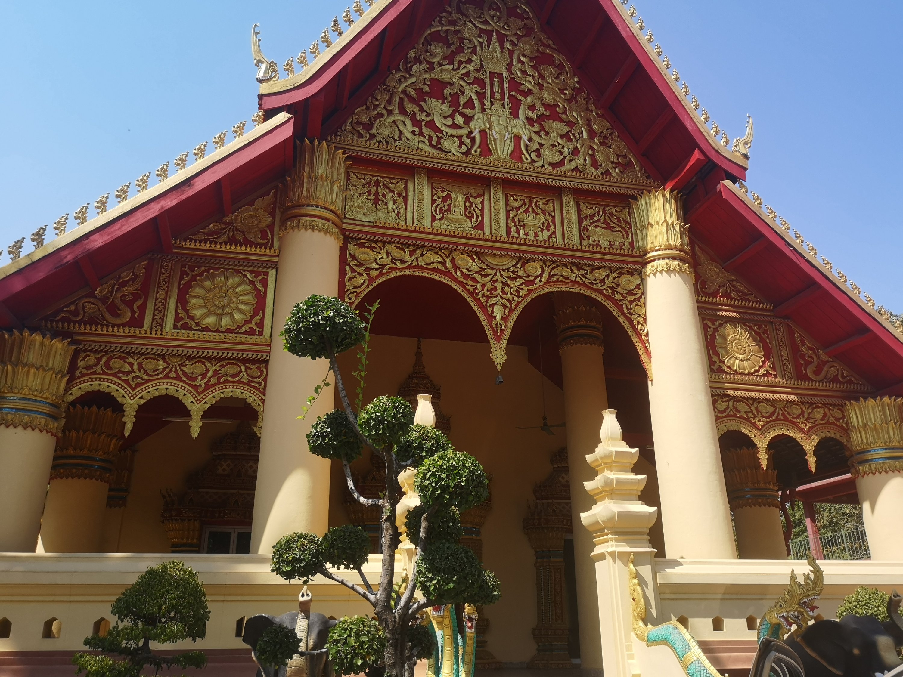 Buddha Park is also known as Xiang Khan, it means “Spirit City”. There are no traditional Buddha statues. Built by Luang Pu, who styled the park in Buddhist and Hindu mythology erected statues built by amateurs to showcase that mythology. The statues are bizarre and cool at the same timeand each tells a story. As it was my last morning in Vientiane and we needed to check out of the hotel, we did not spend time to do the audio tour. During unrest during the revolution in Laos in 1975, he fled the city into Thailand (Nong Khai) which is less than 1 kn away and built a similar park there. You can see the Laos park from the highest structure in the park in Thailand.