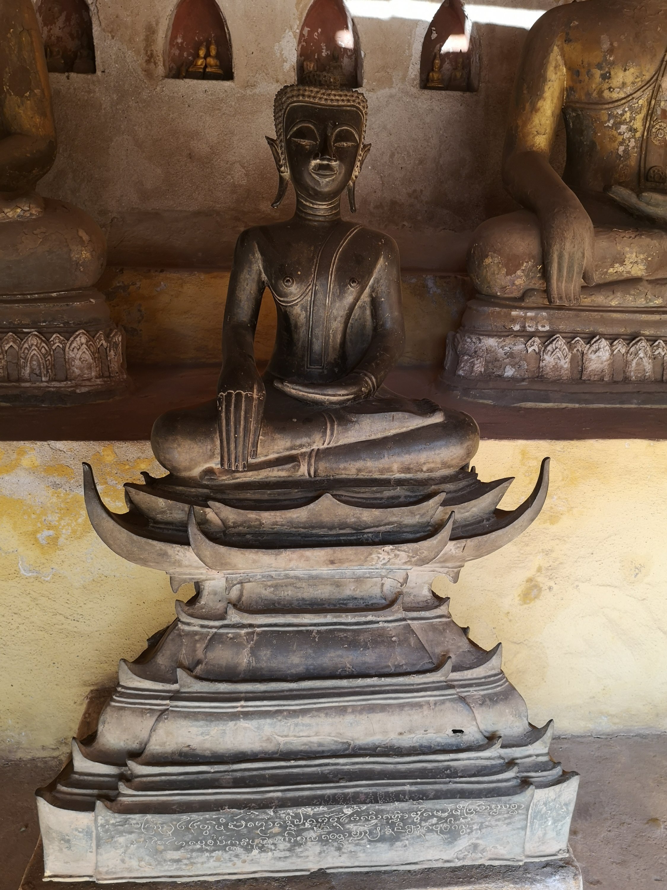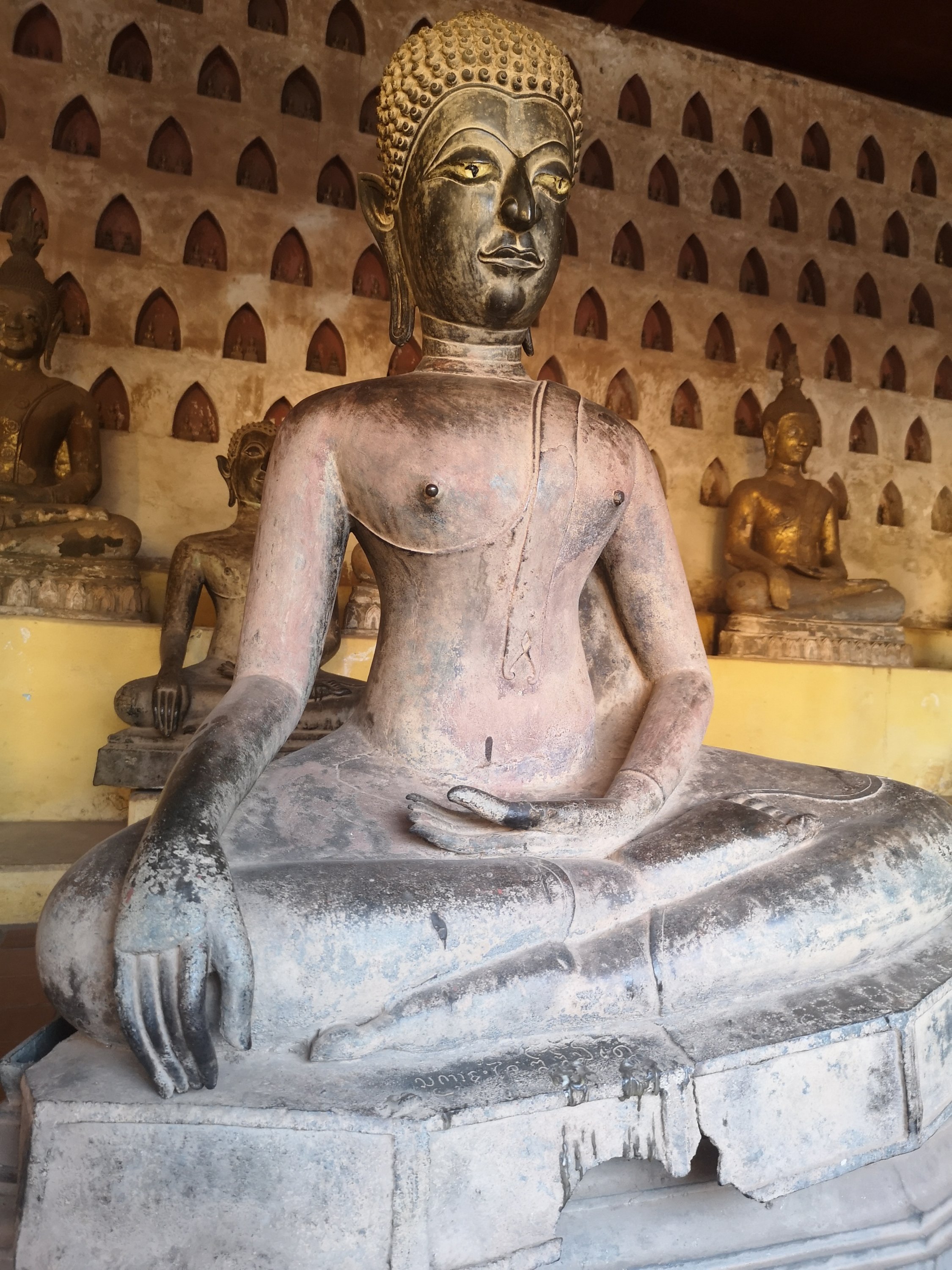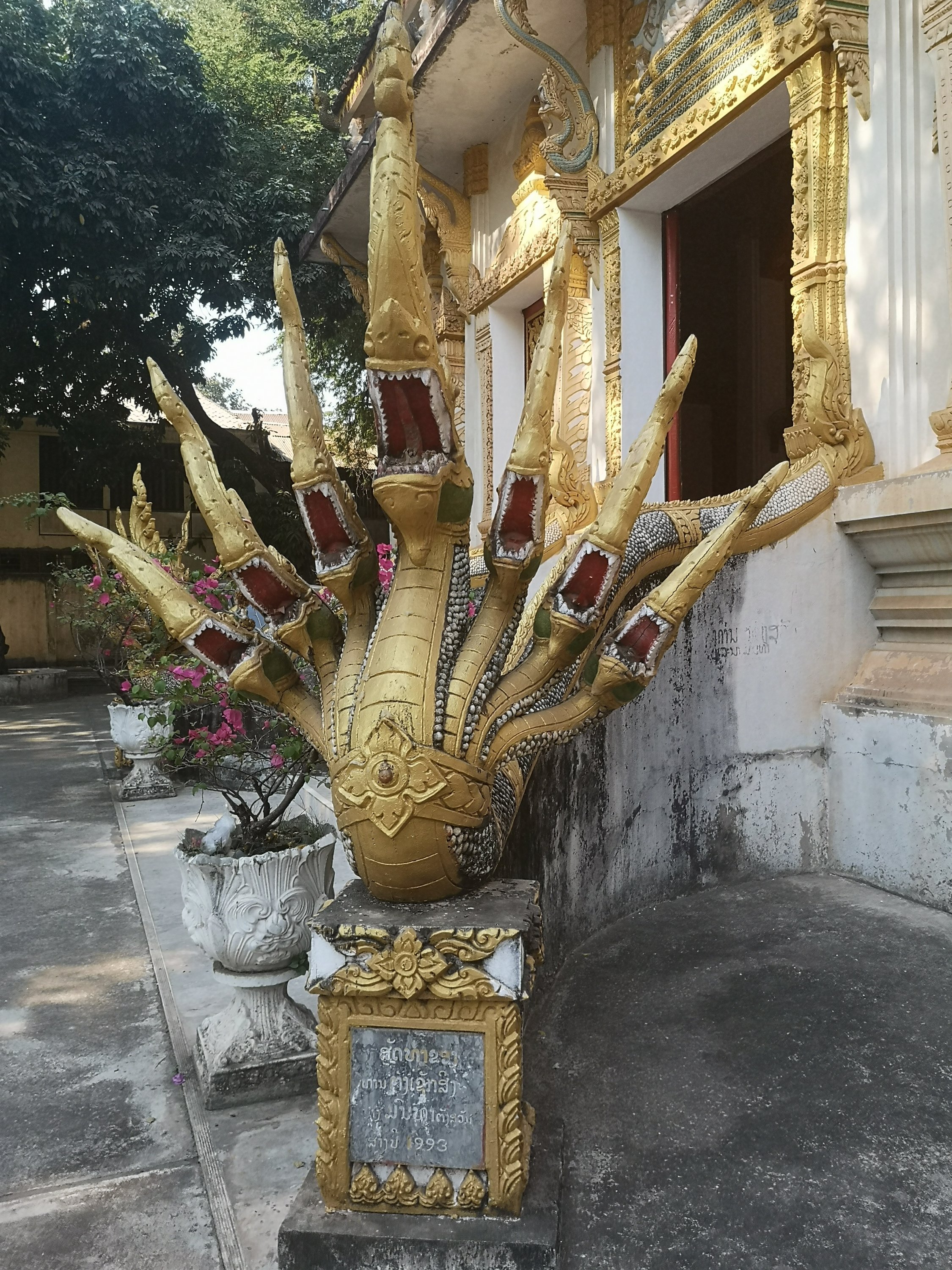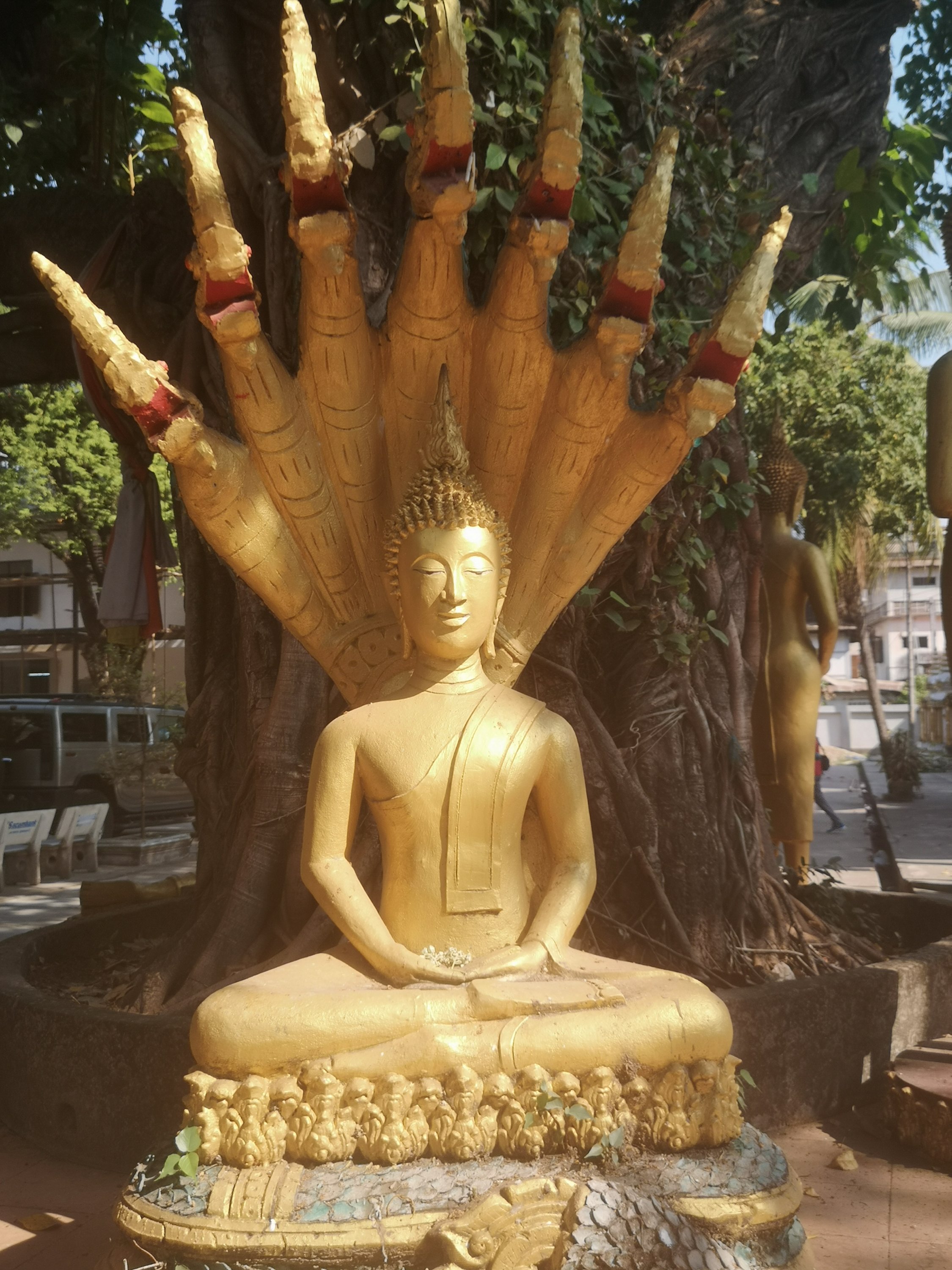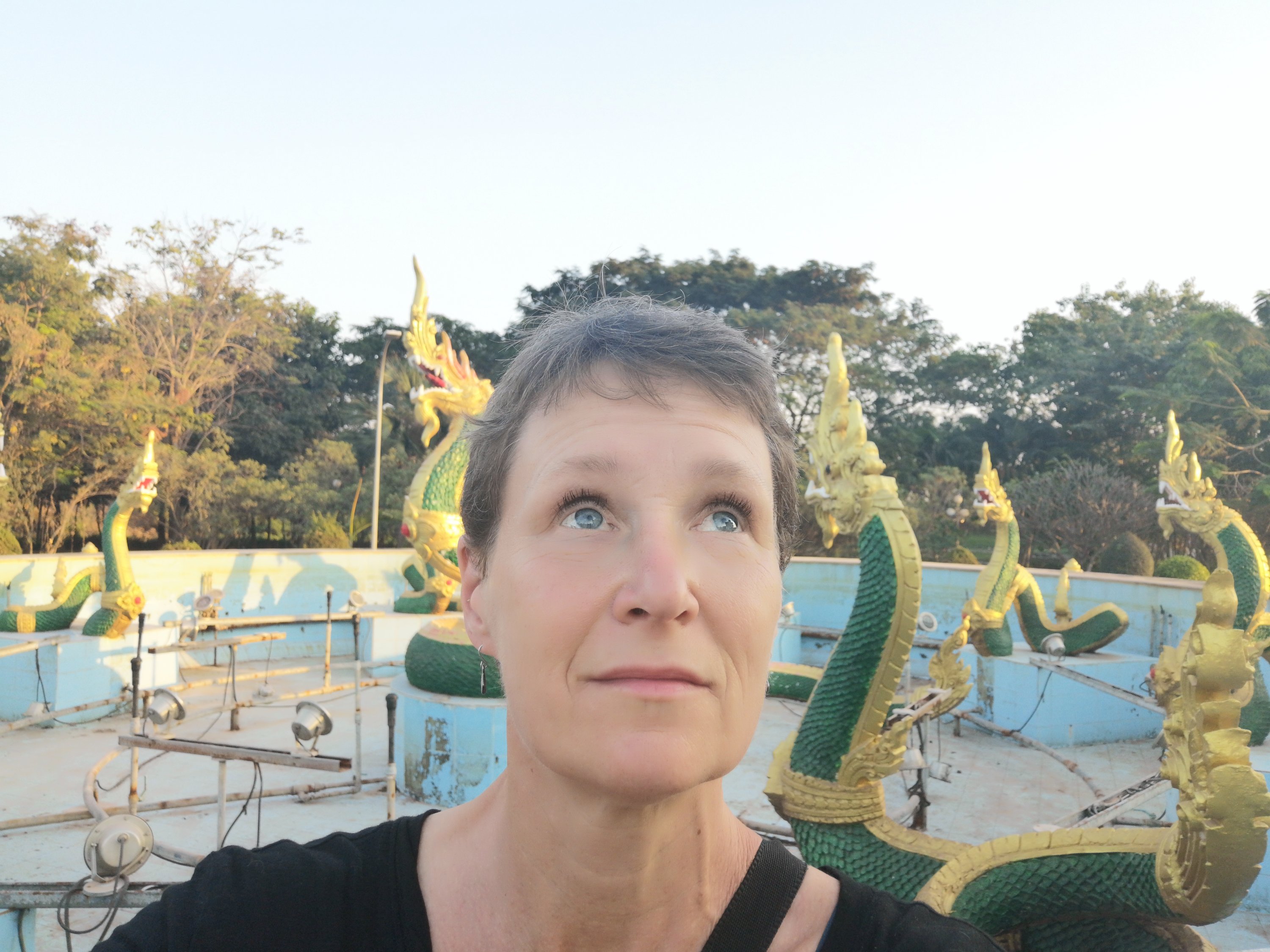 Buddha Park is also known as Xiang Khan, it means “Spirit City”. There are no traditional Buddha statues. Built by Luang Pu, who styled the park in Buddhist and Hindu mythology erected statues built by amateurs to showcase that mythology. The statues are bizarre and cool at the same timeand each tells a story. As it was my last morning in Vientiane and we needed to check out of the hotel, we did not spend time to do the audio tour. During unrest during the revolution in Laos in 1975, he fled the city into Thailand (Nong Khai) which is less than 1 kn away and built a similar park there. You can see the Laos park from the highest structure in the park in Thailand.