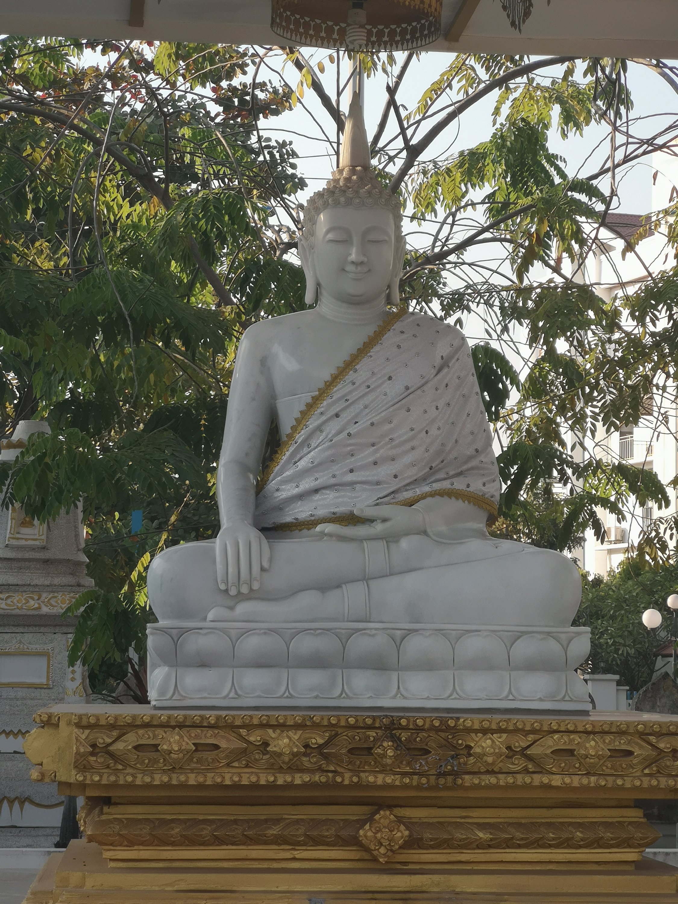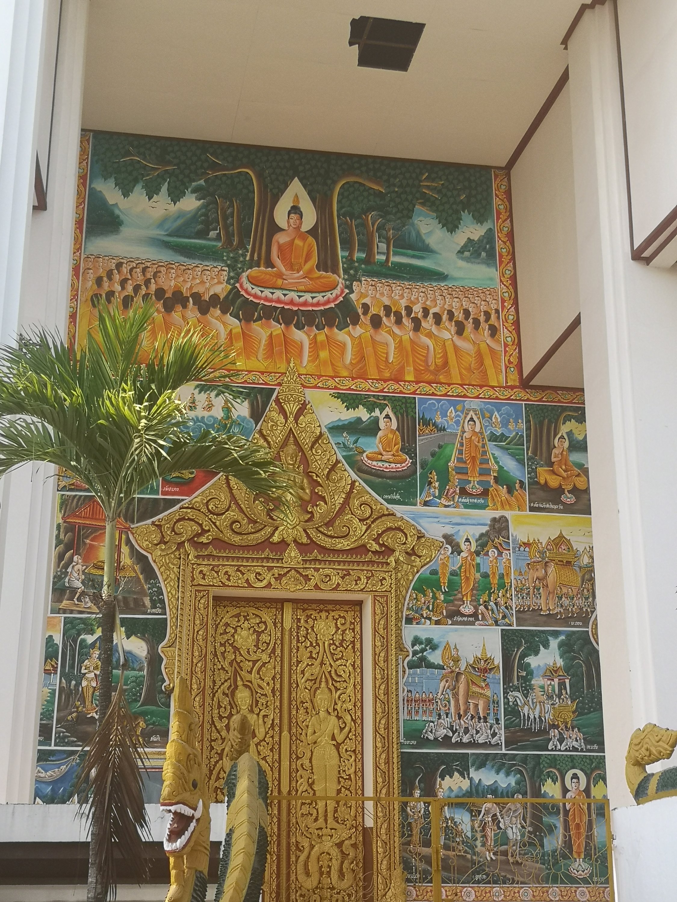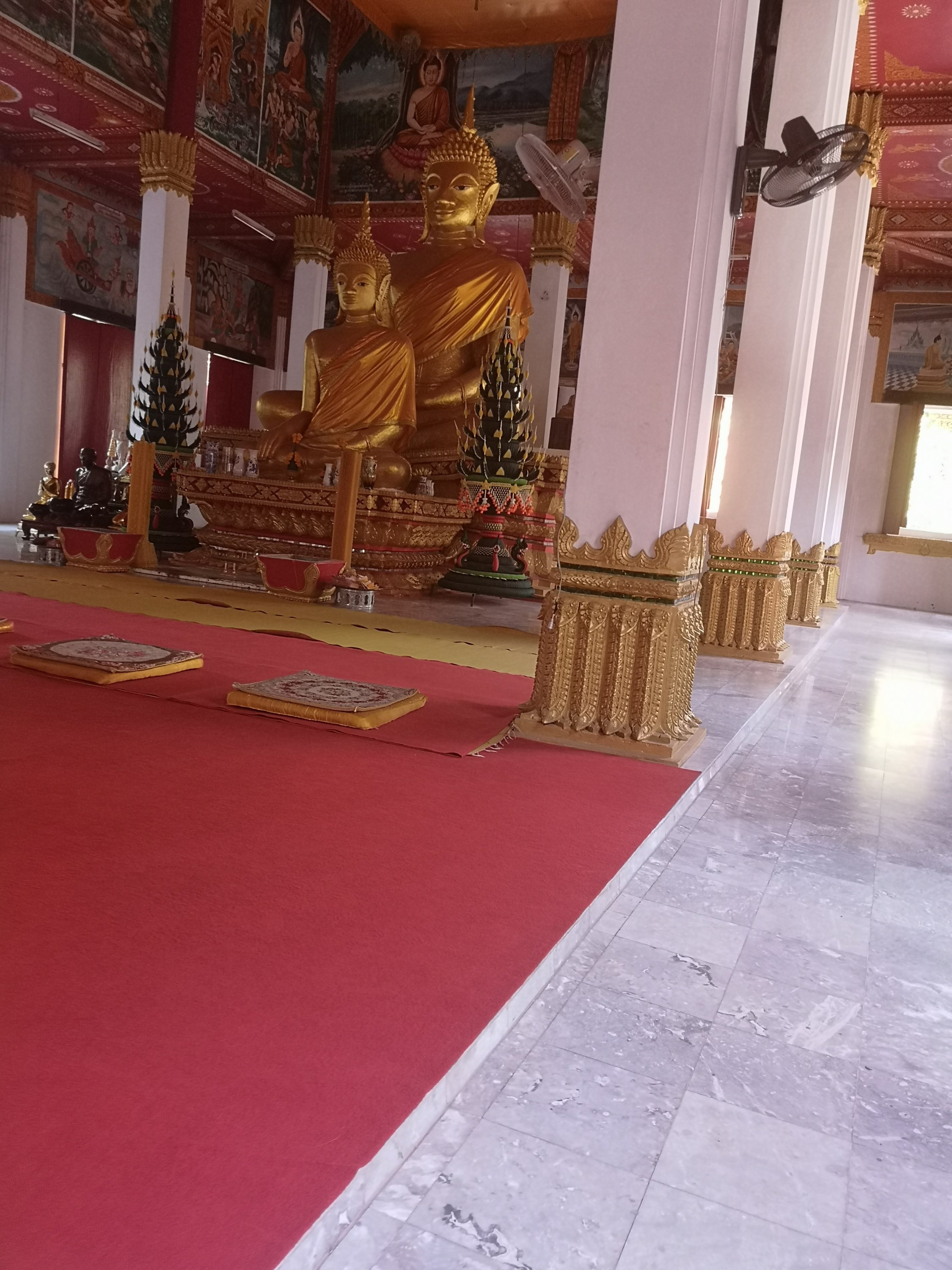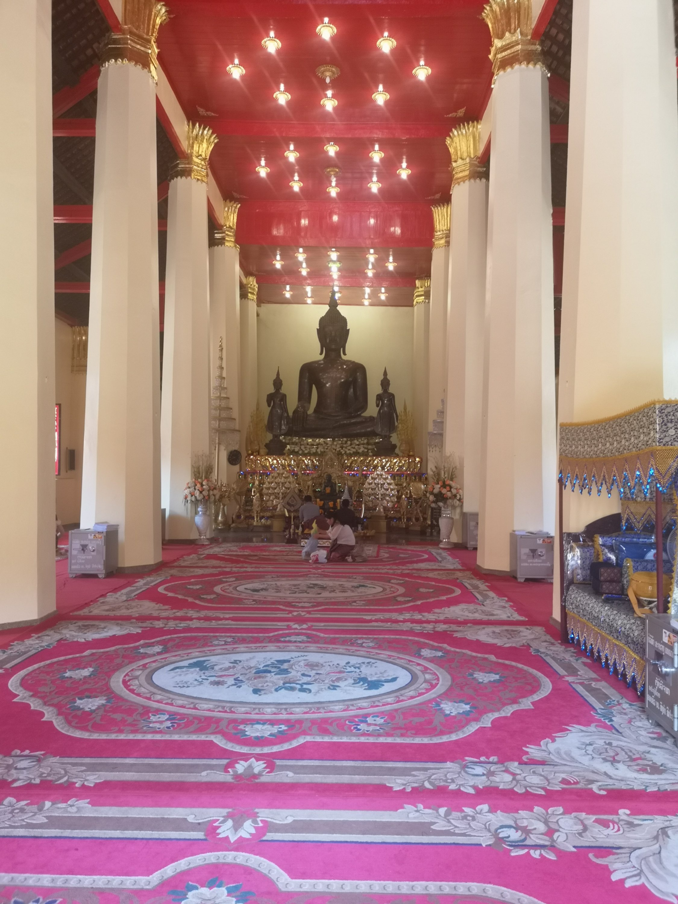 View of the 390 foot long giant reclining buddha from the top of the pumpkin.