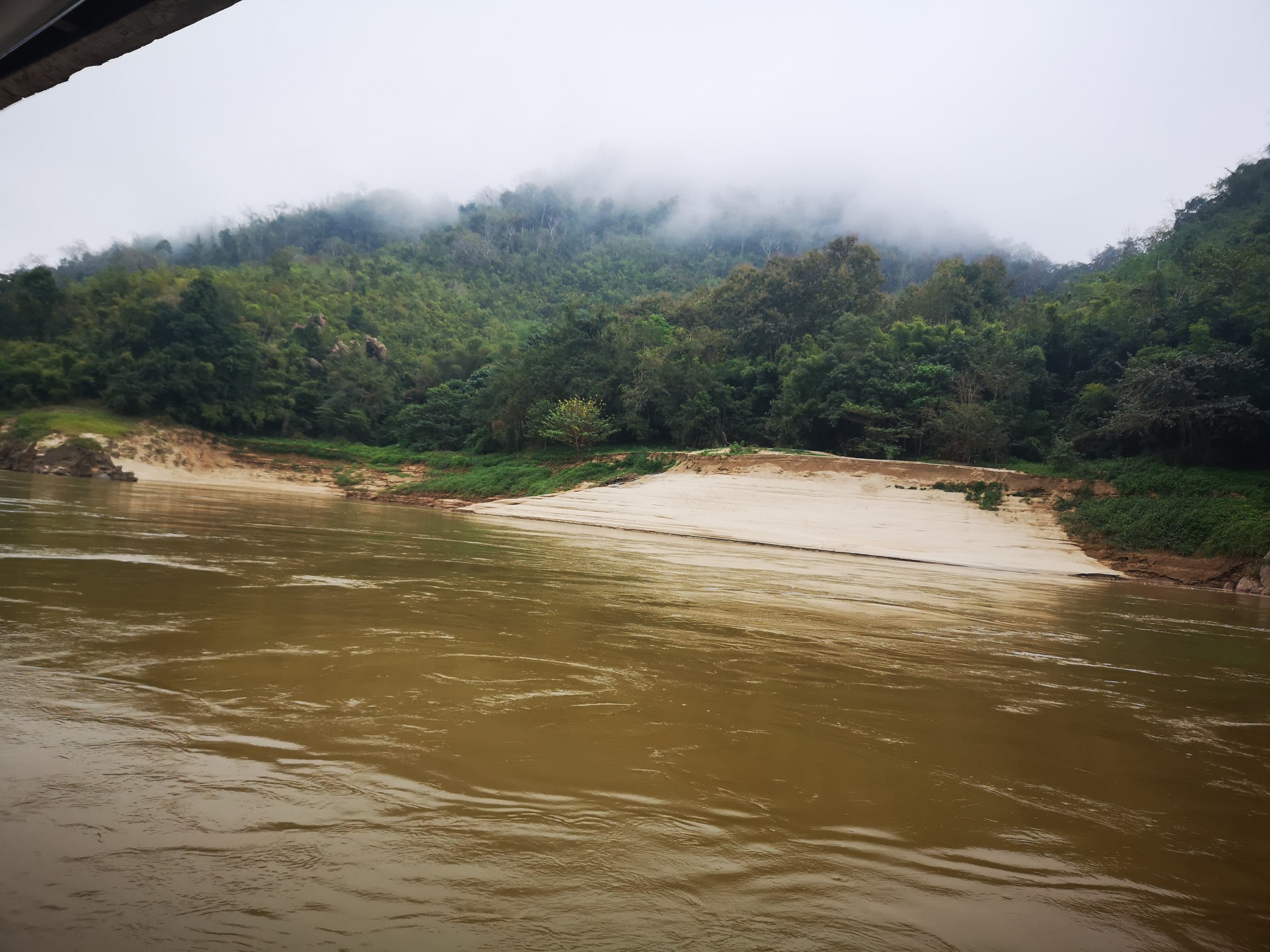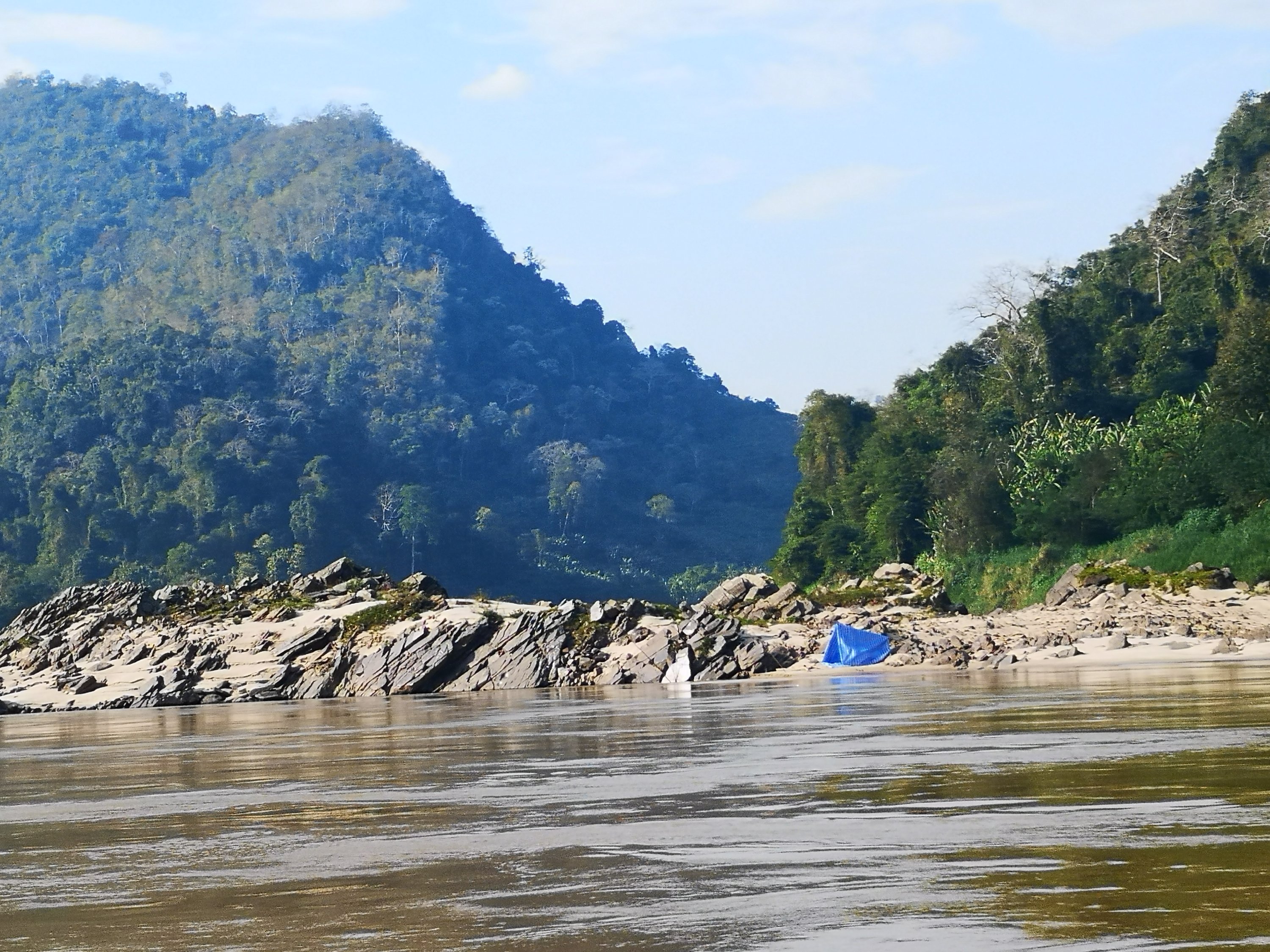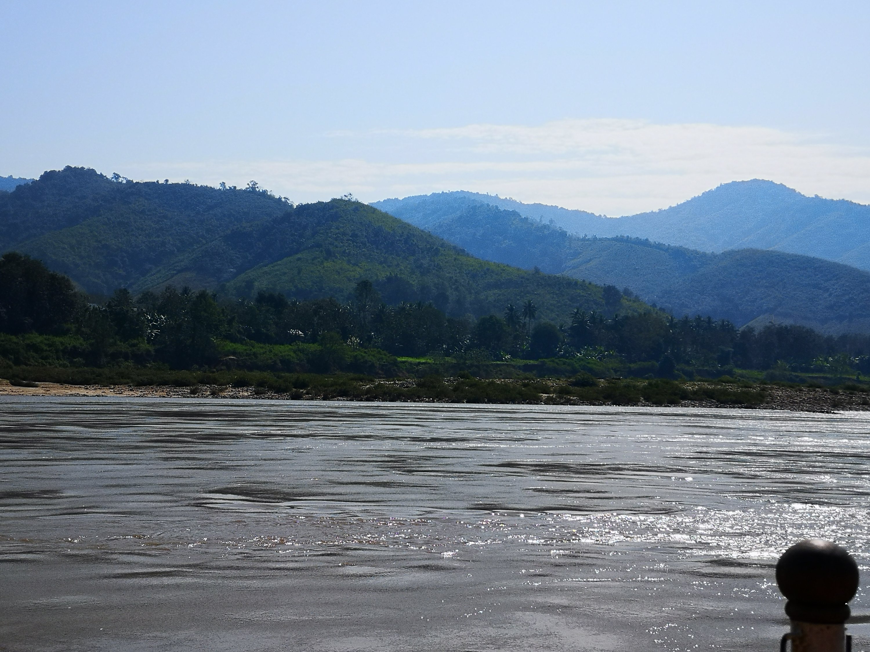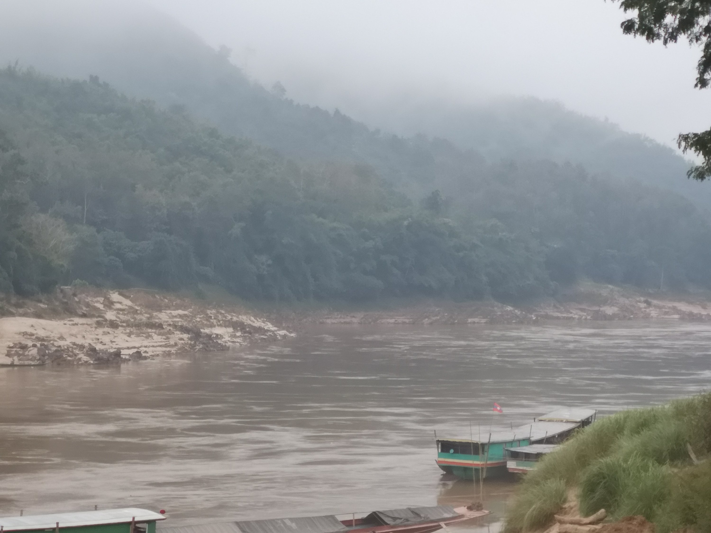 We assembled in the boat and we were off downstream again towards Luang Prabang. As we started out several hours earlier than yesterday, it s much colder. Some hot coffee and blankets helped.