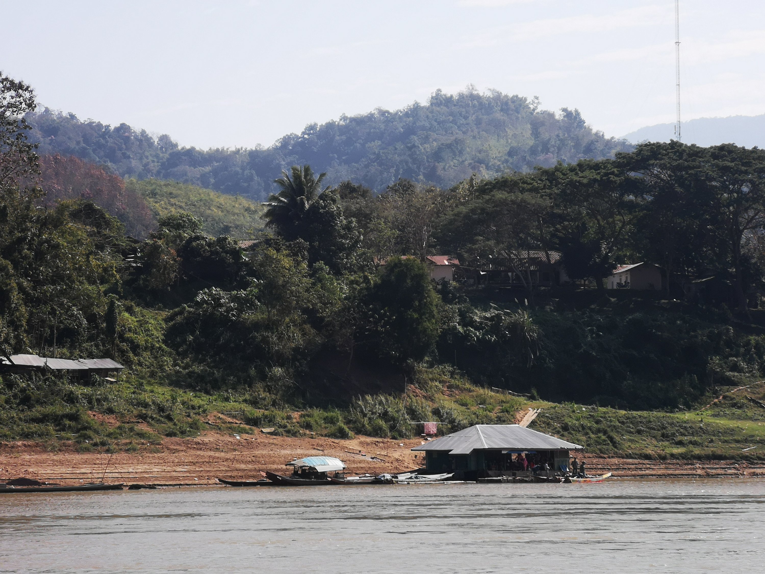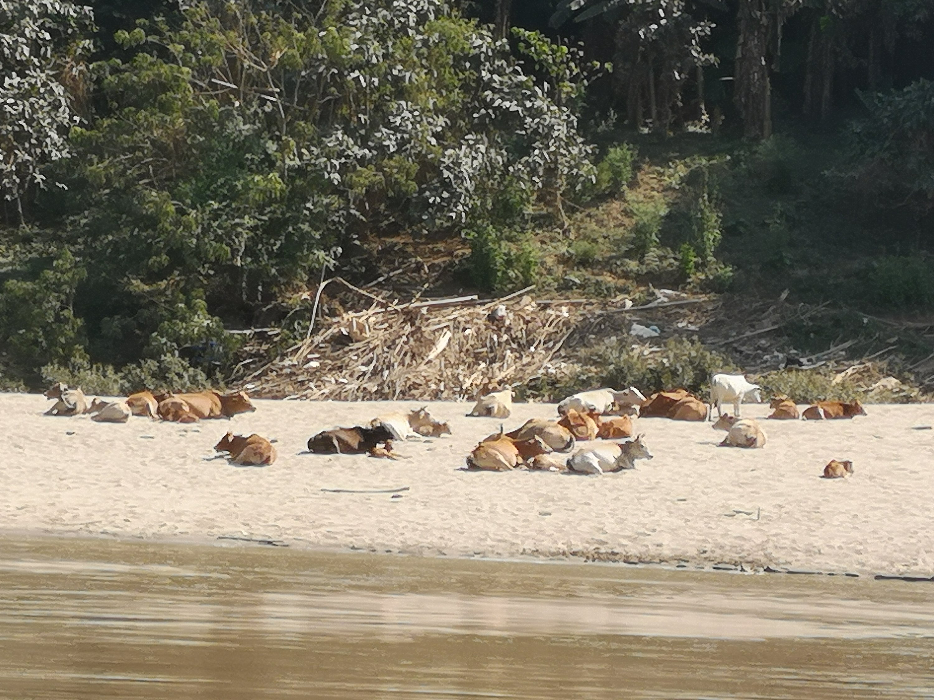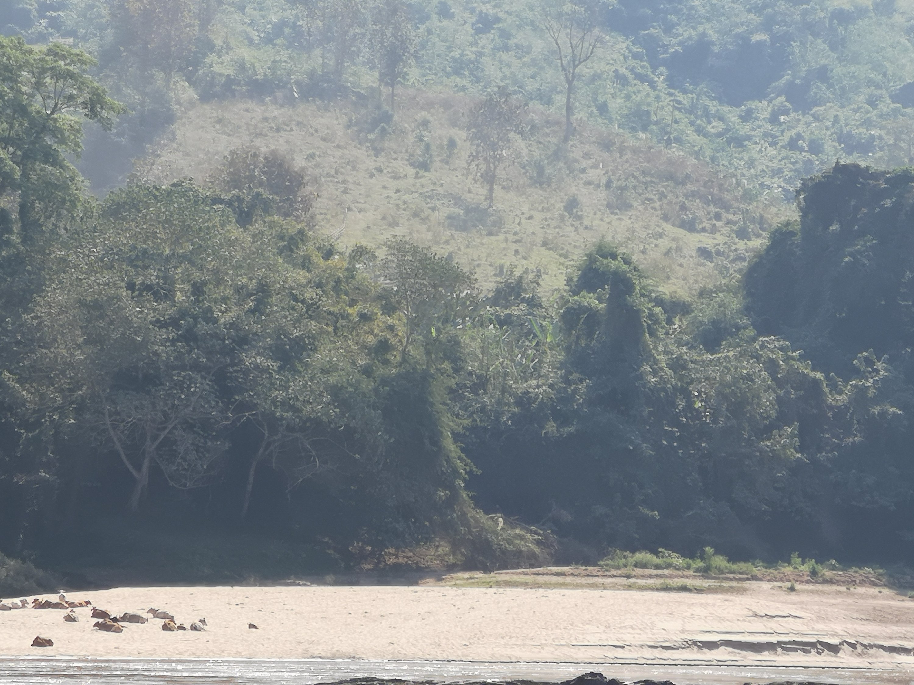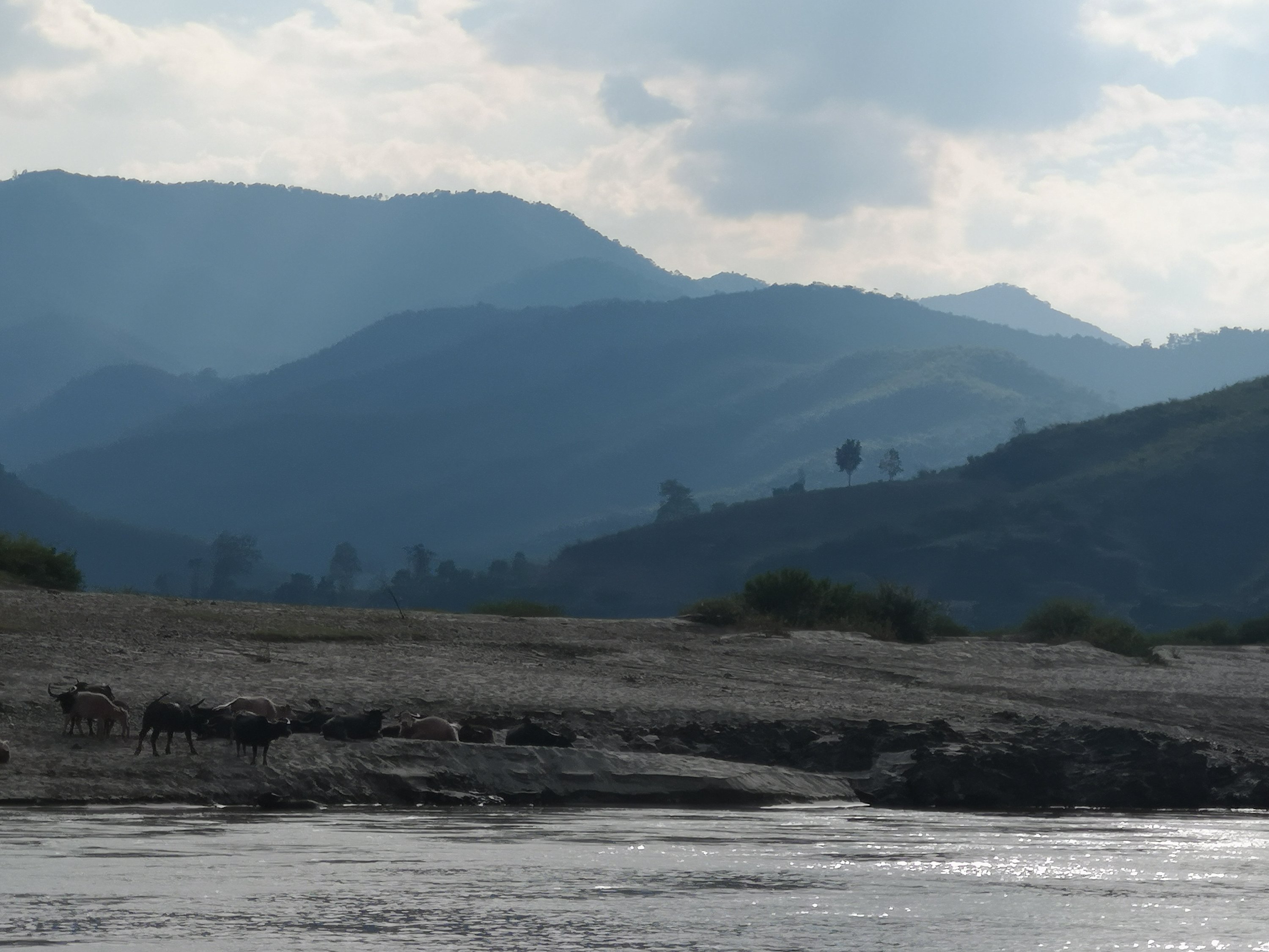 We assembled in the boat and we were off downstream again towards Luang Prabang. As we started out several hours earlier than yesterday, it s much colder. Some hot coffee and blankets helped.