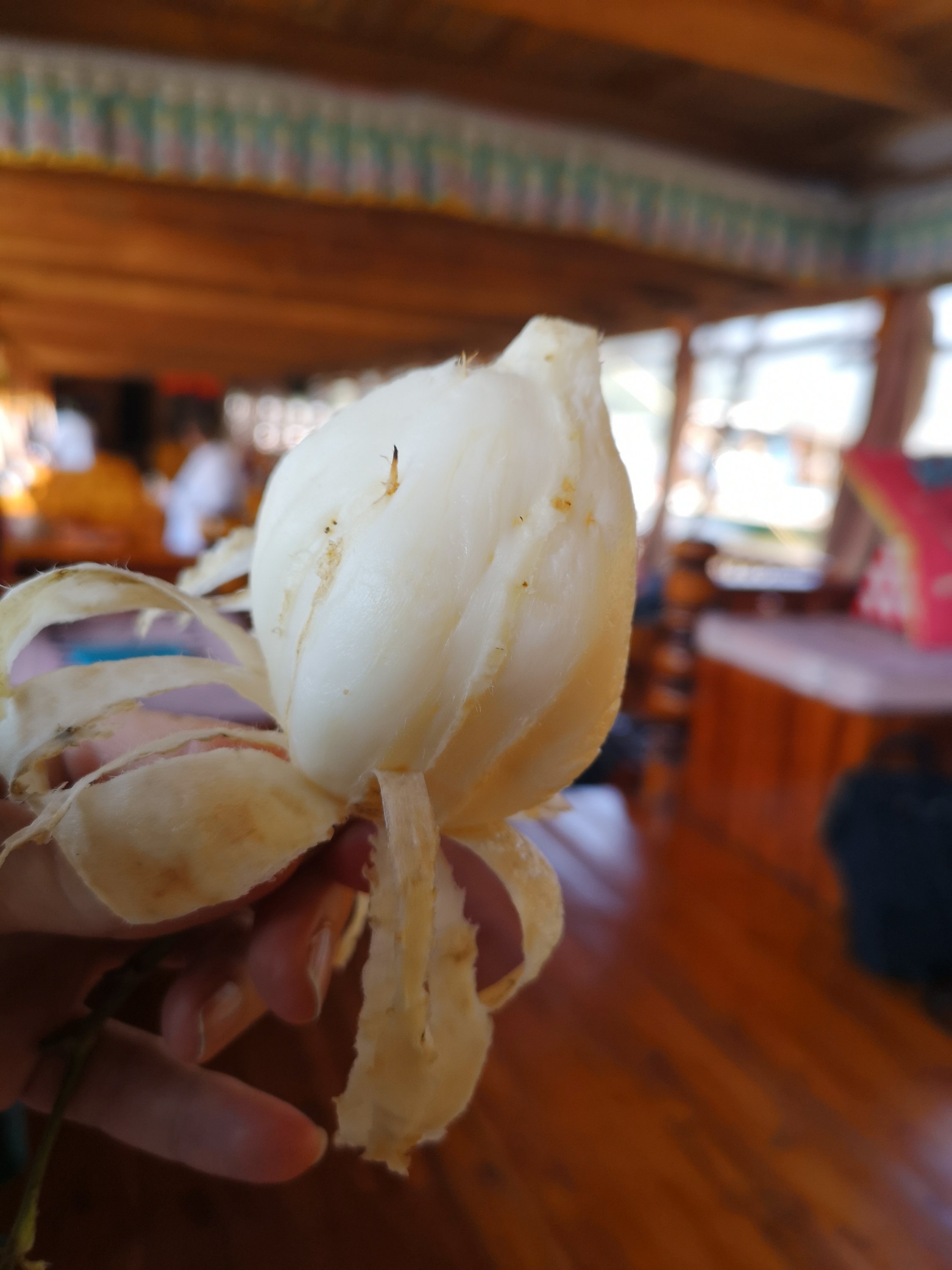 We stopped a few times to meet locals and they purchased a root like potato that is a bit sweeter. You peel like a flower. You were able to peel with your fingers unlike our potatoes. It was delicious. It had a texture like a water chestnut.