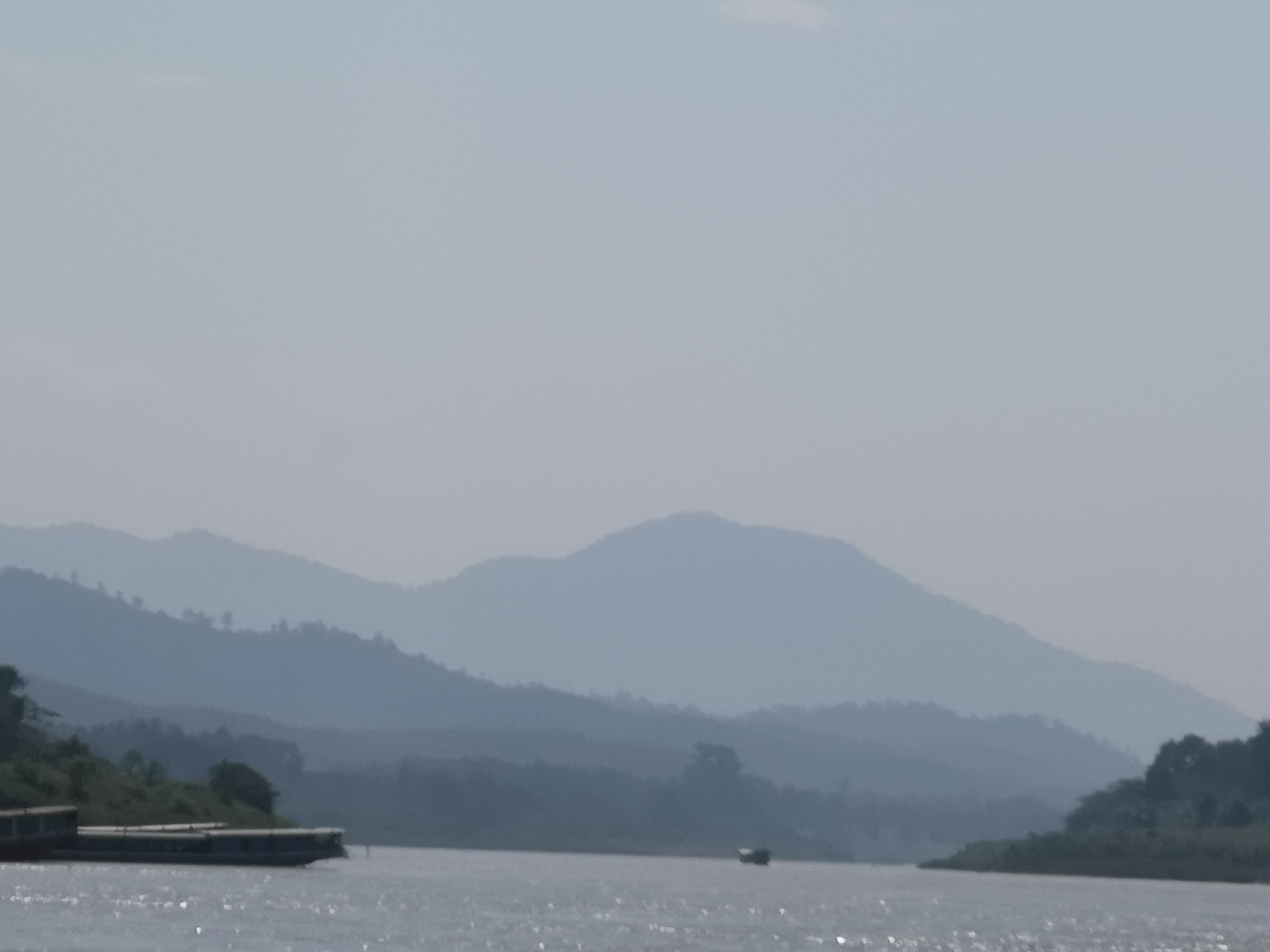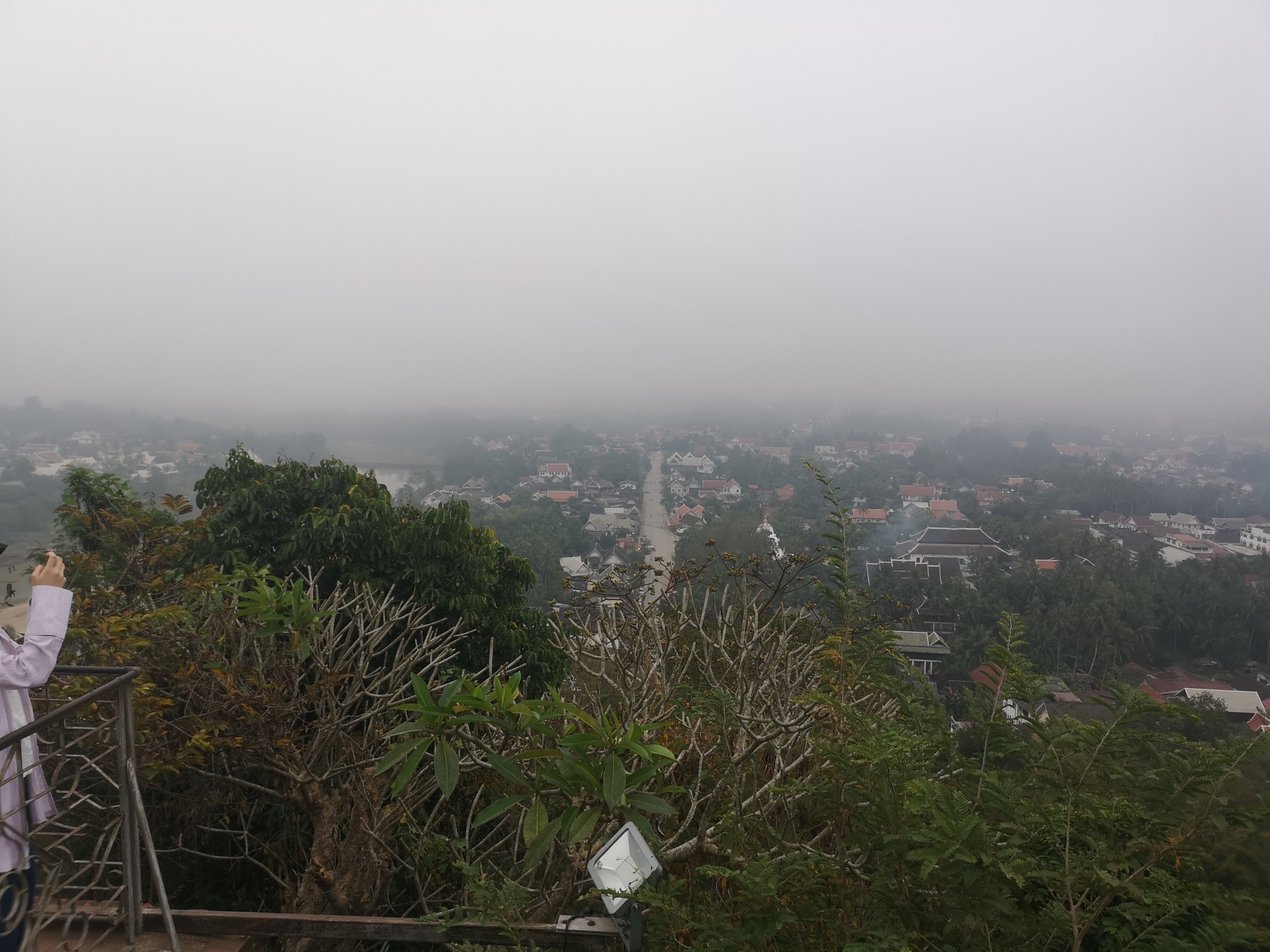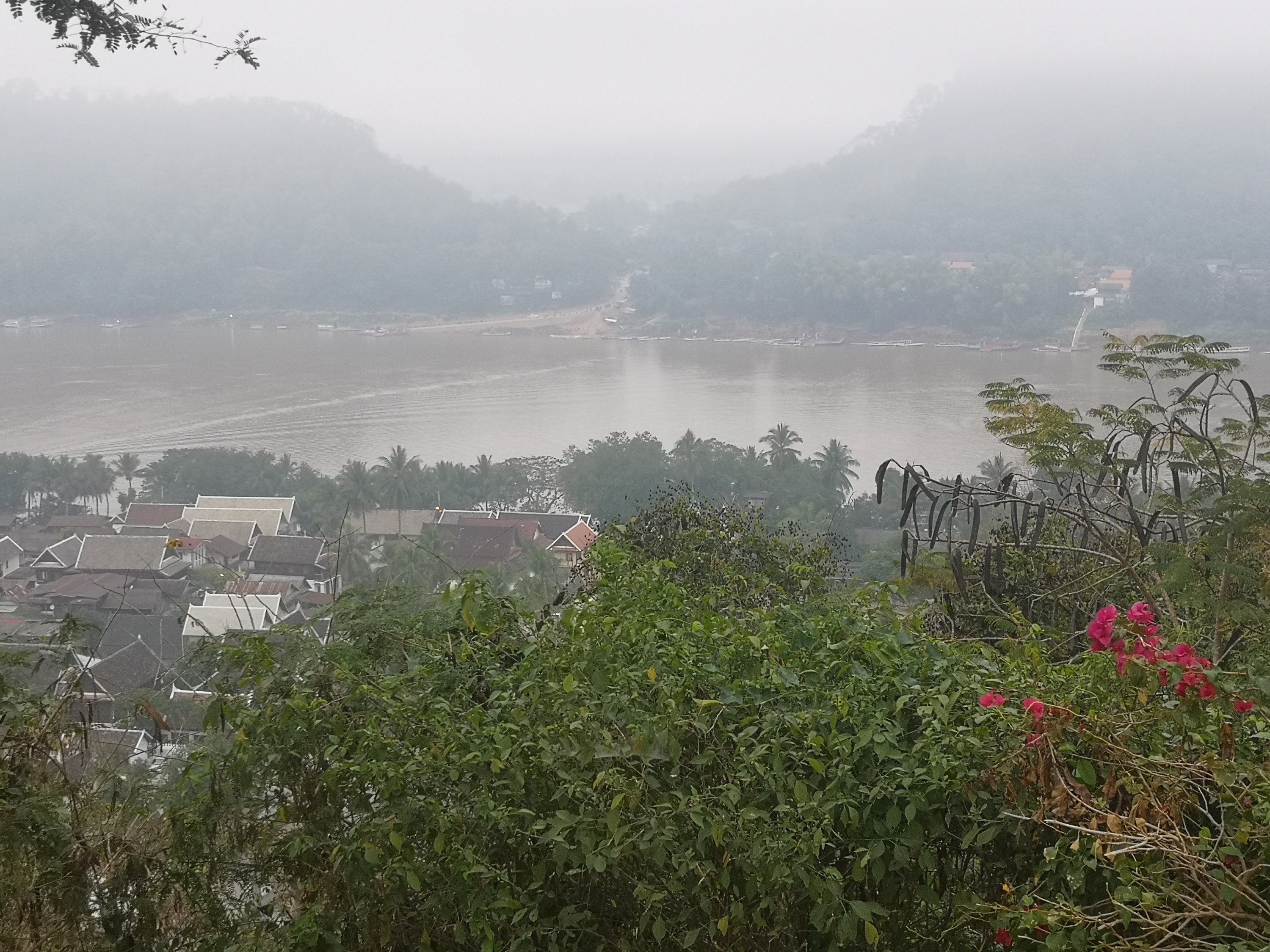 Once the sun should have rose, I snapped these pictures as it is going to take some time for the fog to lift. There is very little pollution here. Yesterday on the boat it took a several hours for it to lift.