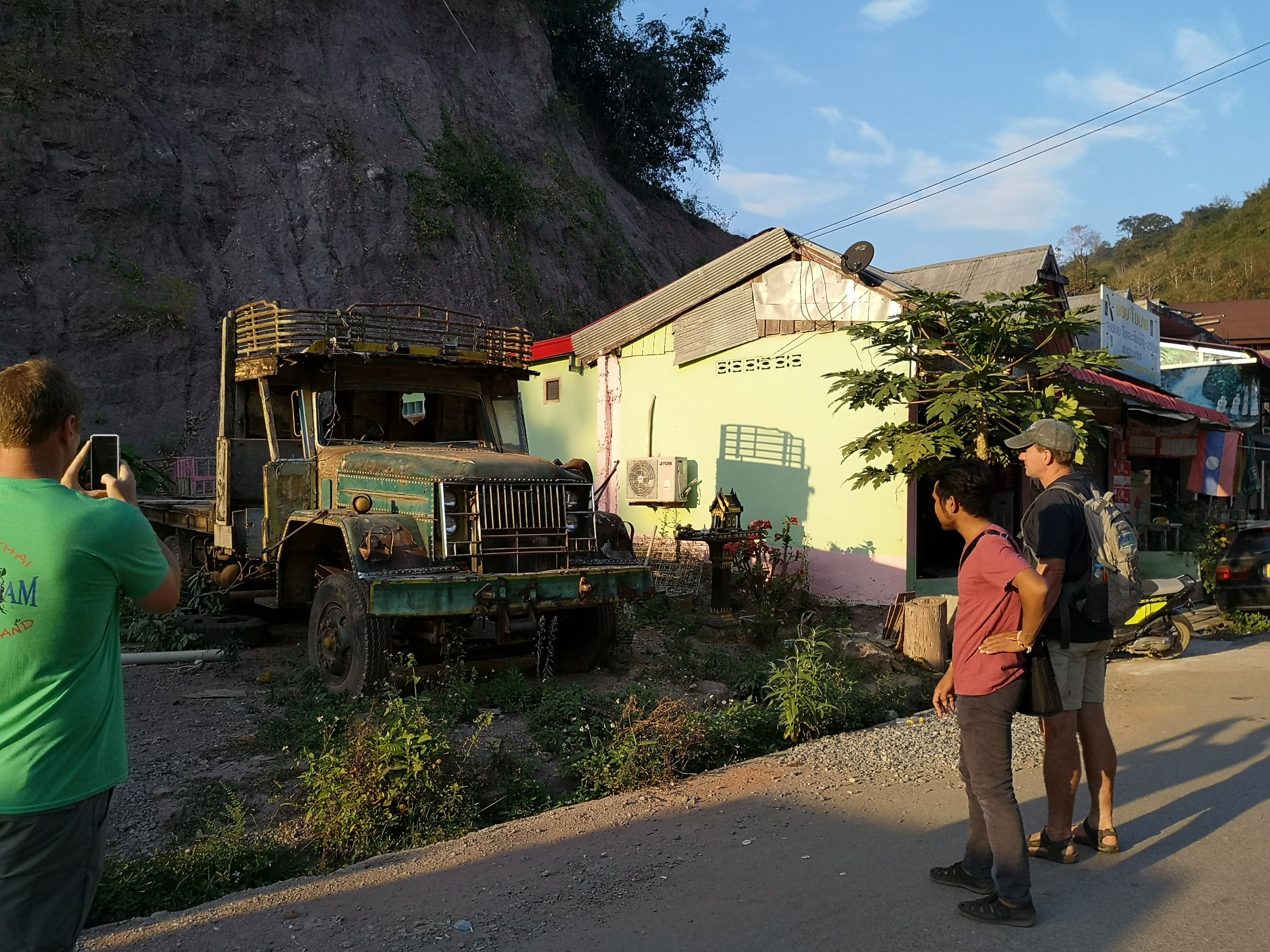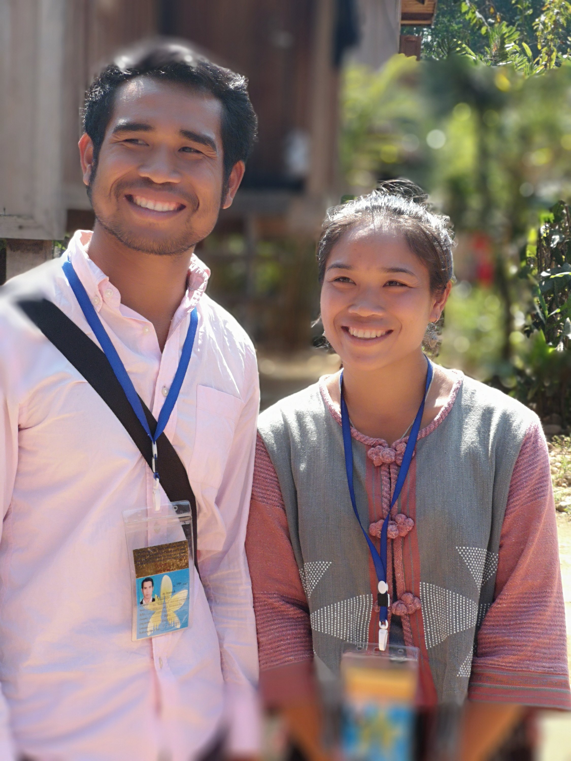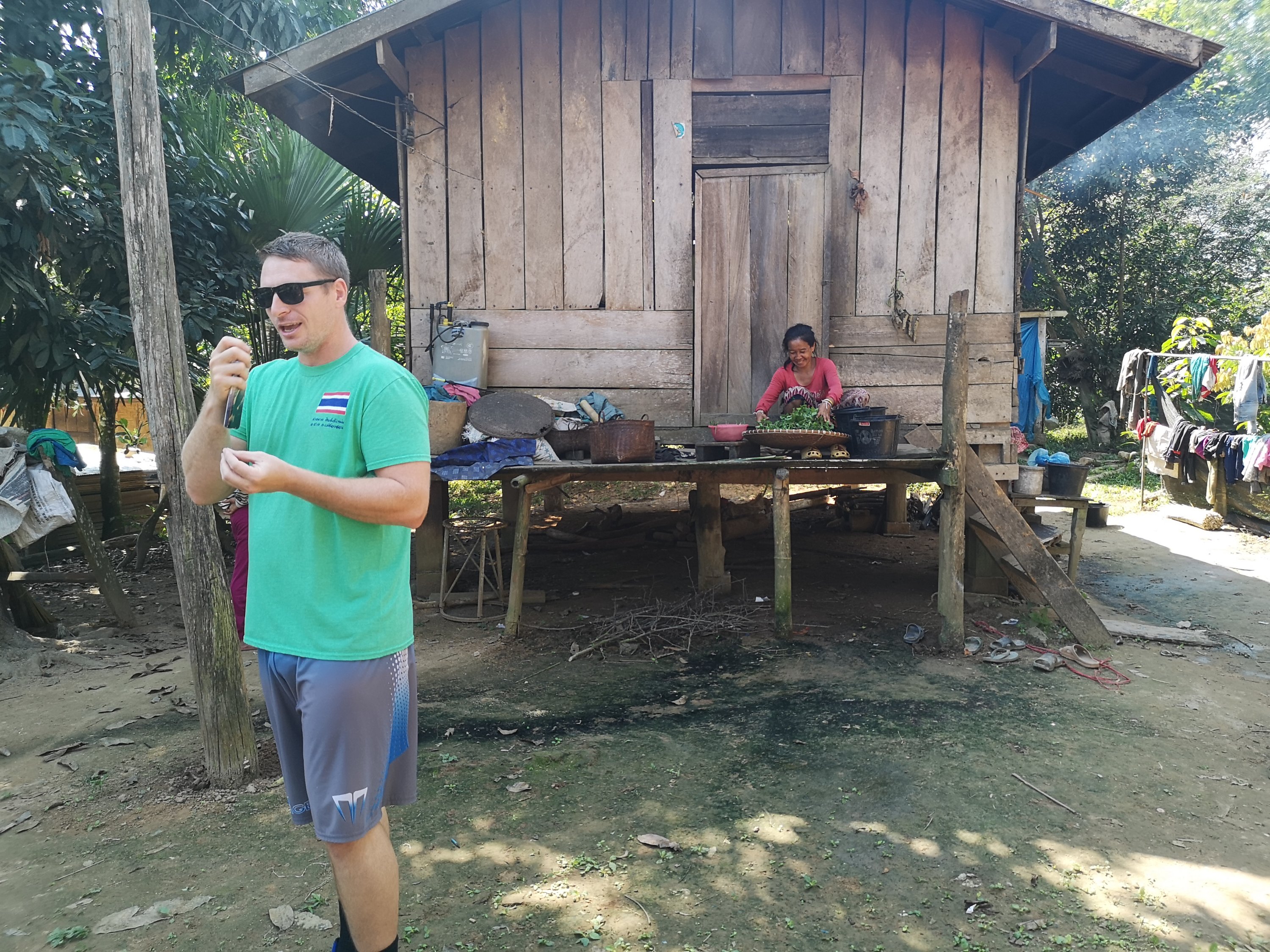 Xay is our guide on the left. His sister is also a guide. He tour is going to the river and we are going down. Was nice to see them together. He has 11 in his family and is from a village much like this one.