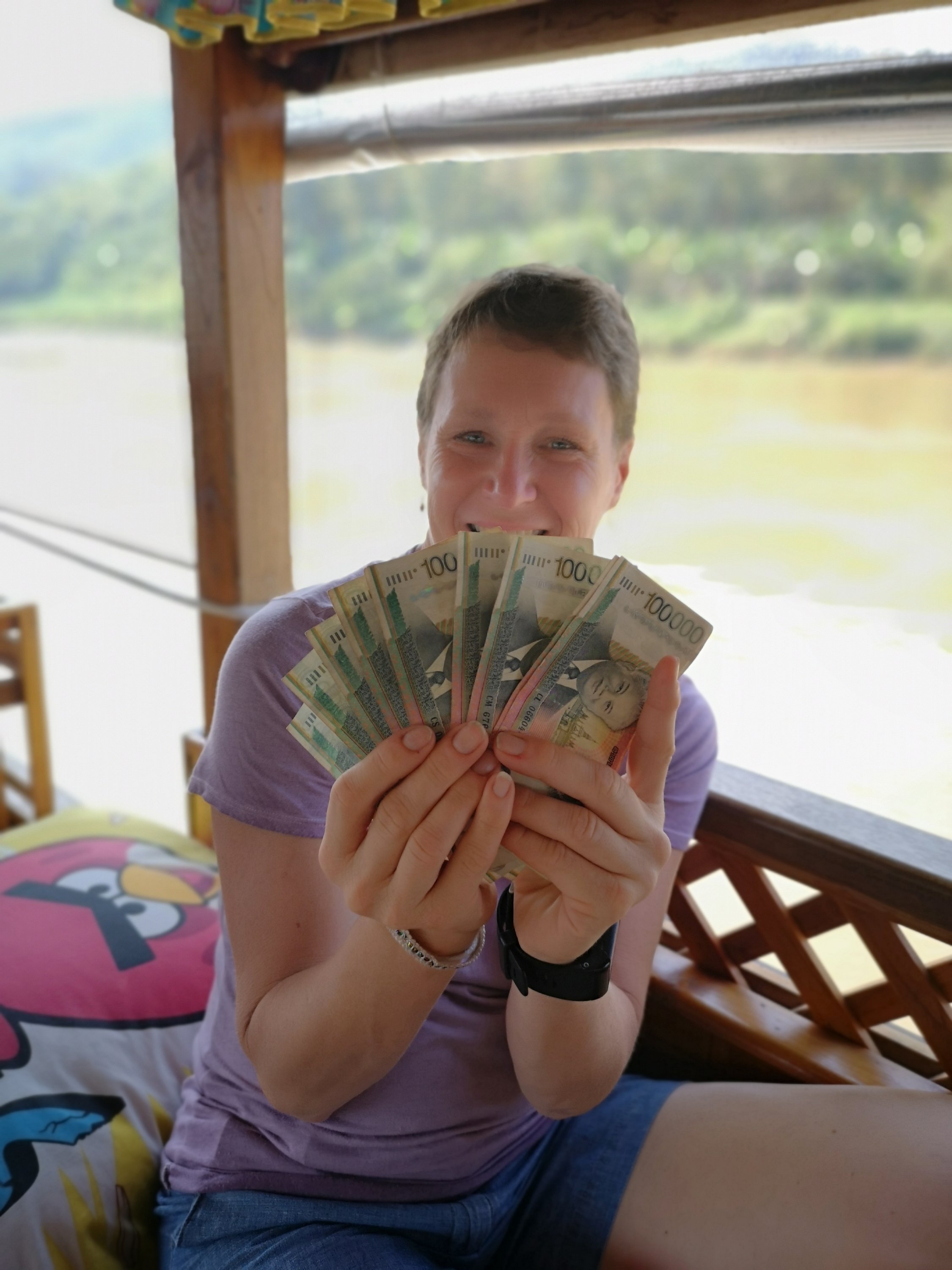 I also took Laos kip currency out. Like Vietnam, I am a millionnaire. Okay, that was only about 117US.