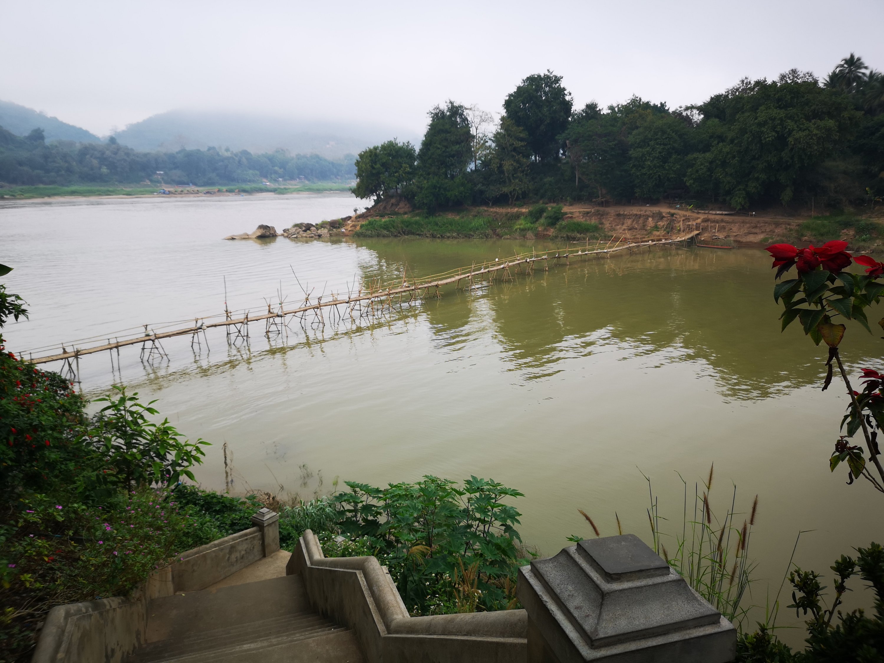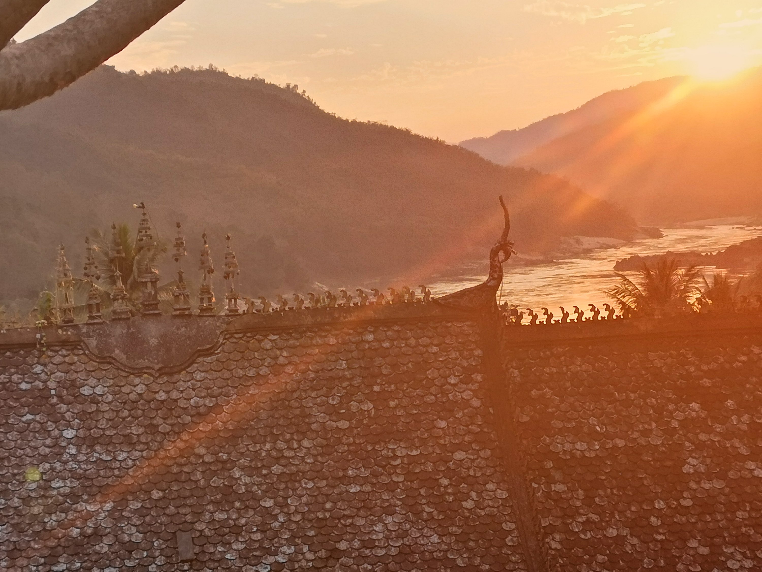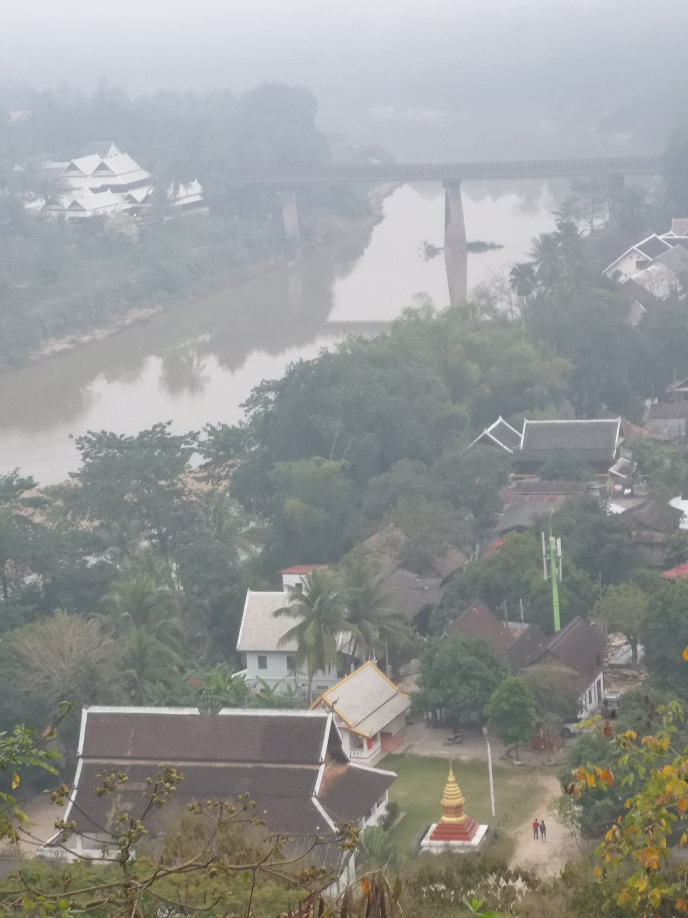 A temple below. This is also the Mekong River.