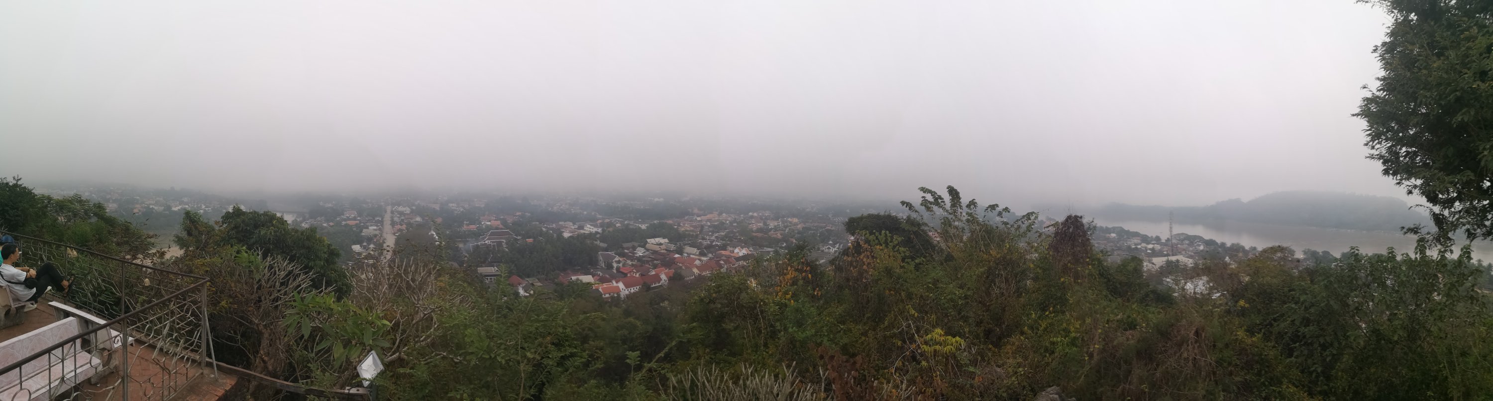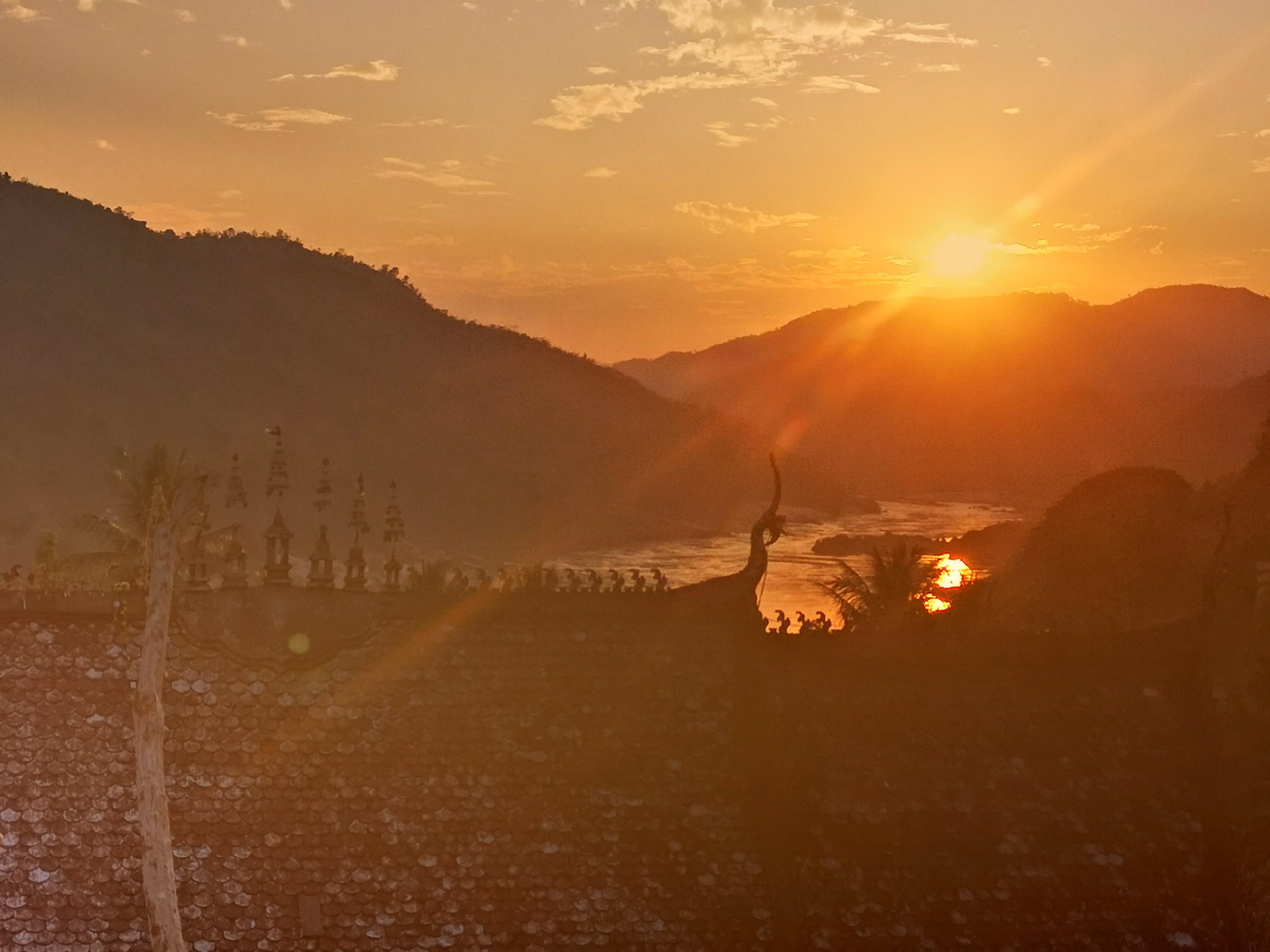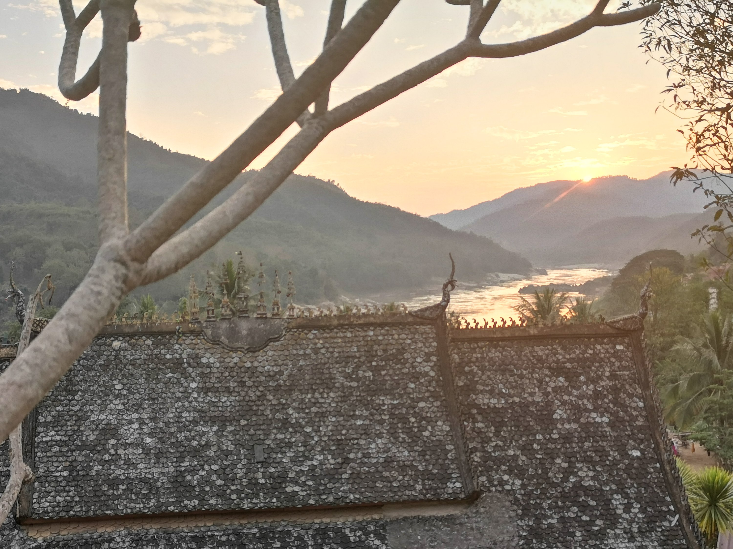 A temple below. This is also the Mekong River.