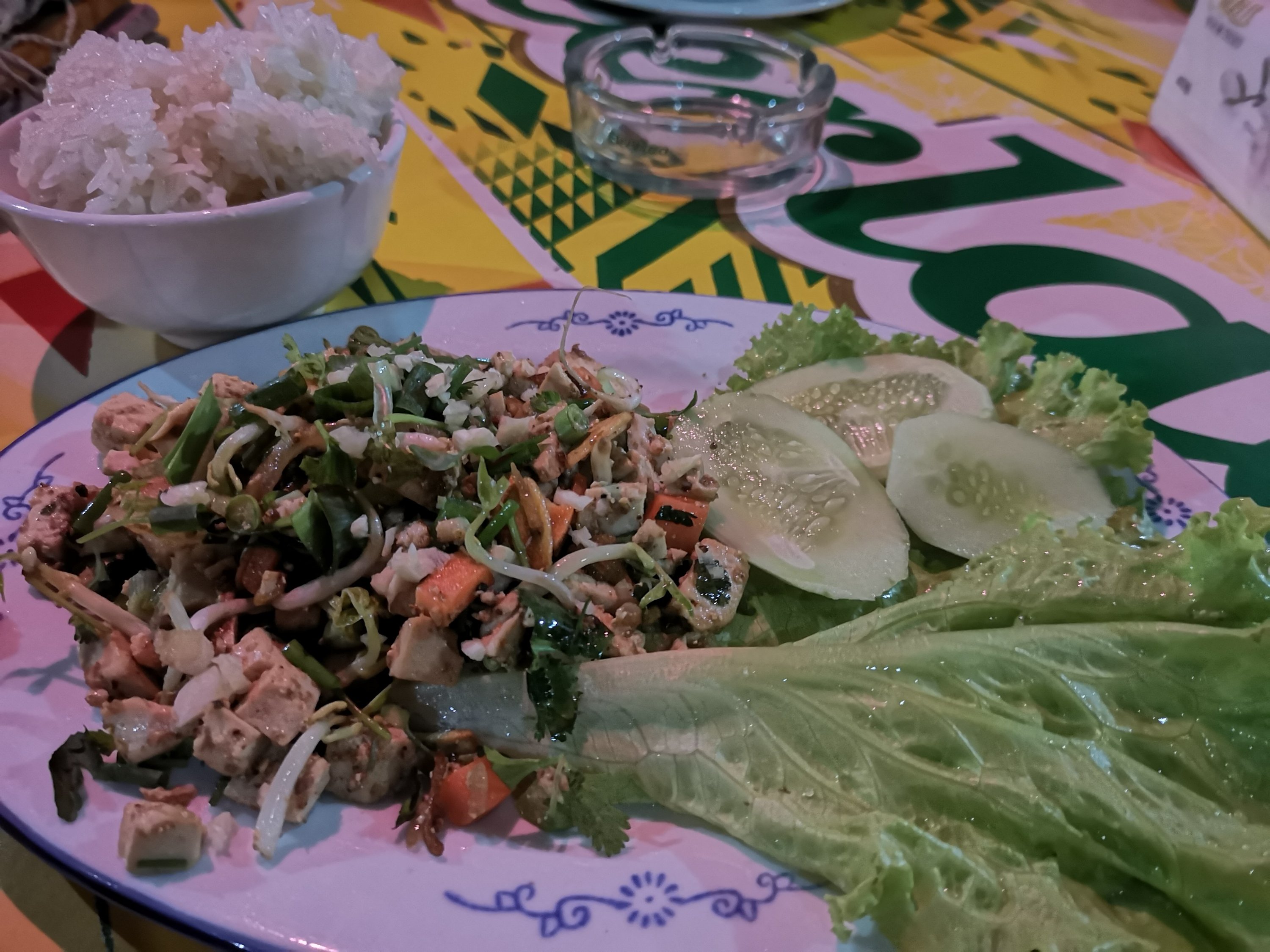 Dinner was tofu lob. Lob is a Laos dish and was very tasty. Not hot with fresh ingredients like lemongrass….