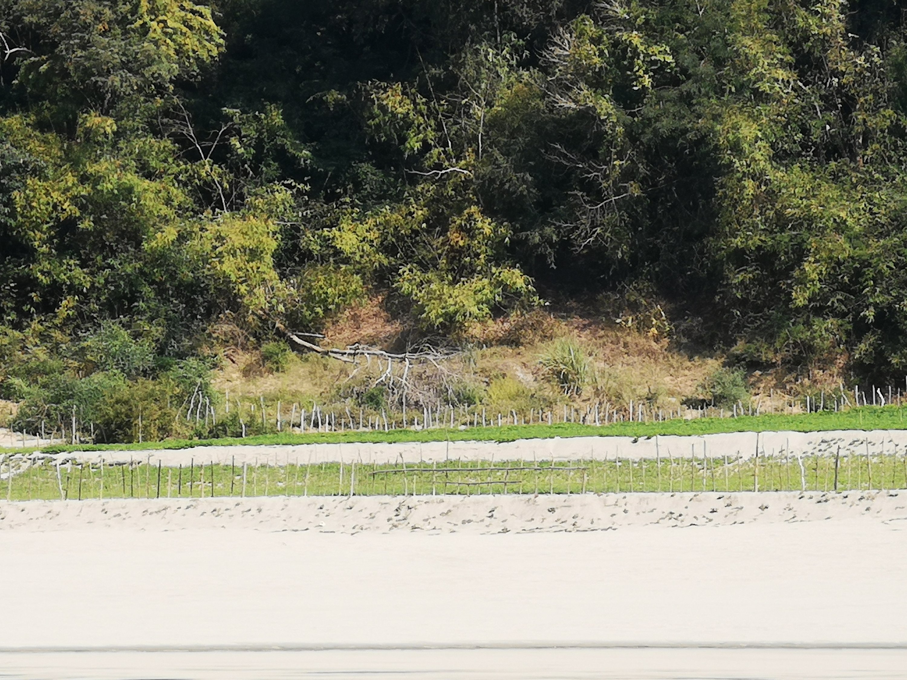 It is difficult to make out, but the poles hold peanut plants in the sand.
