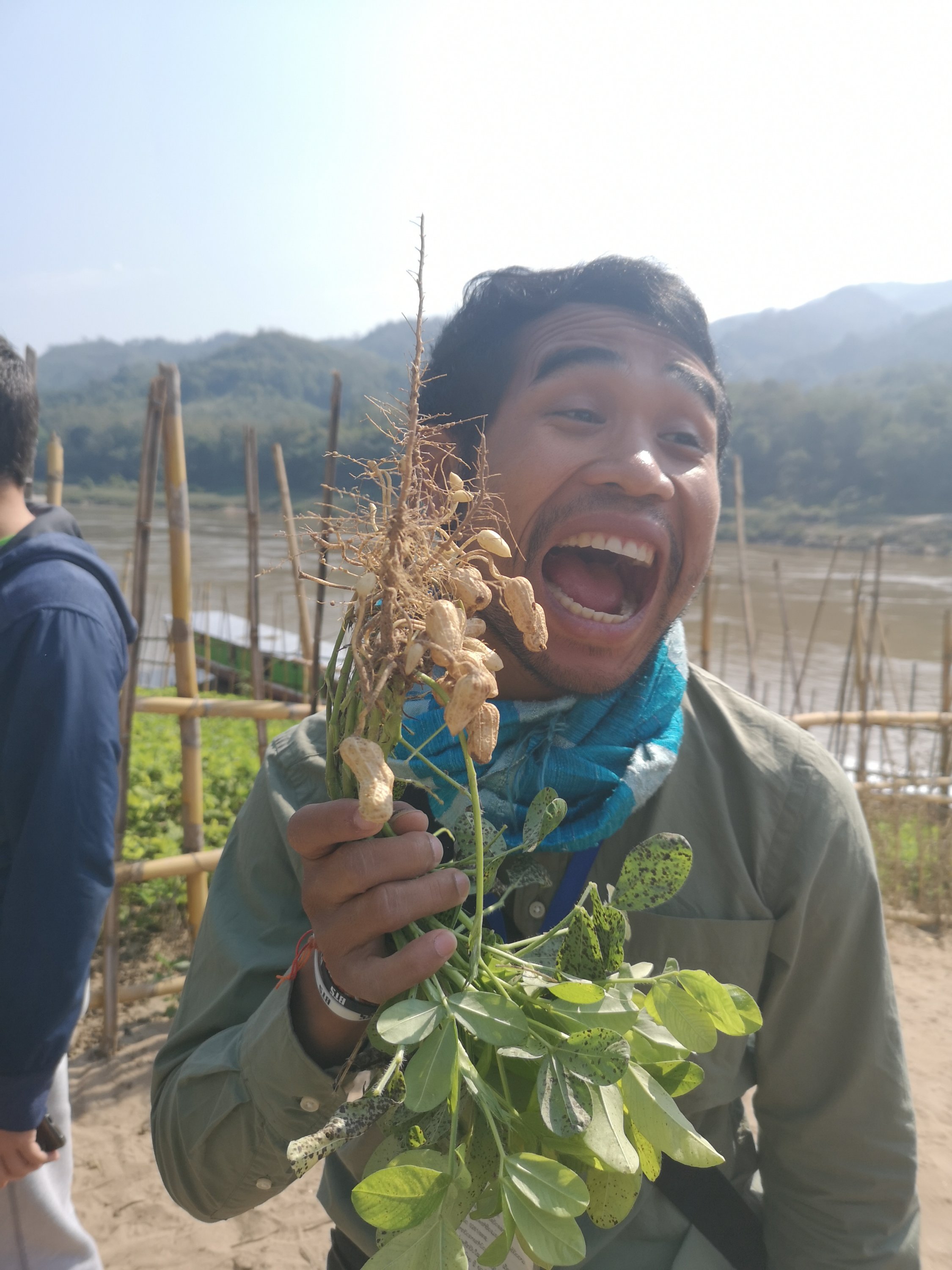 We disembarked from the boat to visit a village. We tried fresh peanuts. Our tour guide is such a ham!