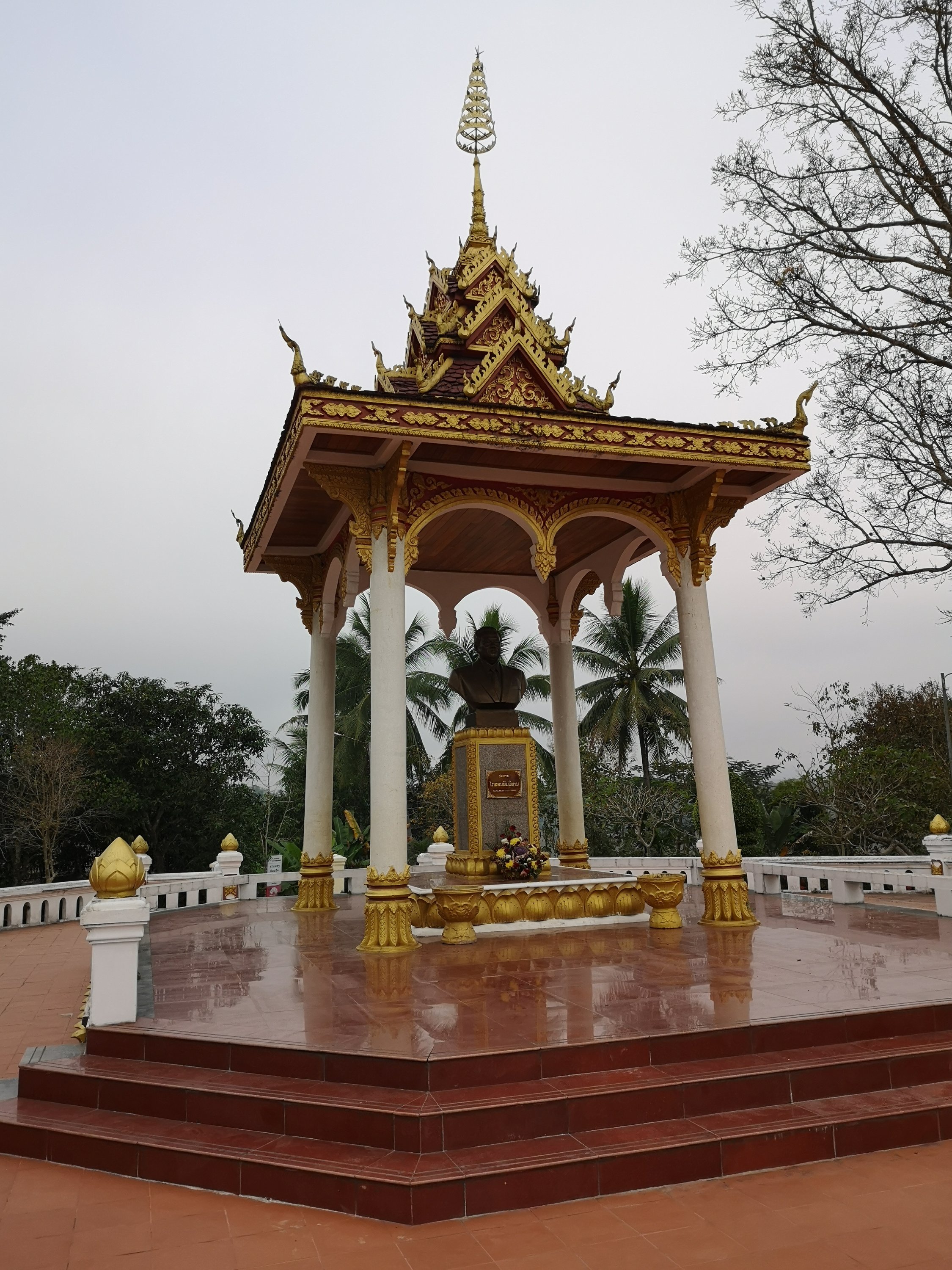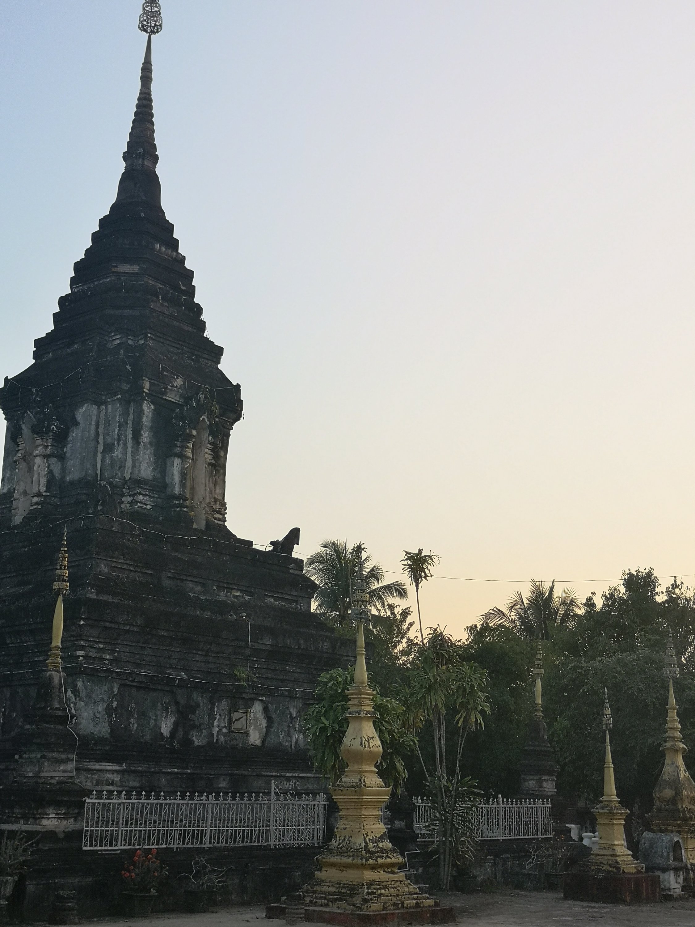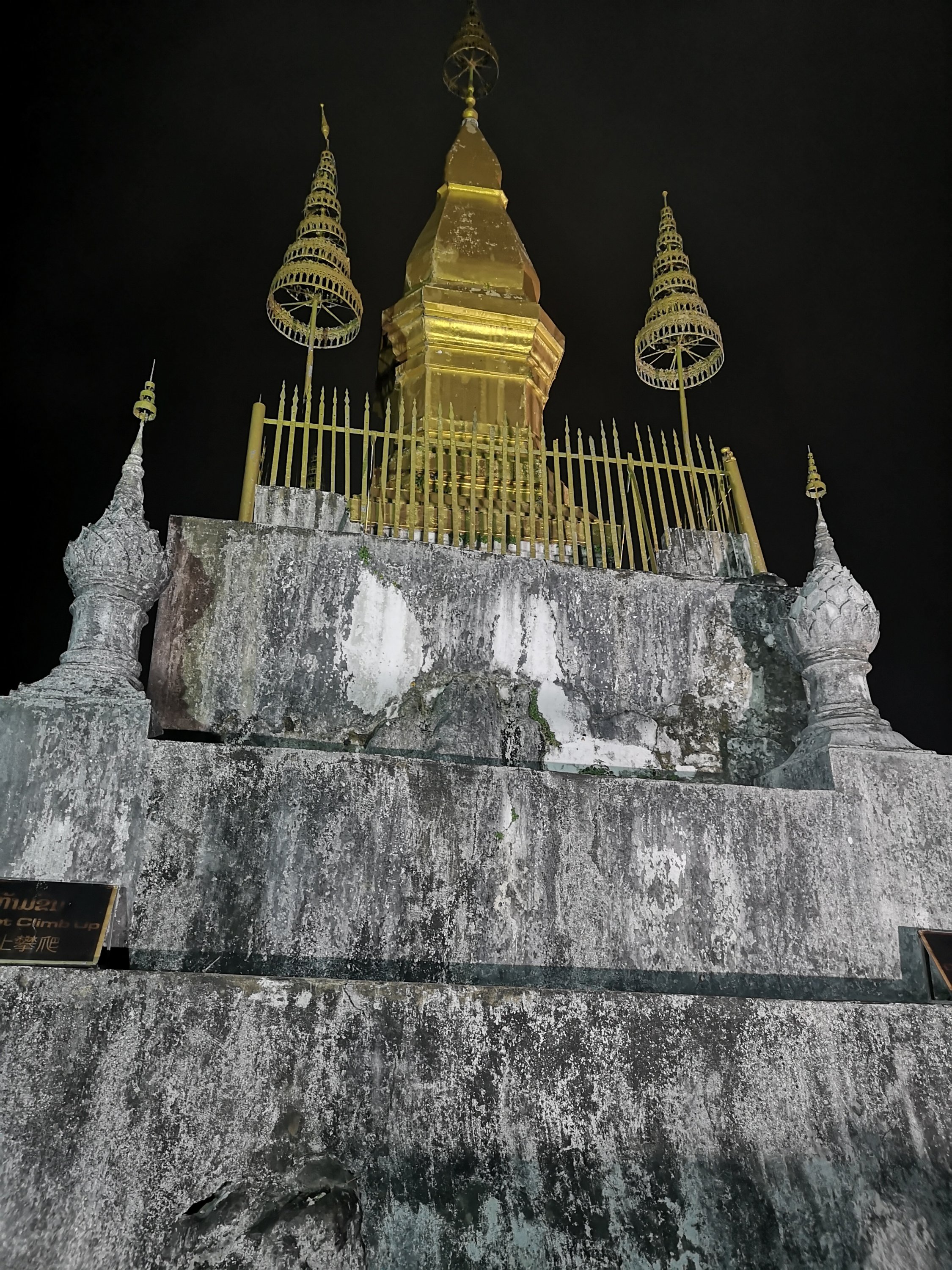 Pictures from the top before sunrise. Wat Chom Si is the name of the temple. It was constructed in 1804 by King Anourat and has a 20m high golden stupaon top.