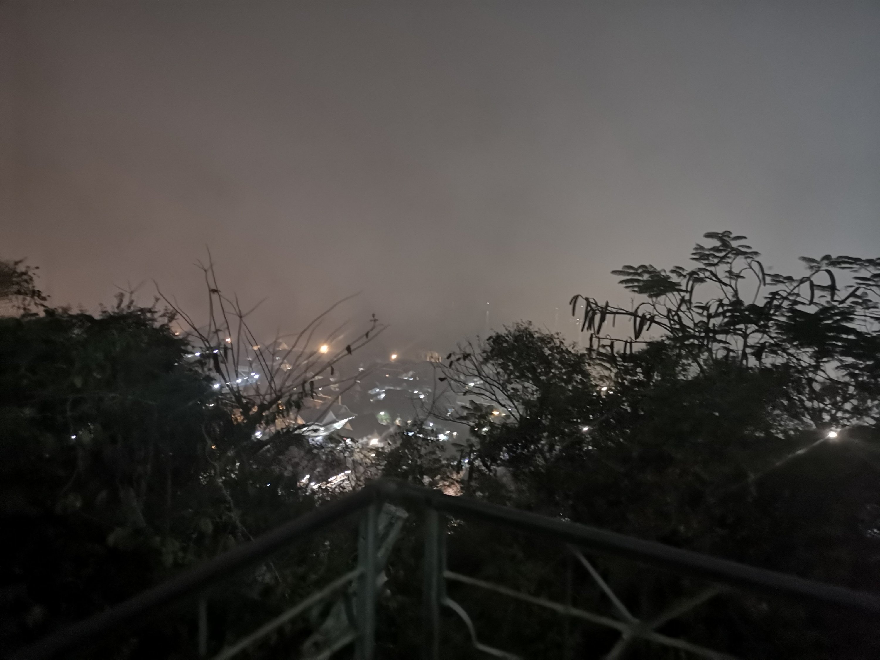 There are two sets of stairs on either main road to get to the top. There are over 300 stairs to climb but even in the dark is not perilous. On my way back down there were many out of breath coming up so it is moderately intense.