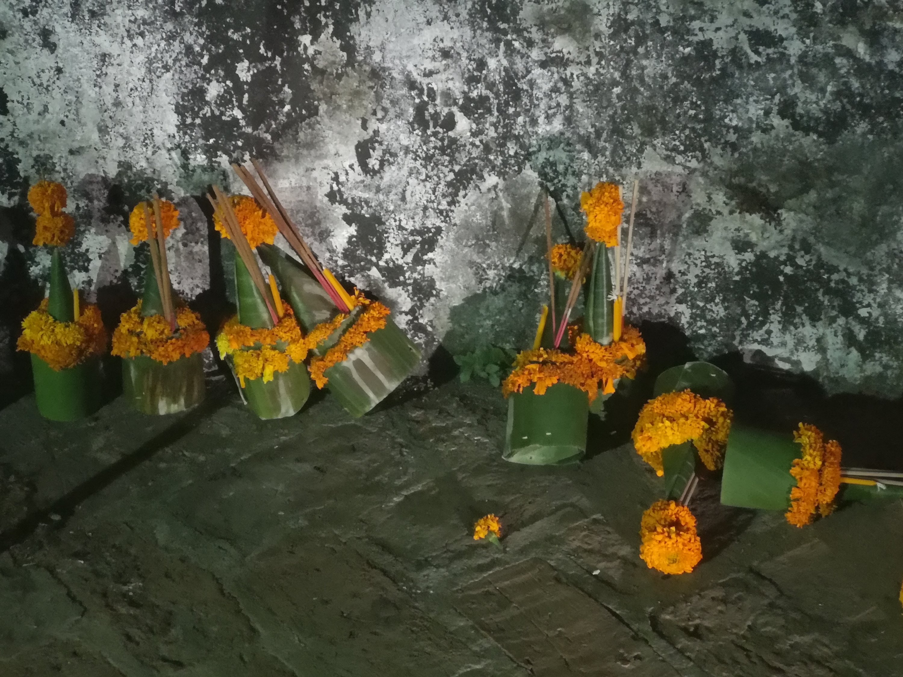 I bought a flower wrapped in banana leaf to give as a prayer.