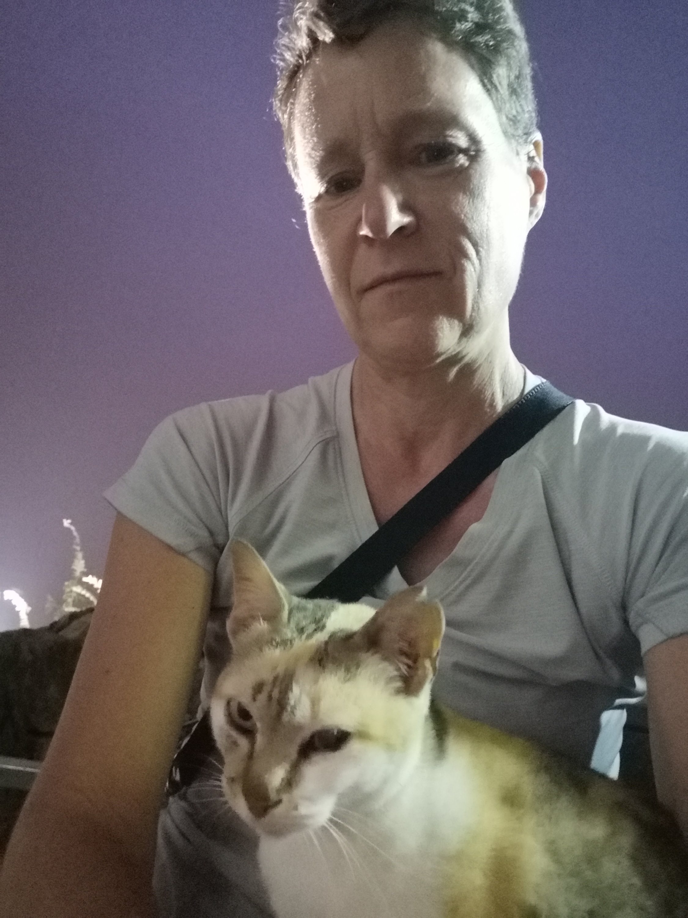 This pregnant kitty also kept me (and others) company. Such a love bug. She willingly climbed on laps. Life must be good for her too.