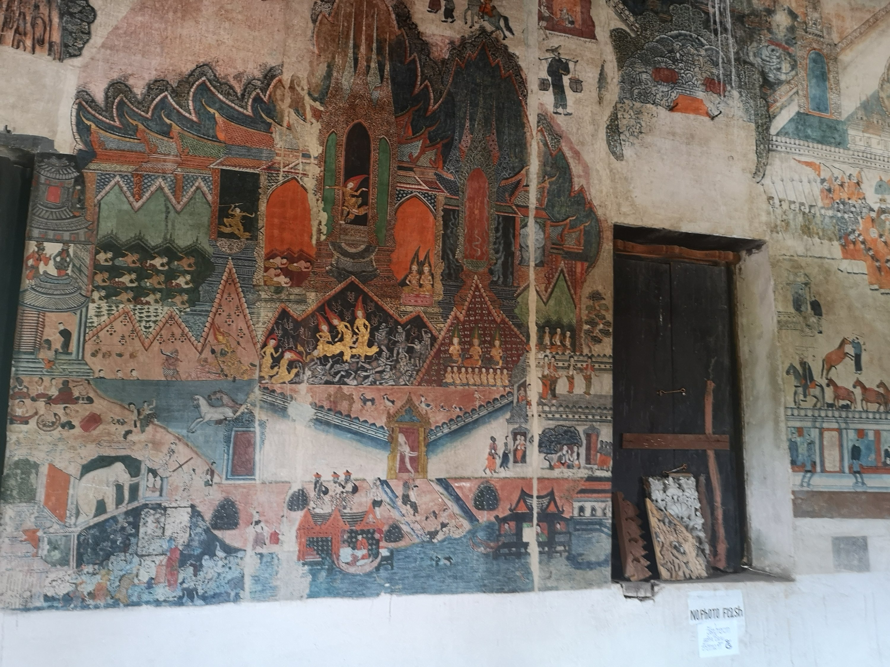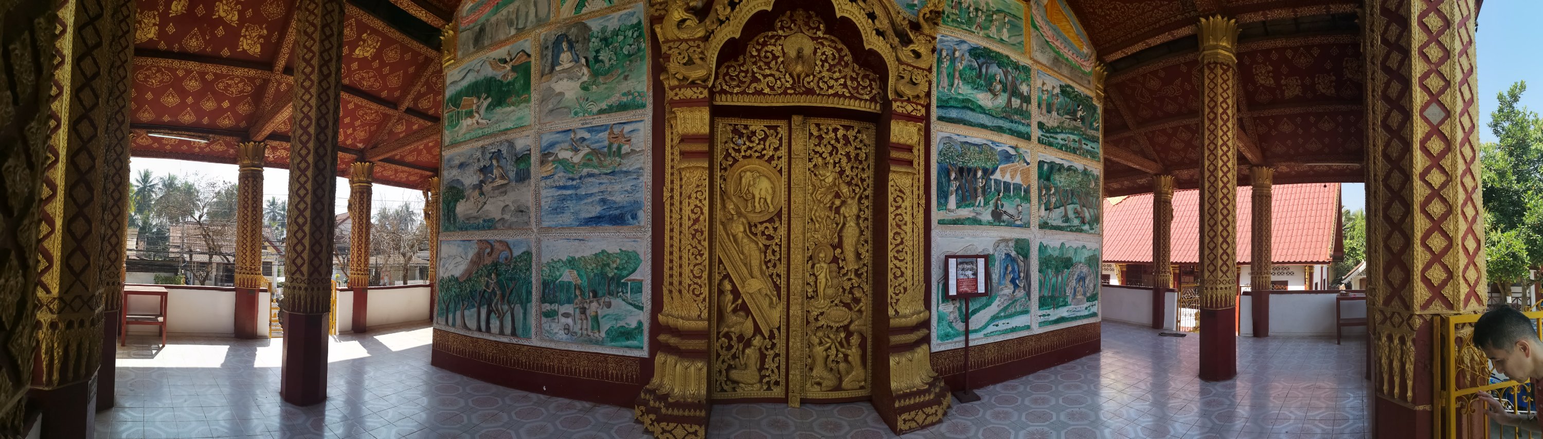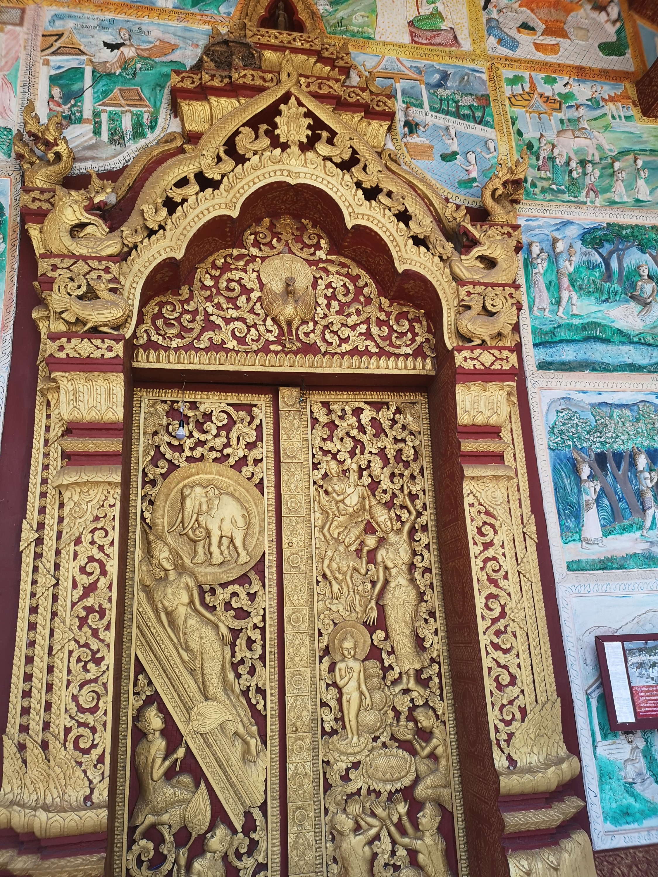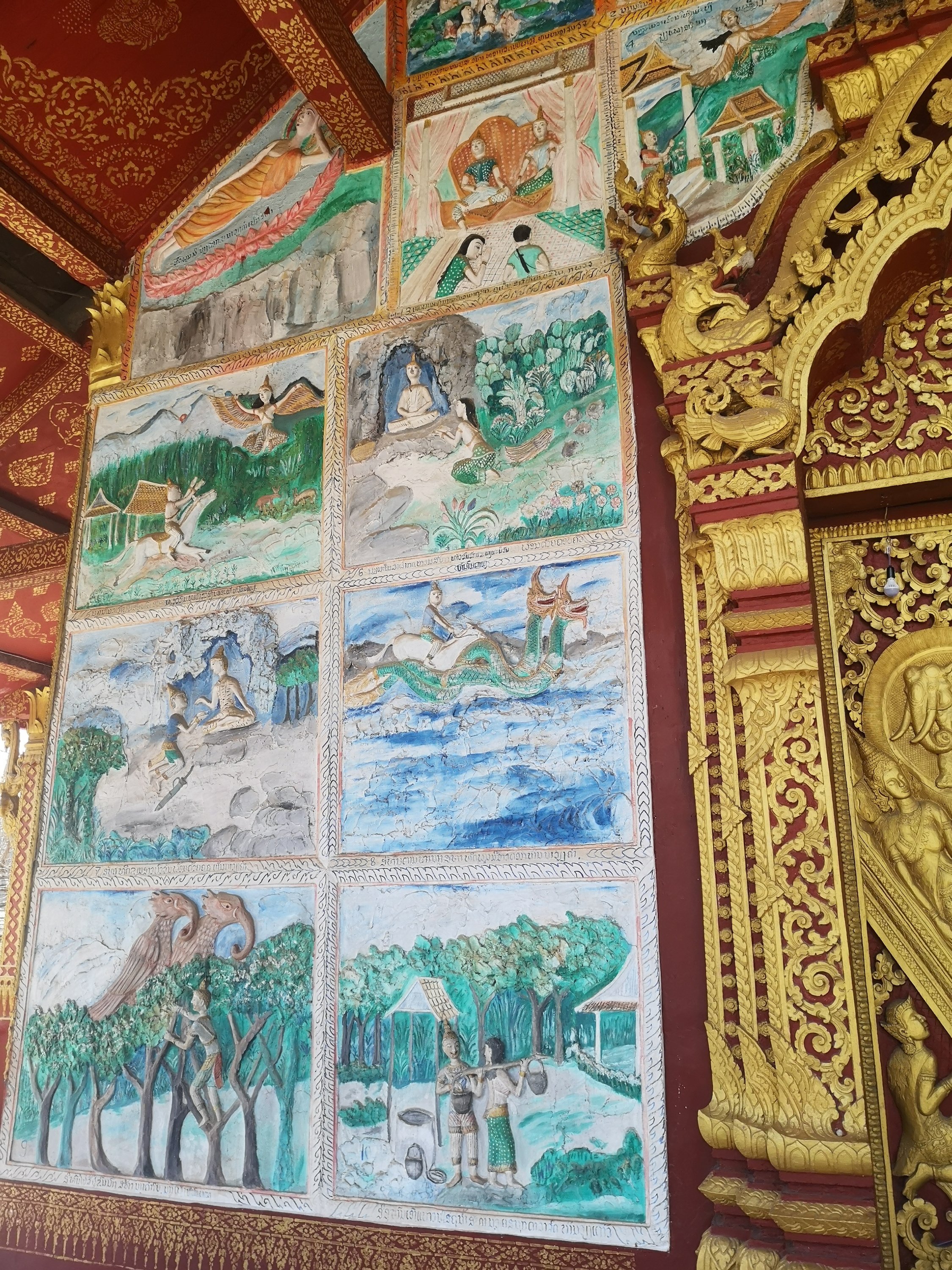 This wat has original 19th-century murals that depict historic scenes along the Mekong River. They chronicle visits by Chinese diplomats and warriors arriving by river or horse and are different than other temples as they show day to day living and not pictures of the story of the life of Buddha or other religious paintings.