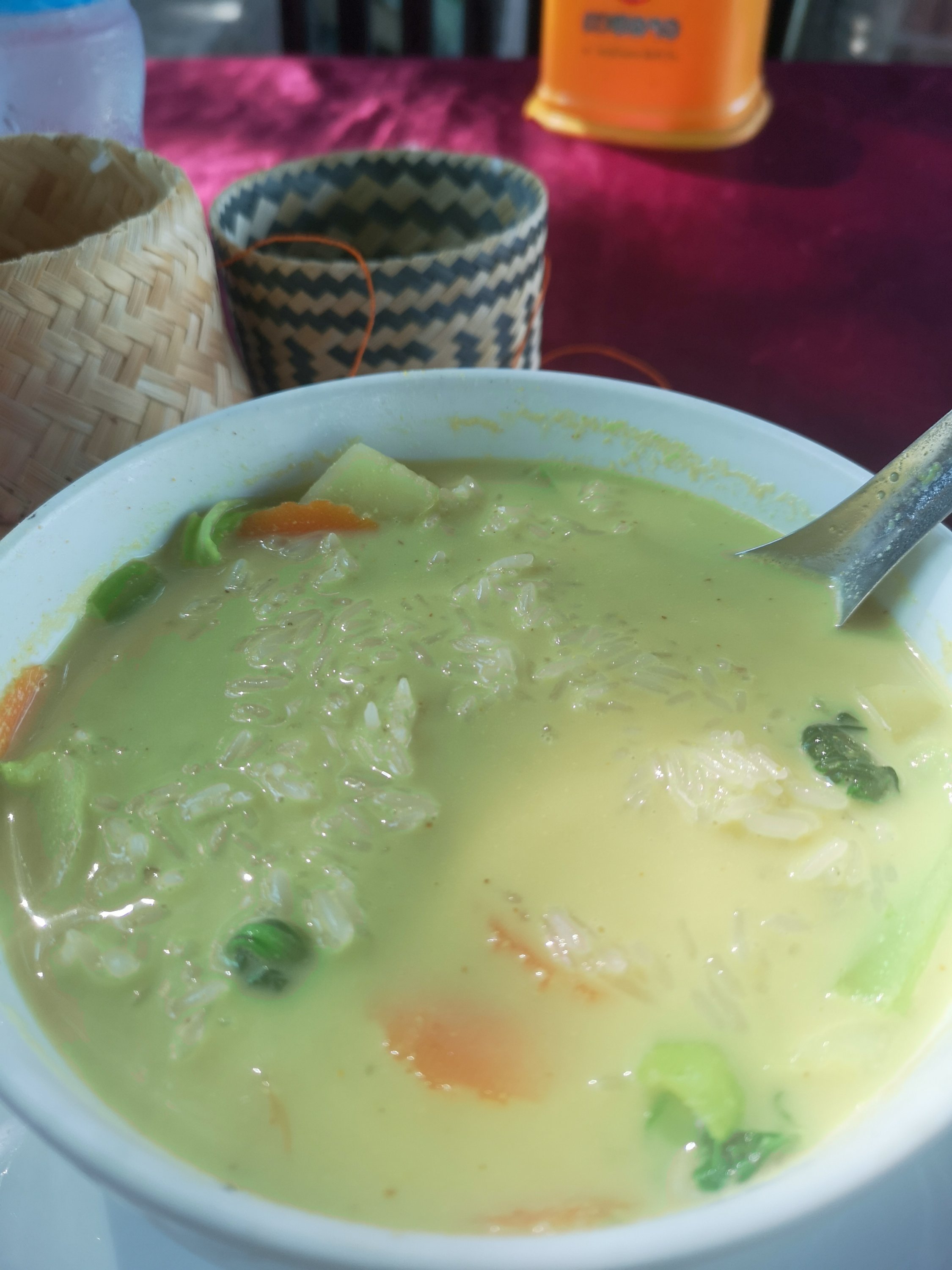 Here I had an Americano and bread with Pandan. Pandan is also known as Screw Pine. This is a fruit that has the consistency of honey. It is sweet and mango like. The color is green. It is really hard to describe but tasty. The price is 30,000 kip which is 3.00 US.