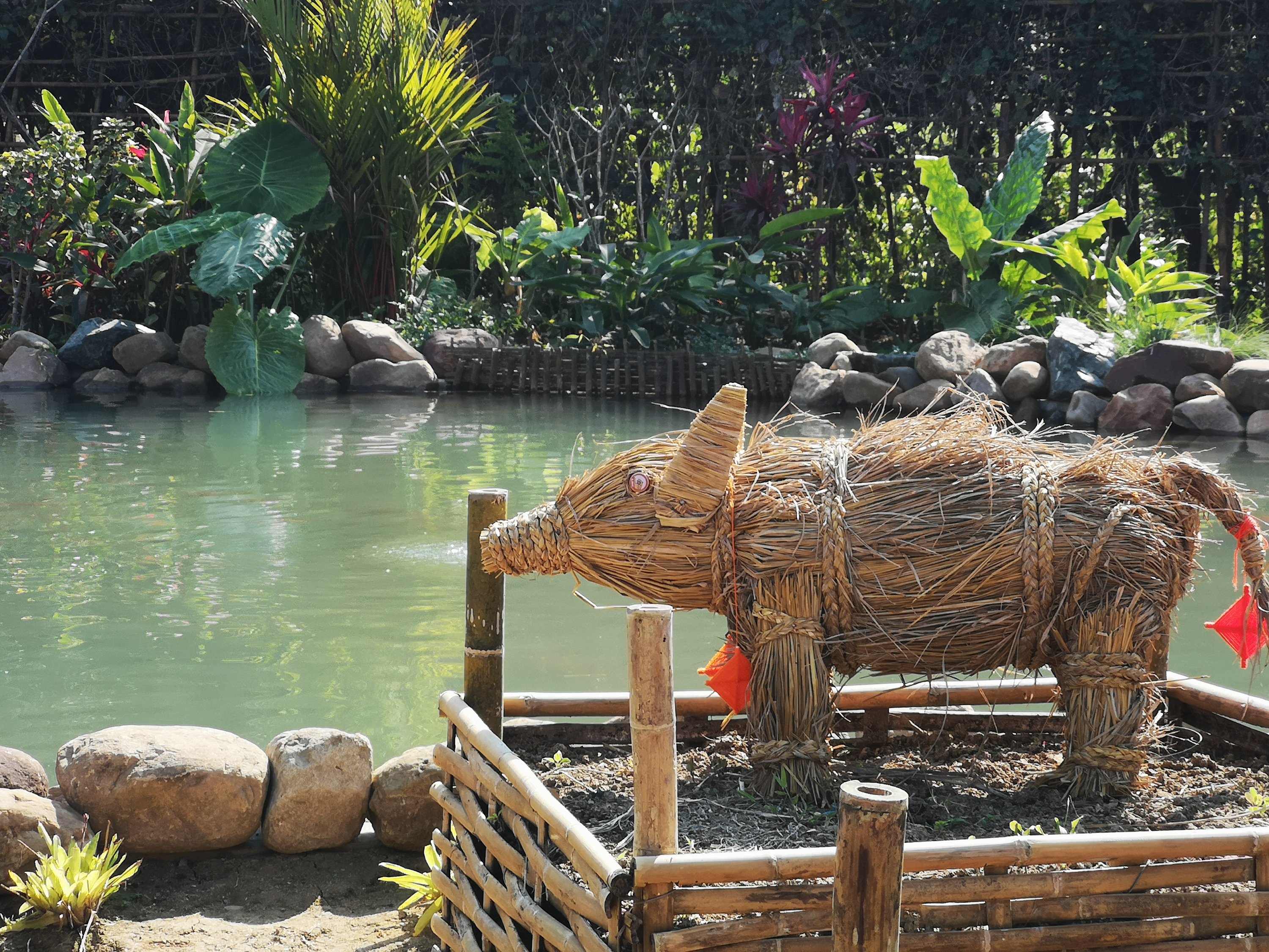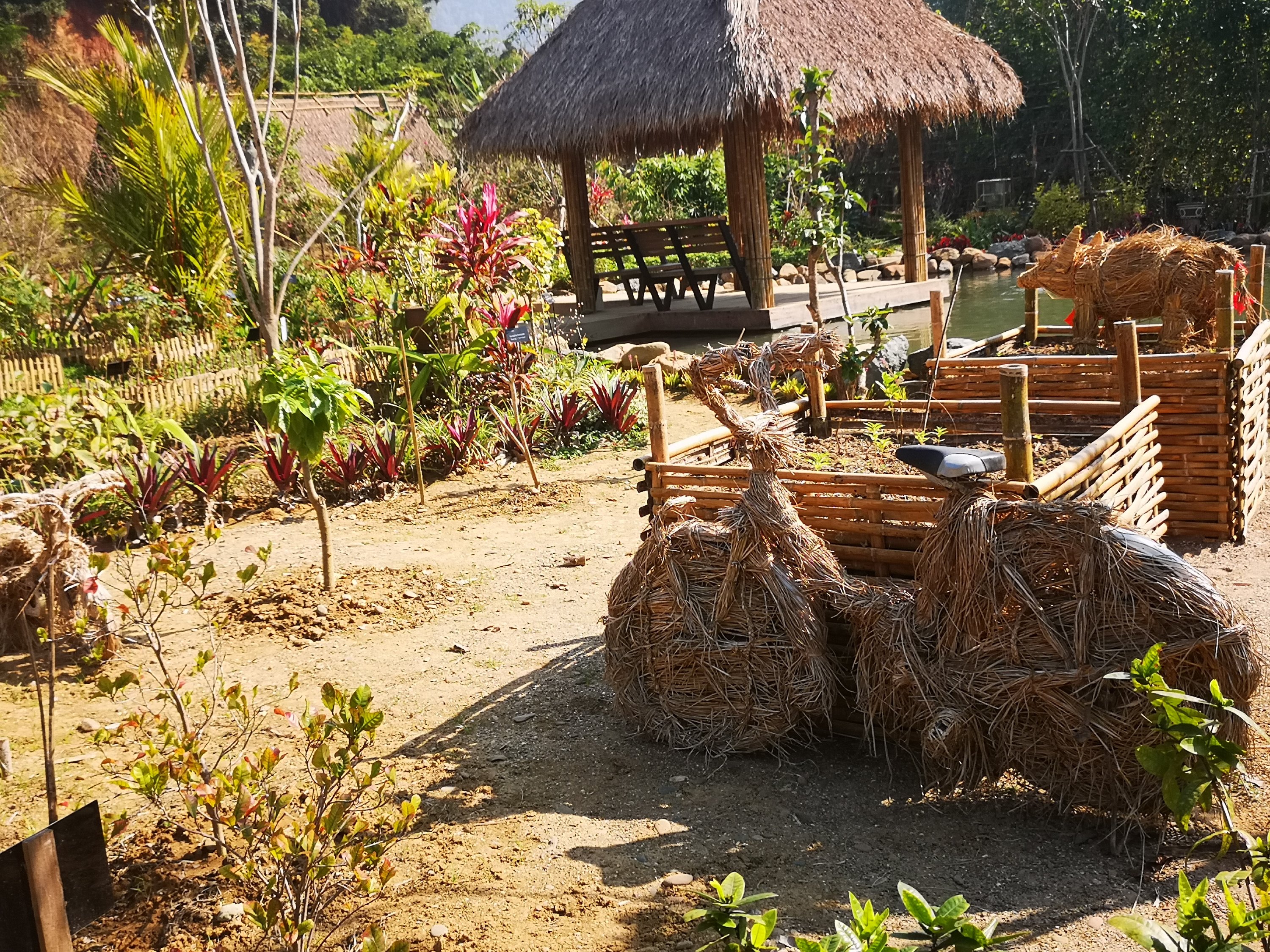 At the swan pond is an opportunity to weave with bamboo. I was running out of time at that point.