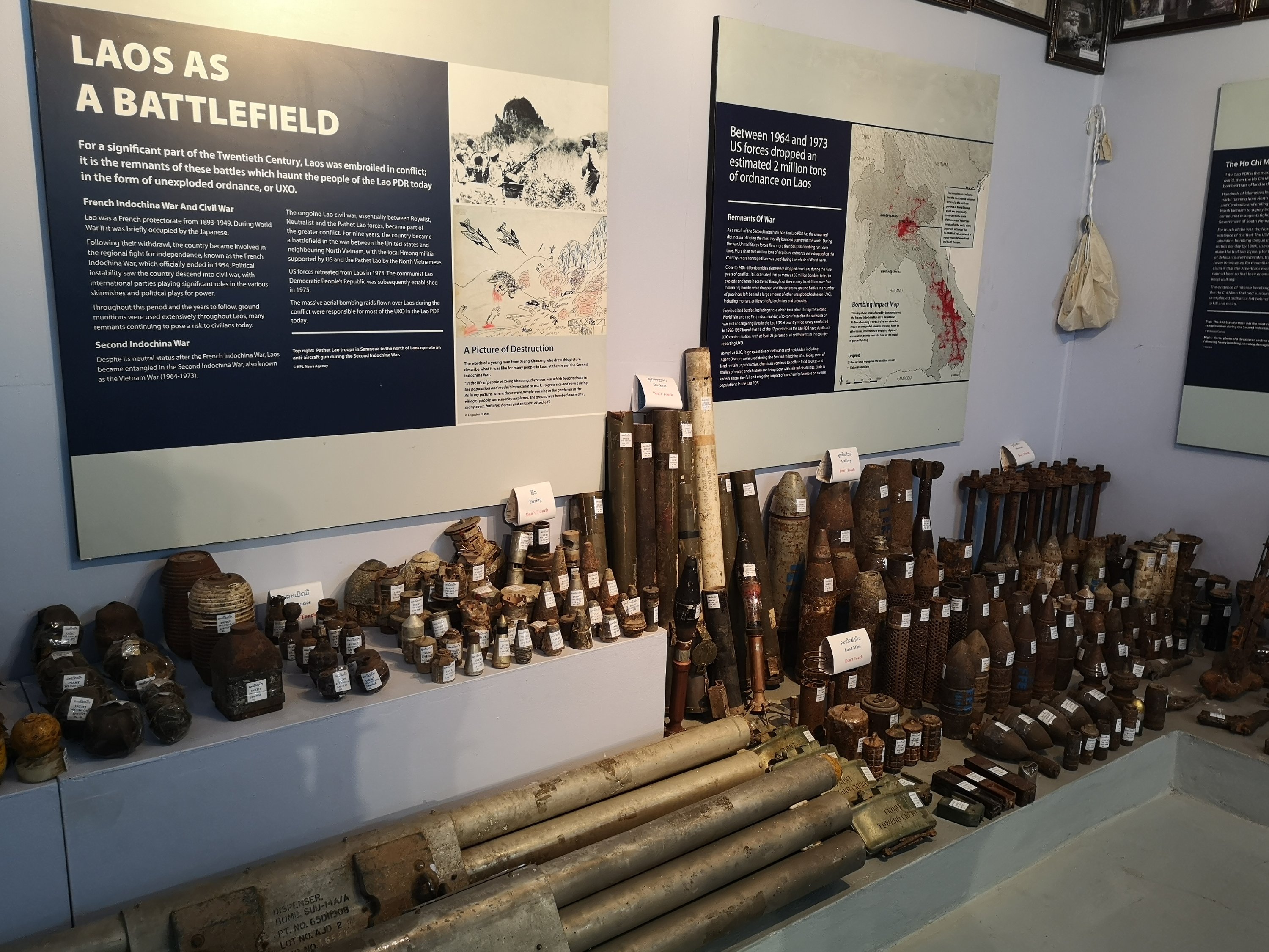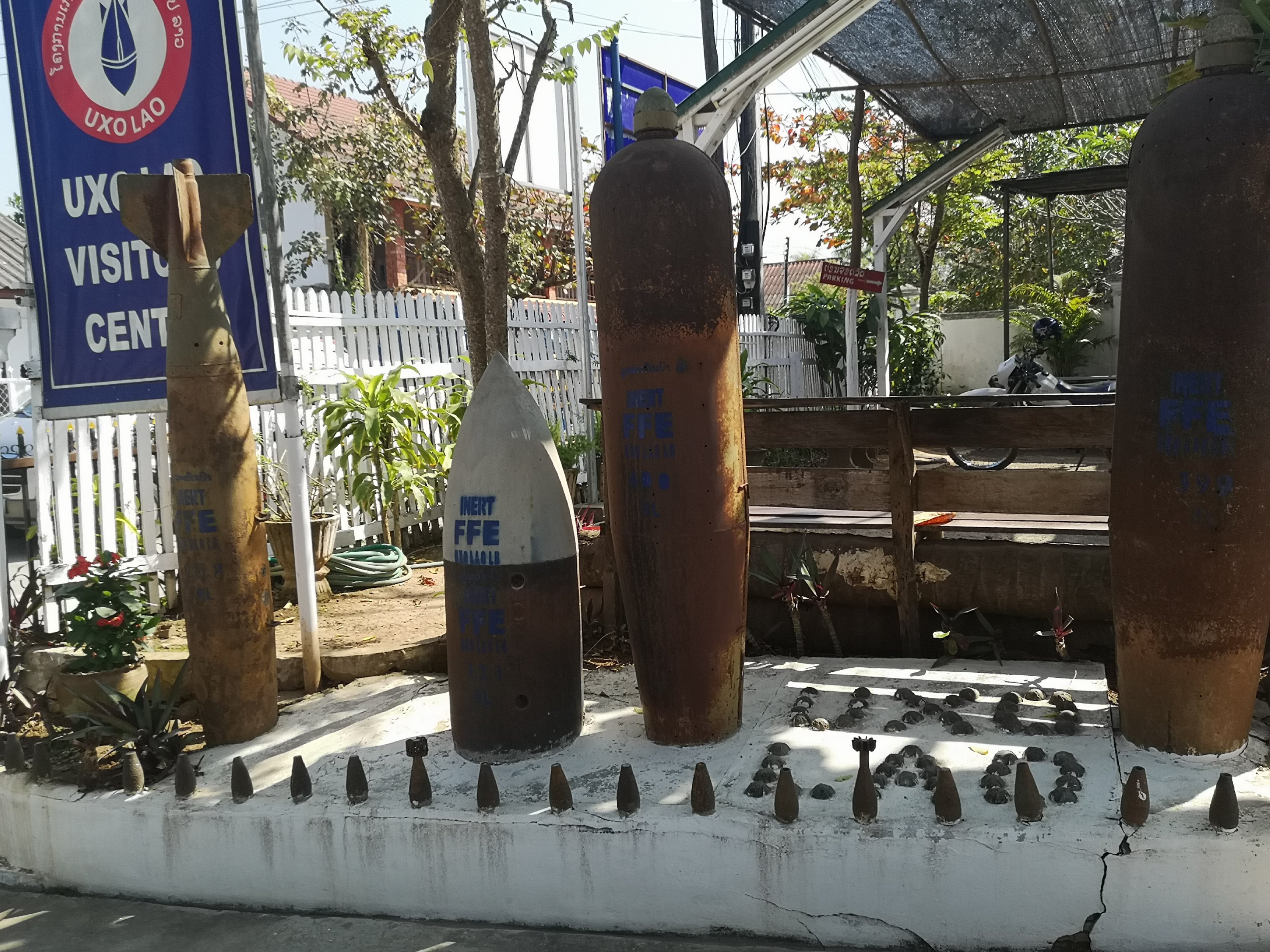 They had a variety of bombs. Fuses and the chemicals have been removed from them. This shows all the devices that were used by the US and the Russians to back who we wanted to make Laos “safe”. We were wrong. Communism is not an enemy and we destabilized a whole area just like we are still doing in the middle east.