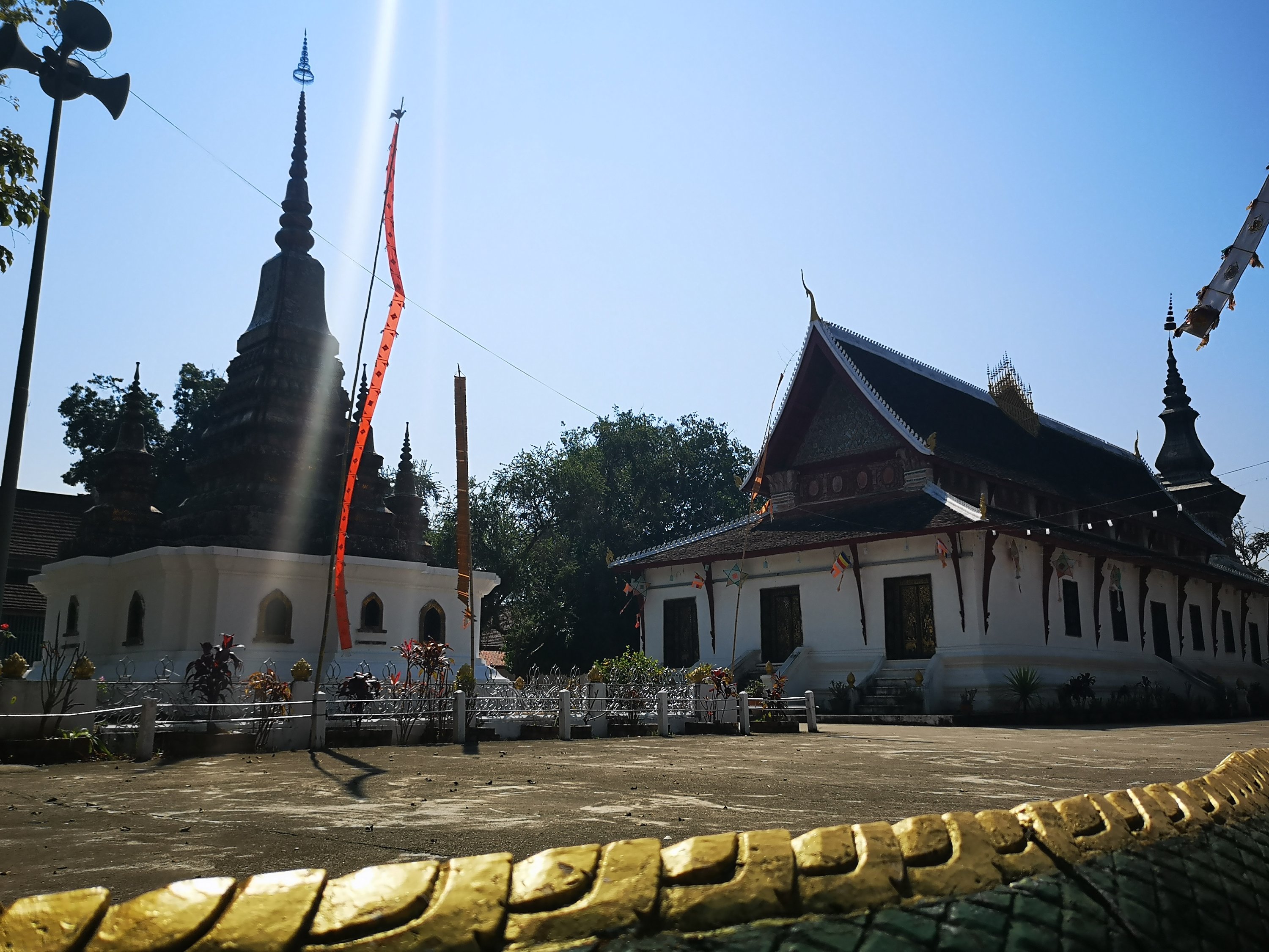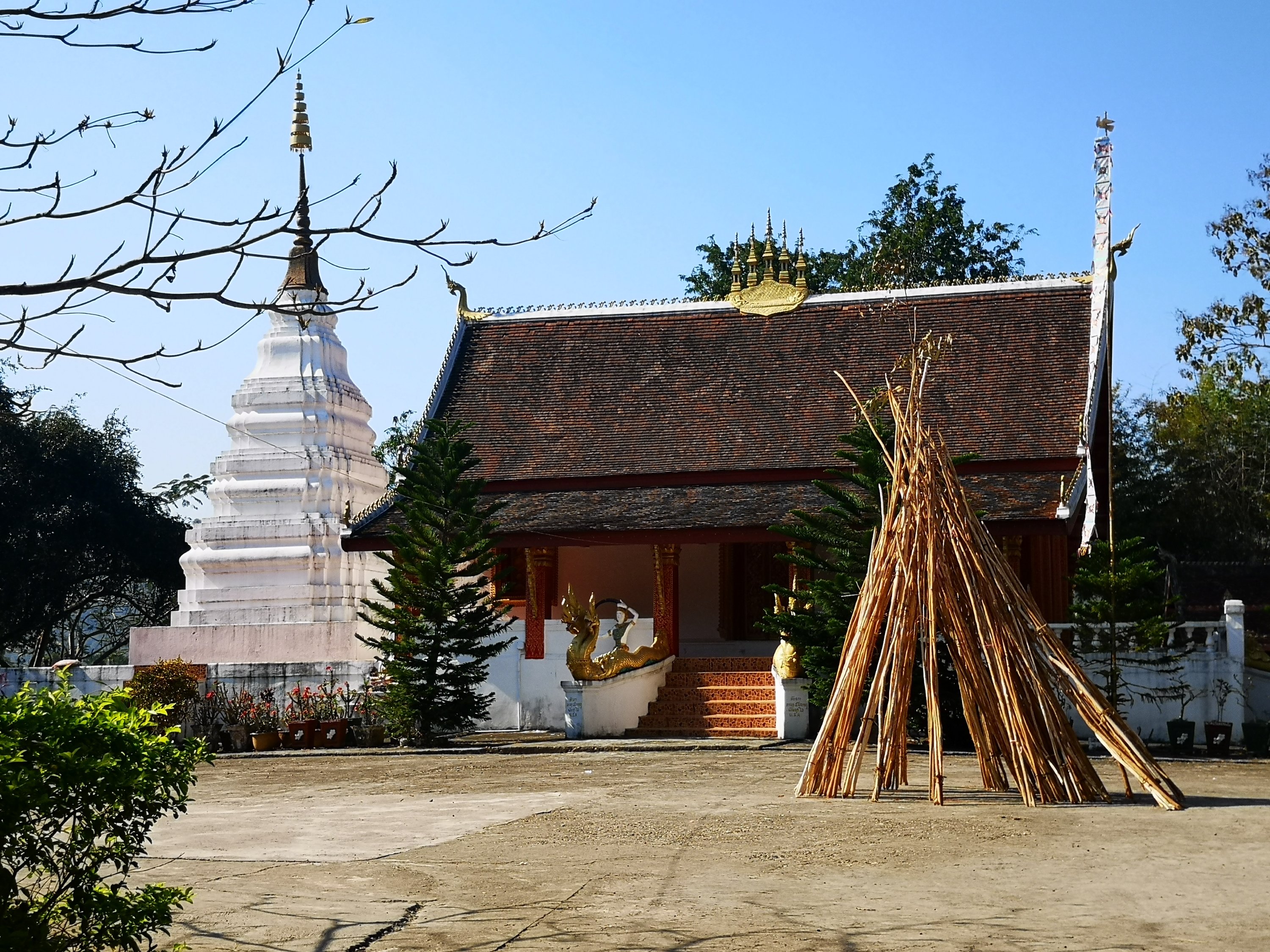 The temple and a stupa.
