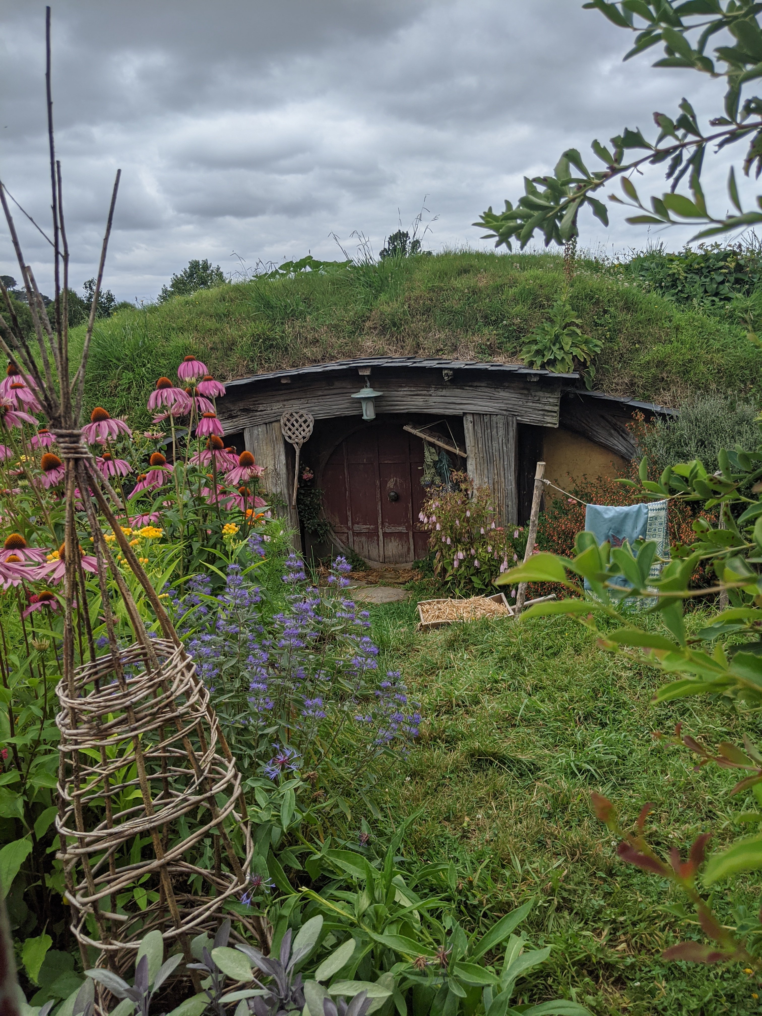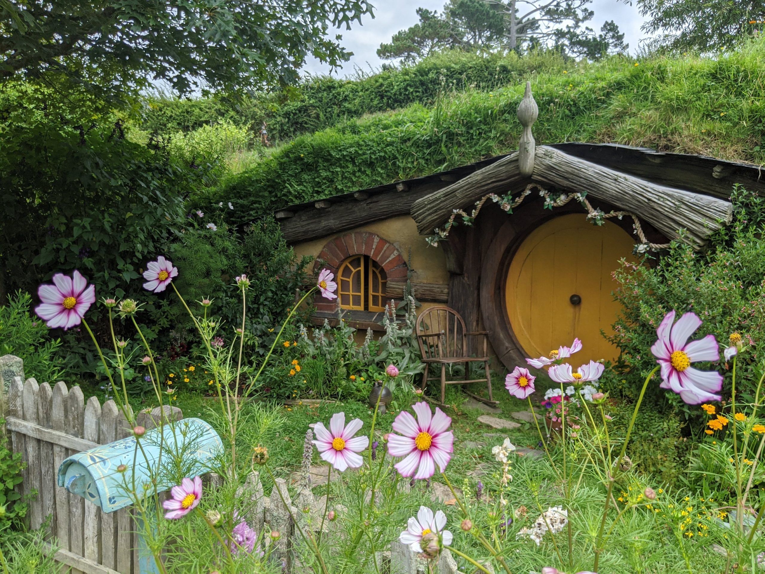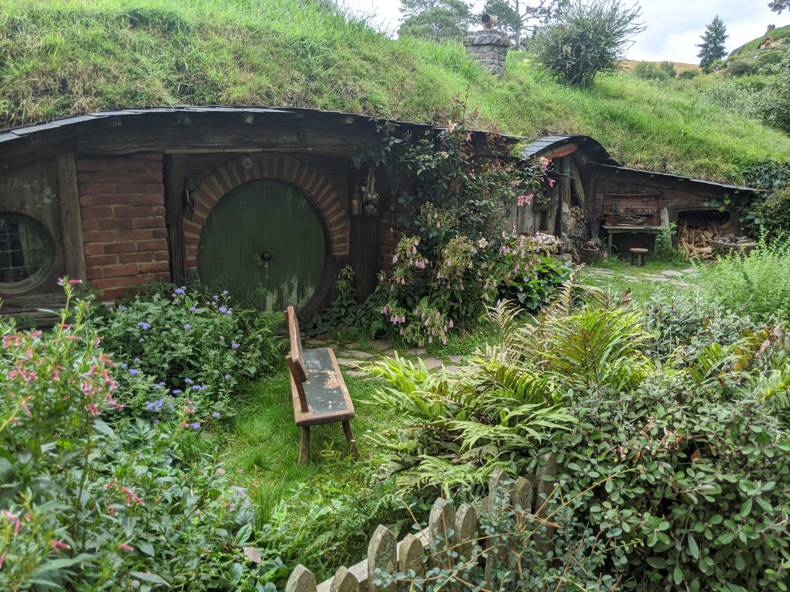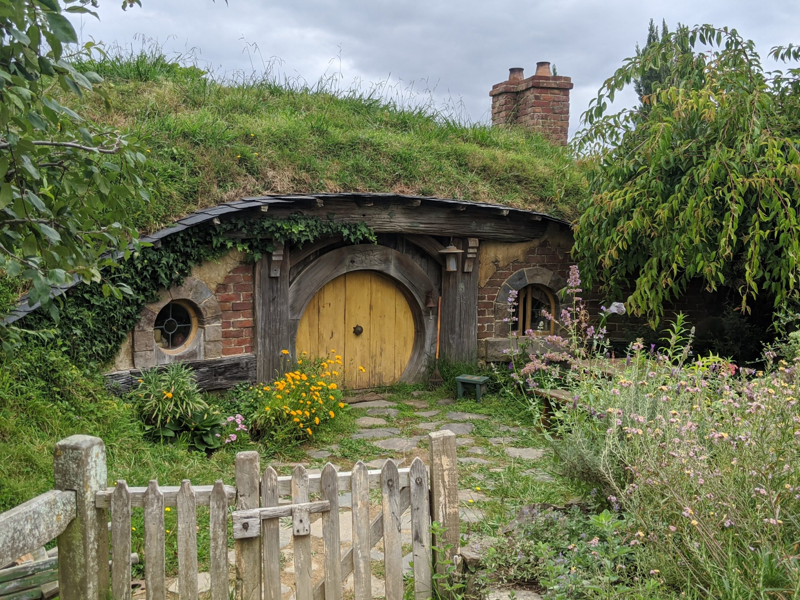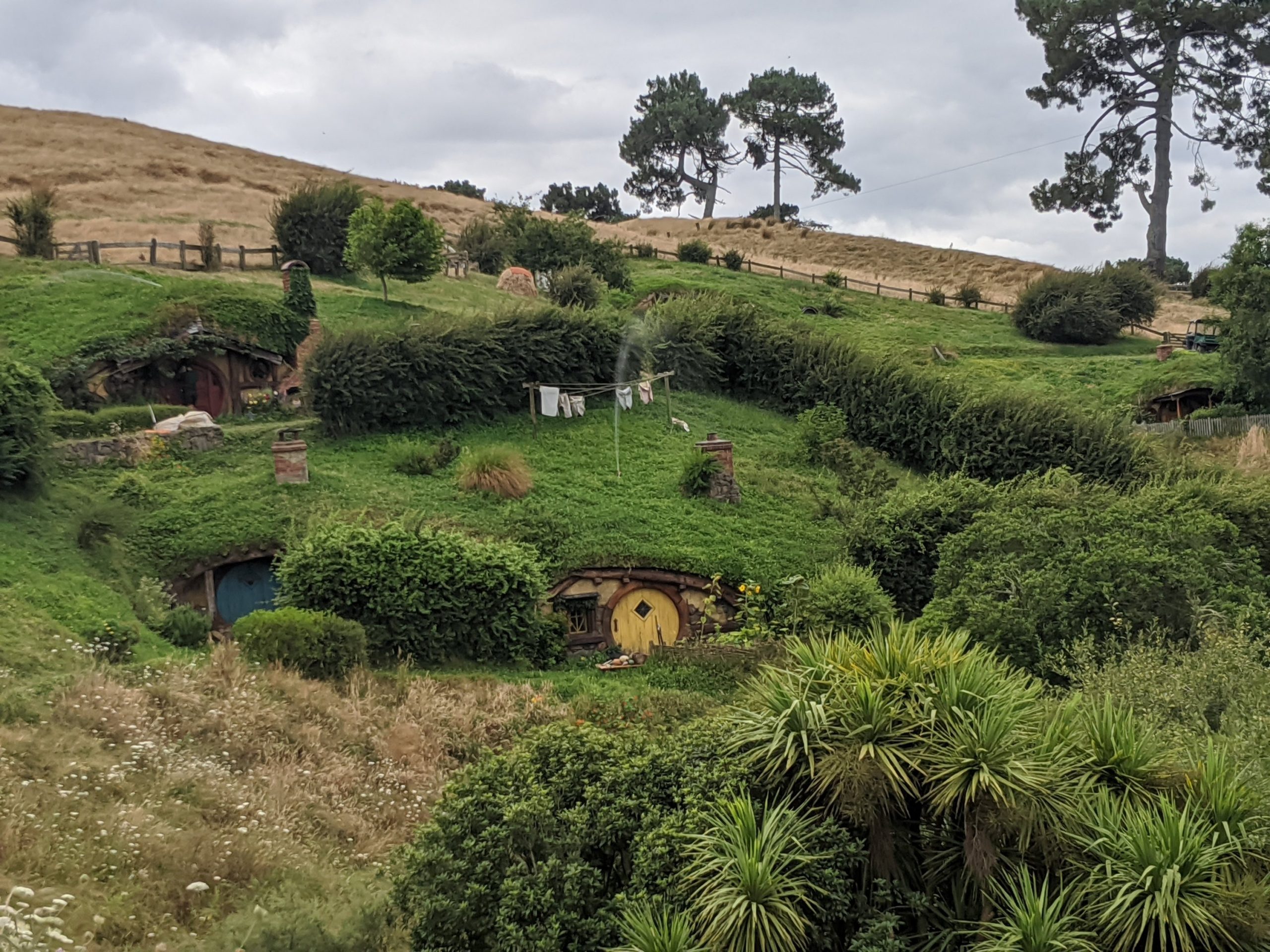 We learned how sets were made and how they made moss looks realistic. Everything is of poly wood to last longer.We were told about the two different sizes of Hobbit holes. They would use the small ones to photograph Gandalf and the large ones for the hobbits to achieve the difference in size of the characters.The attention to detail was amazing including an actual garden.This is the party tree from the movie that we see for Bilboa’s birthday and other clips from the movies. It is very old.This tree is fake. The leaves were taken off and fake leaves from Taiwan were purchased to put on the tree. Afterwards the color of the leaves was not quite right and Jackson hired people to paint the leaves to be the perfect color. Bilboa’s house is beneath it.The view from Bilboa’s door. In the movie he looks over to see a sunset. It is actually a sunrise. They shot the sequence backwards then played it in reverse. Bilboa’s house below the fake tree.Bilboa’s front door. Notice it is a larger hole to make the actor appear smaller.This Hobbit hole is smaller and Gandalf would stand here to appear larger.How they made the polywood look like real wood and moss so realistic is amazing.This is Sam’s house. Rosie met him here in the movie and there were 2 children. They are the actual children of the two actors (actors were not married together though.)On the party field below the big tree. This was originally swamp land and had to be raised 18 feet by filling with dirt.The keg on Gandalf’s wagon.Gandalf’s wagon.The Green Dragon Inn. We had a drink here and could choose from an ale, stout, or 2 non alcoholic ciders.