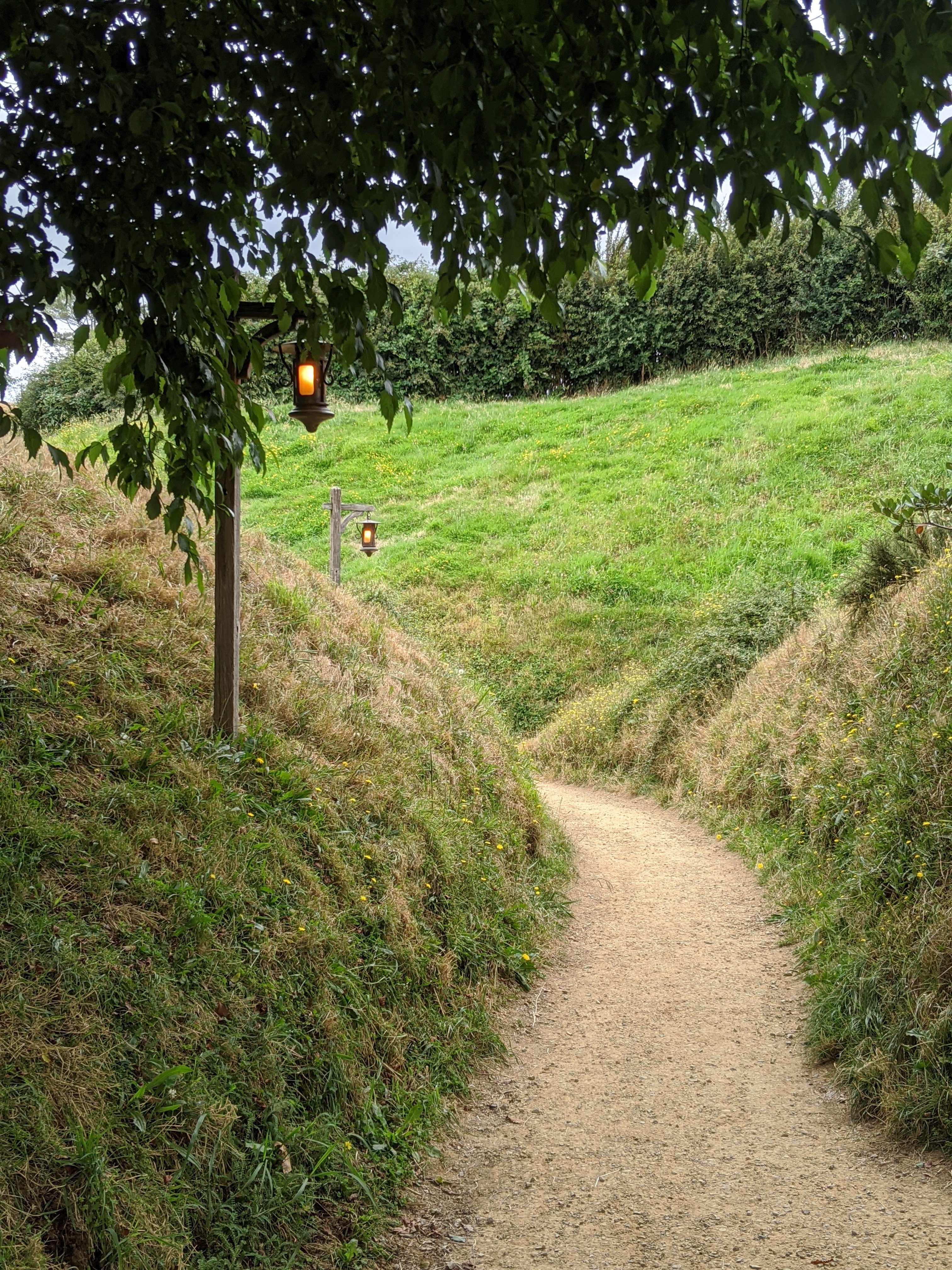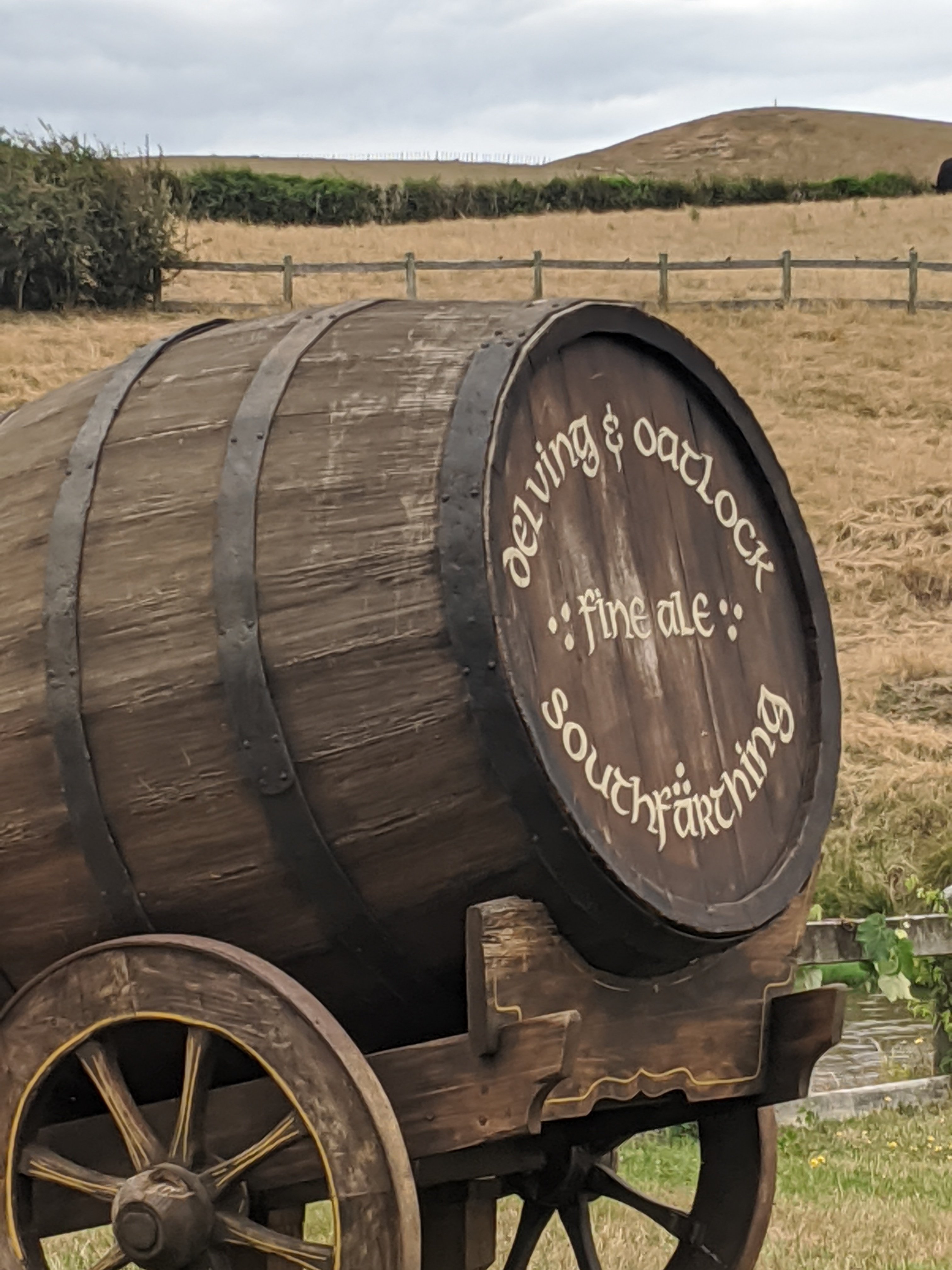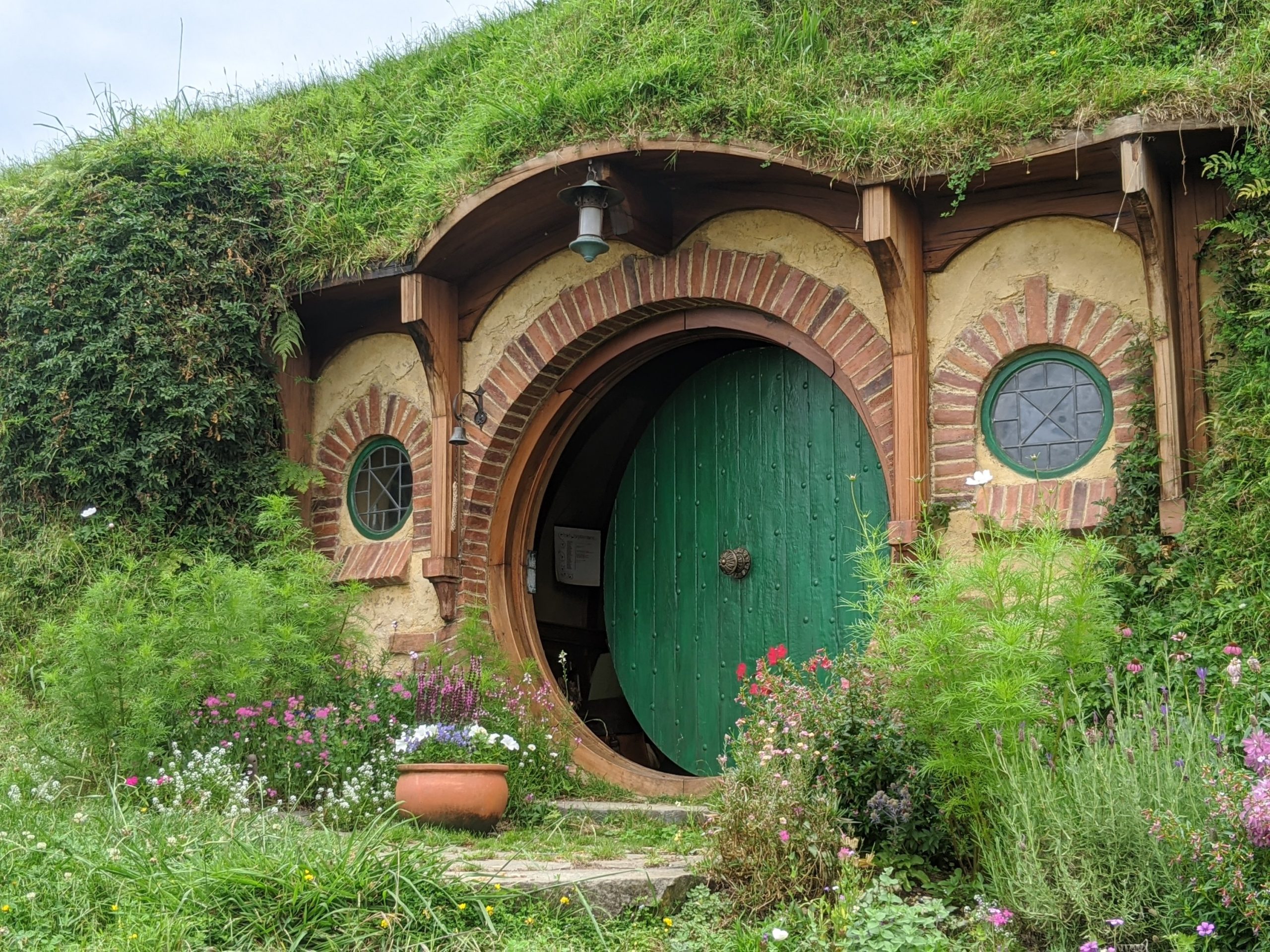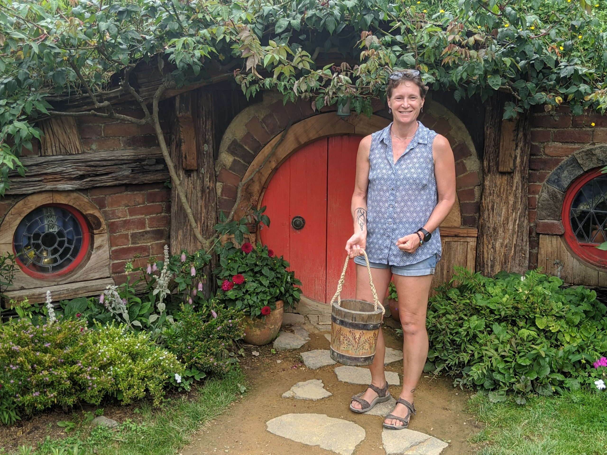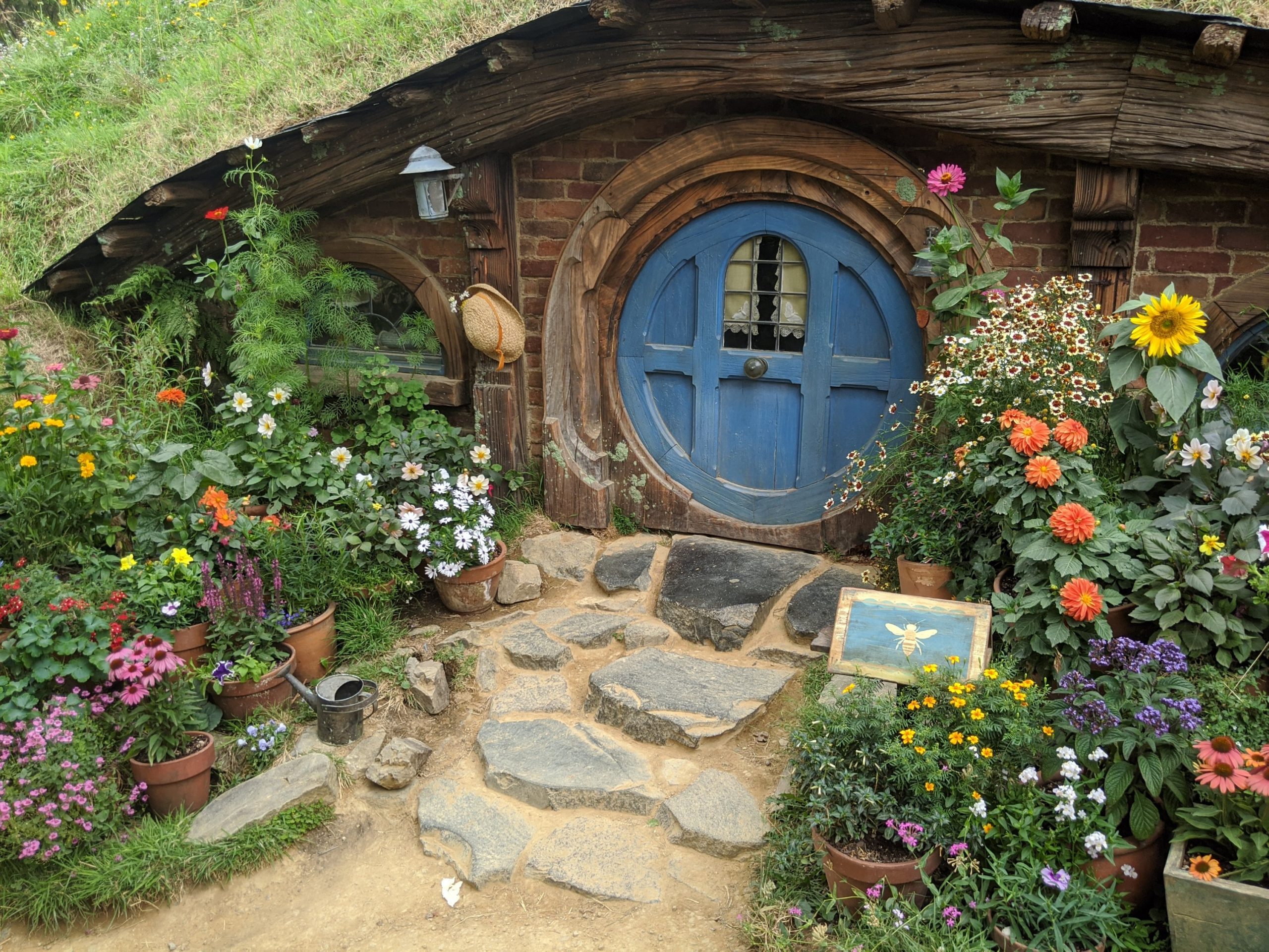We learned how sets were made and how they made moss looks realistic. Everything is of poly wood to last longer.We were told about the two different sizes of Hobbit holes. They would use the small ones to photograph Gandalf and the large ones for the hobbits to achieve the difference in size of the characters.The attention to detail was amazing including an actual garden.This is the party tree from the movie that we see for Bilboa’s birthday and other clips from the movies. It is very old.This tree is fake. The leaves were taken off and fake leaves from Taiwan were purchased to put on the tree. Afterwards the color of the leaves was not quite right and Jackson hired people to paint the leaves to be the perfect color. Bilboa’s house is beneath it.The view from Bilboa’s door. In the movie he looks over to see a sunset. It is actually a sunrise. They shot the sequence backwards then played it in reverse. Bilboa’s house below the fake tree.Bilboa’s front door. Notice it is a larger hole to make the actor appear smaller.This Hobbit hole is smaller and Gandalf would stand here to appear larger.How they made the polywood look like real wood and moss so realistic is amazing.This is Sam’s house. Rosie met him here in the movie and there were 2 children. They are the actual children of the two actors (actors were not married together though.)On the party field below the big tree. This was originally swamp land and had to be raised 18 feet by filling with dirt.The keg on Gandalf’s wagon.Gandalf’s wagon.The Green Dragon Inn. We had a drink here and could choose from an ale, stout, or 2 non alcoholic ciders.
