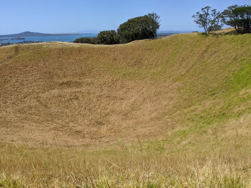 Mt. Eden is also known as Maungawhau and was formed by two simultaneous eruptions 28,000 years ago. Fire fountaining created what we saw as it spewed volcanic ash which collected around it creating a cone.