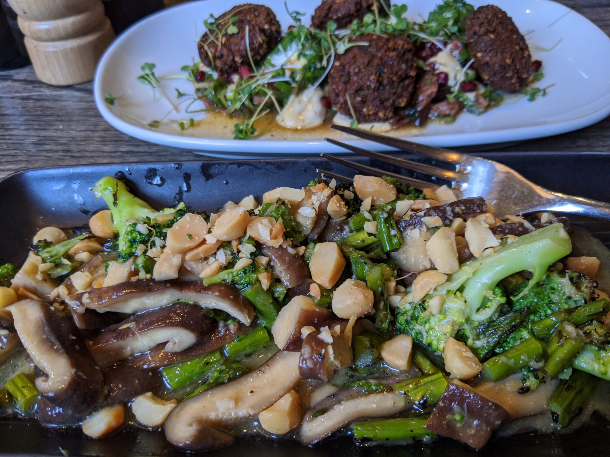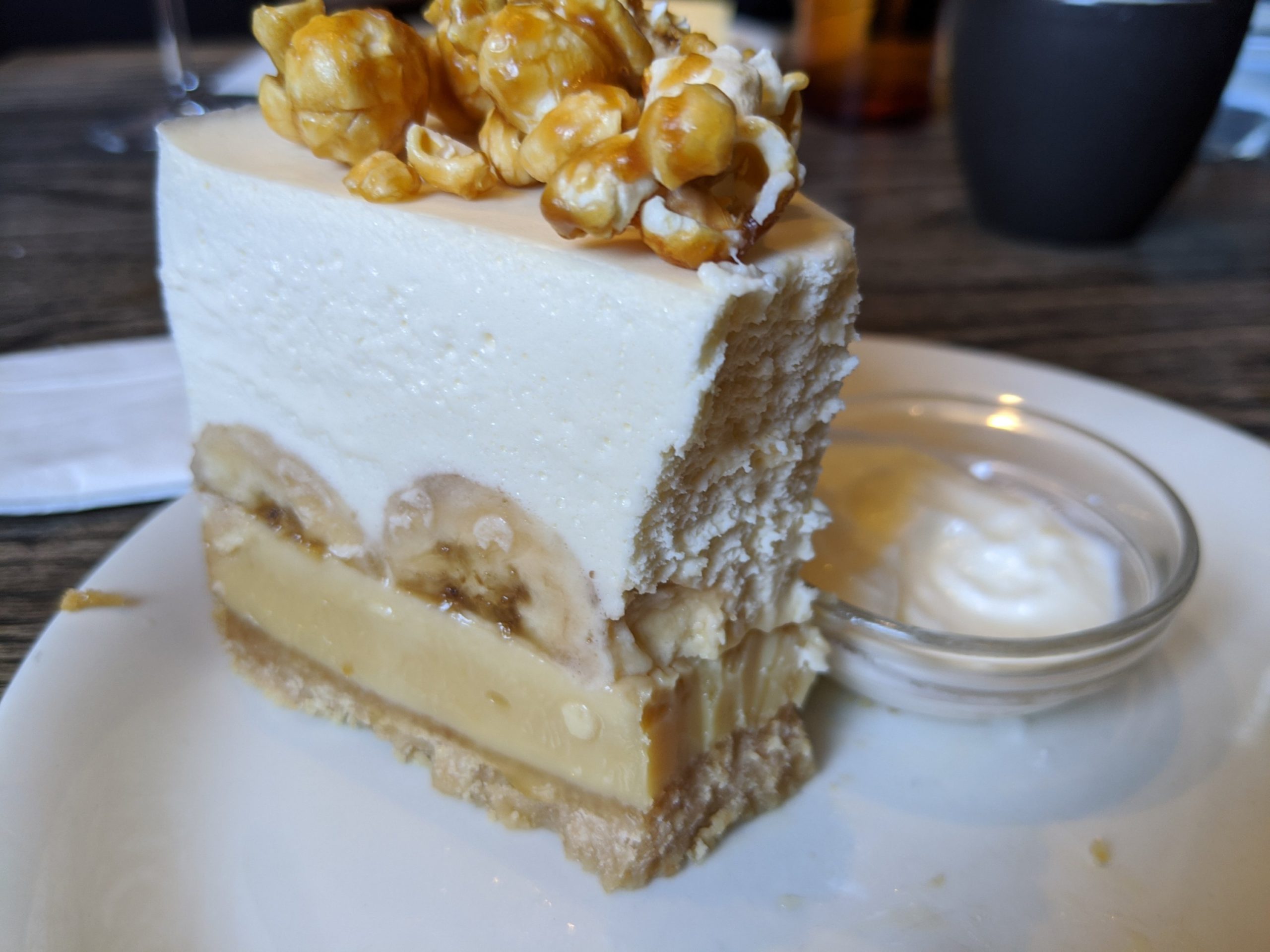 Eden Park is where we will be going to the rugby game tonight. It is the national stadium.View from the top.Walking around mount Eden.We ate here.Charred broccoli salad and falafel with labne and eggplant.Banoffee pie.