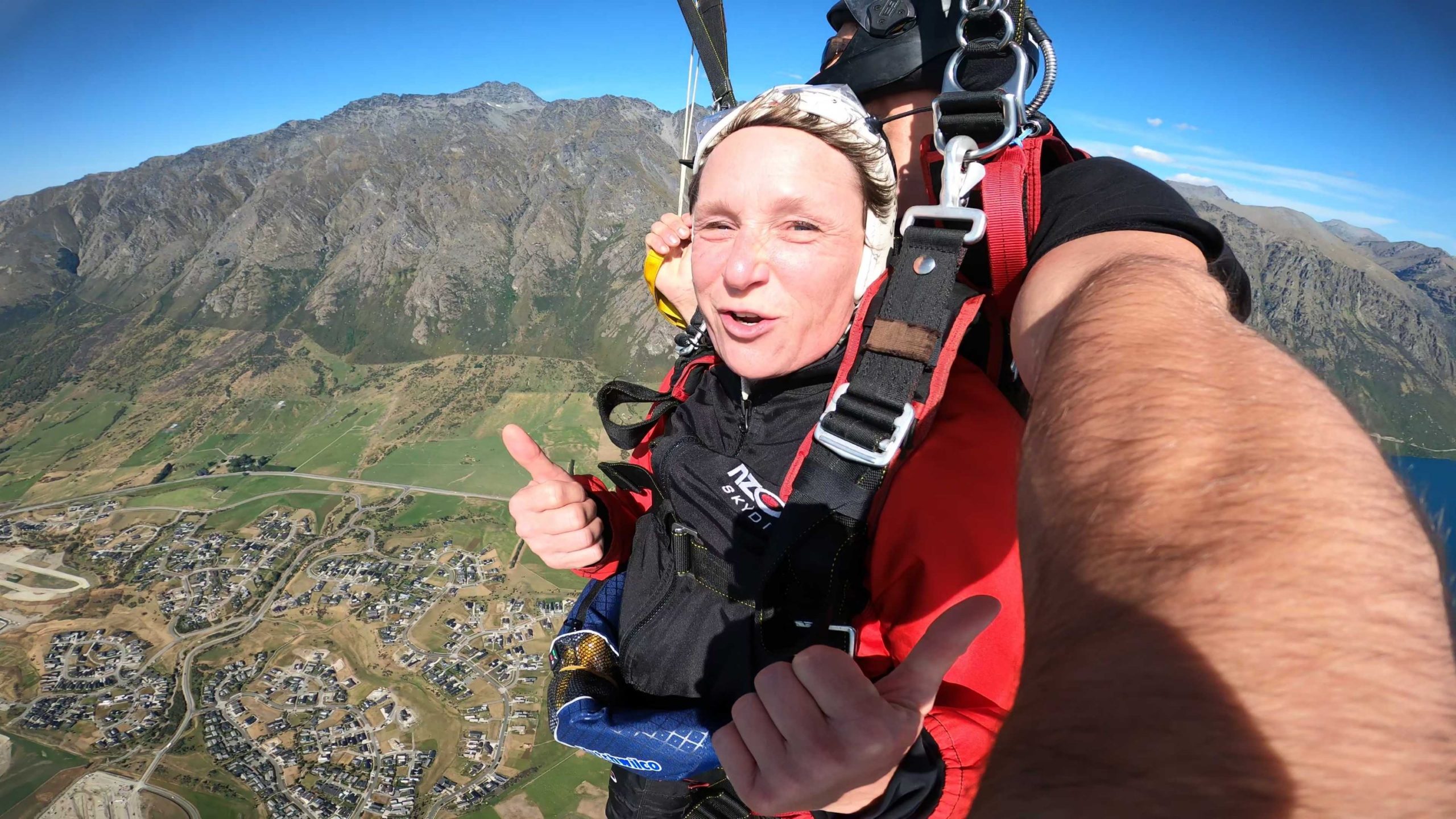 I was afraid of the spring in the edge of the plane waiting to jump out. It was the easiest part. So was the tumbling in the air for a few seconds. What was difficult was the force on your face and body as you free fall. It was a little more difficult to breath but not too bad. Before you knew it the parachute was opened and you were floating. Of course, Will my transfer buddy loved to do done on the air. It turned my stomach a bit, but I survived.