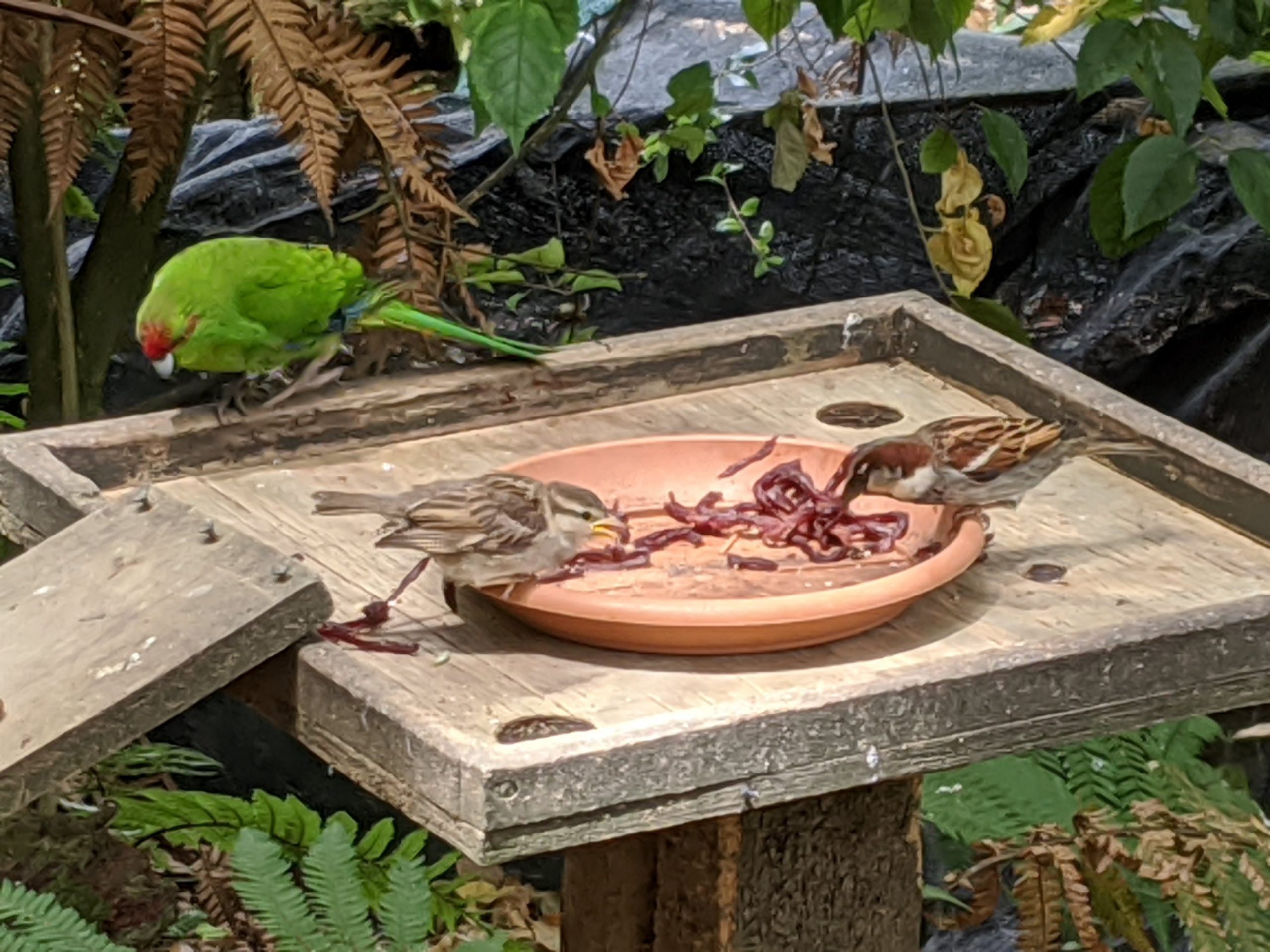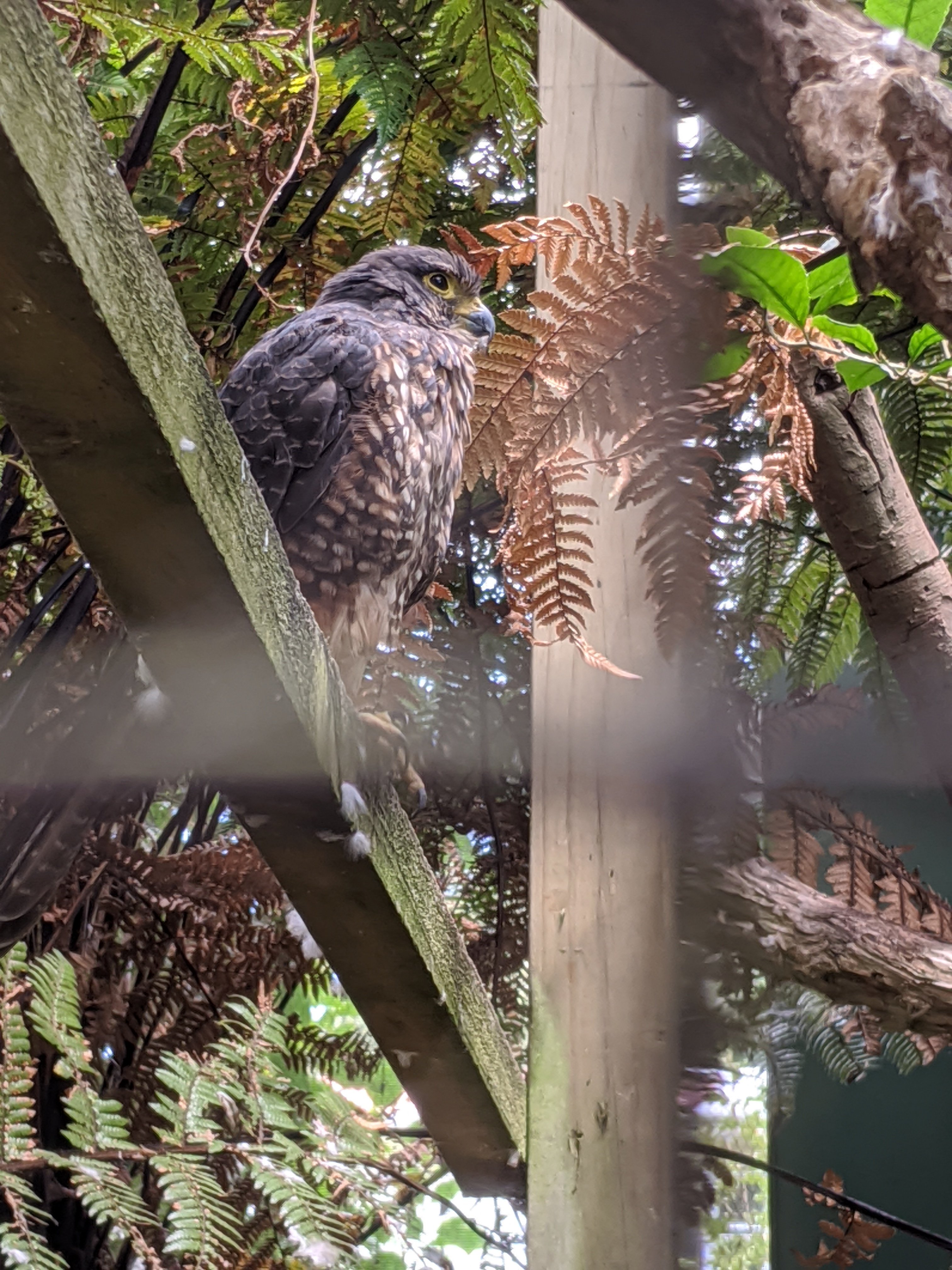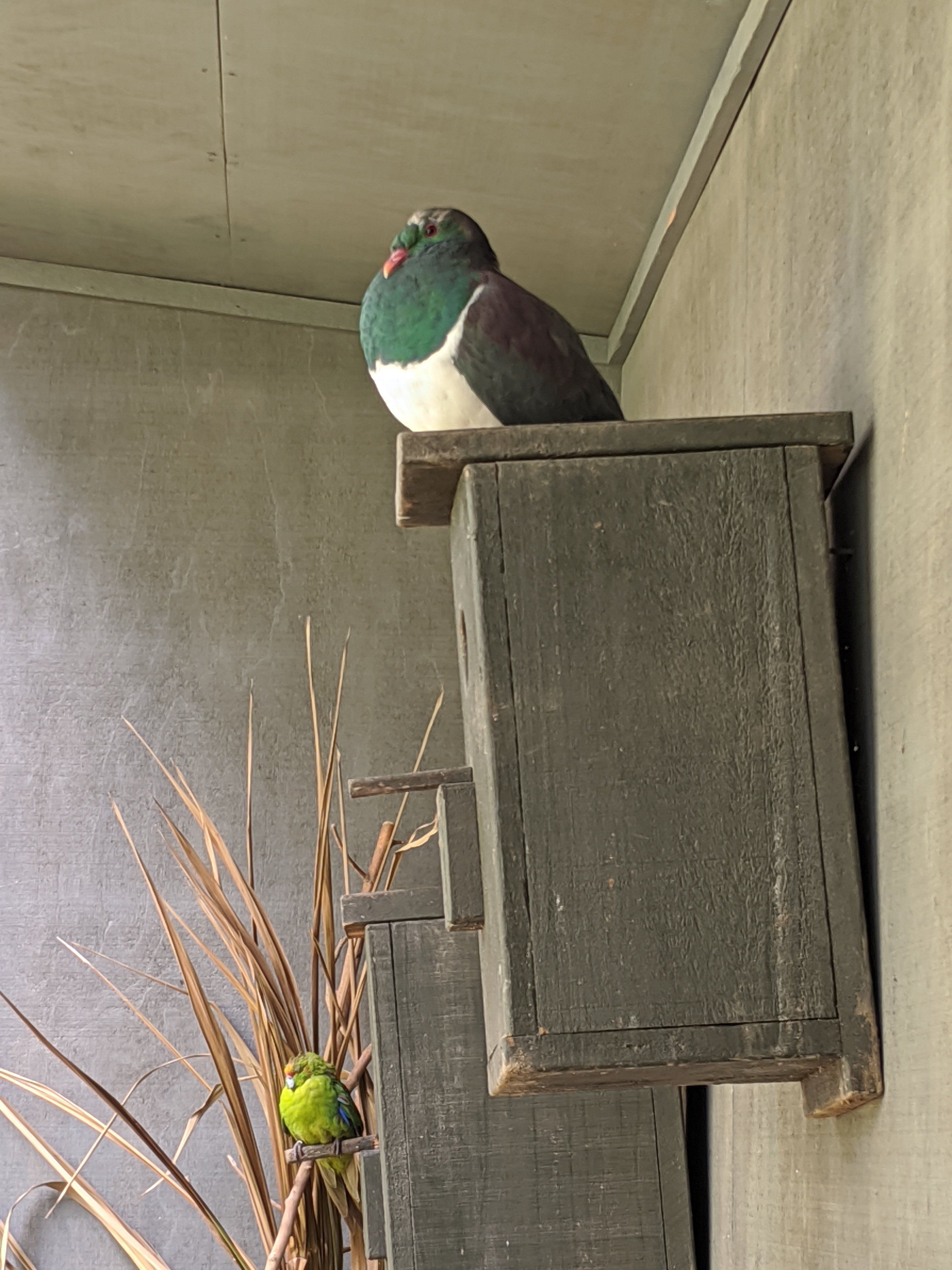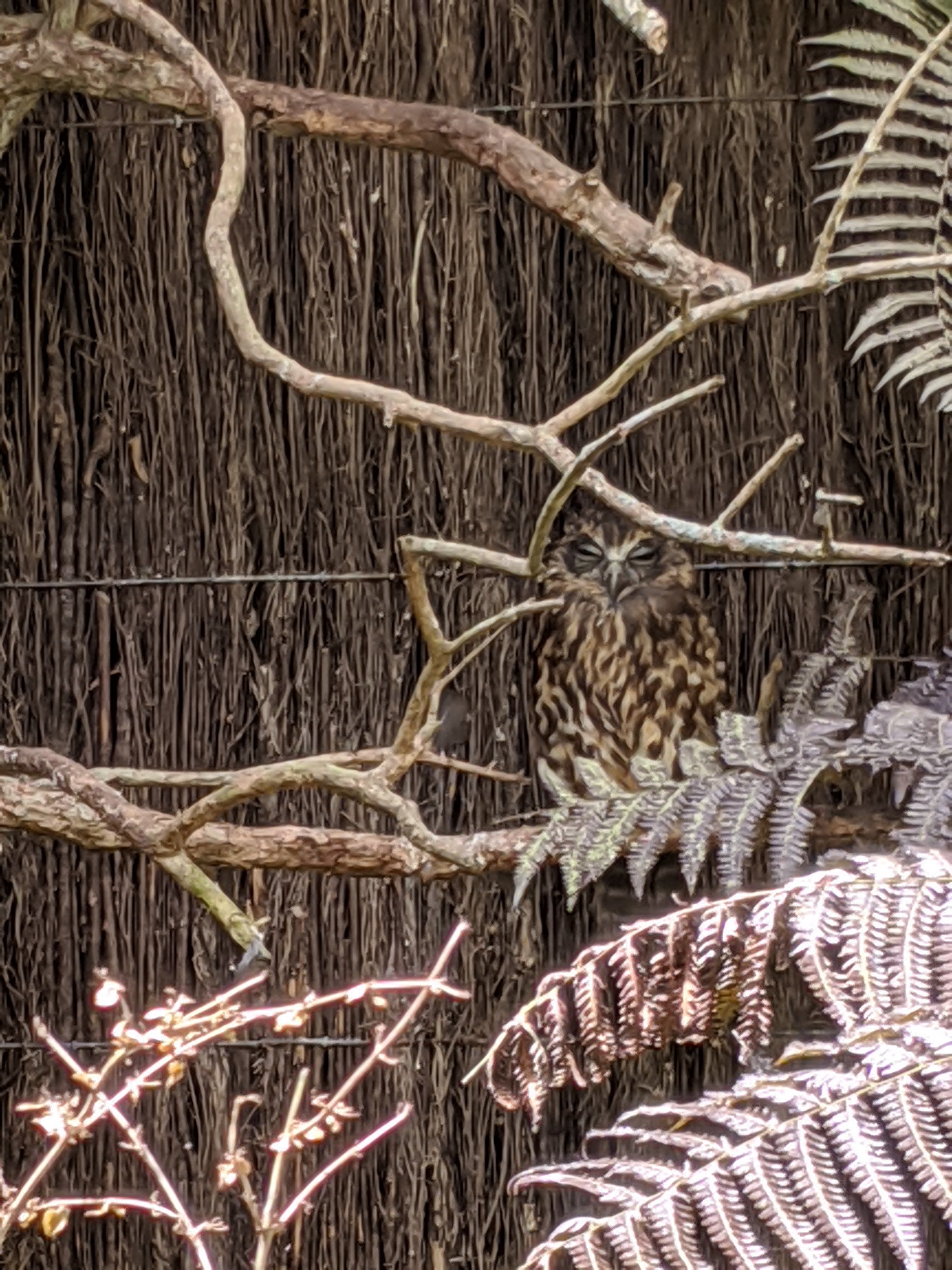 Ruru. NZ Owl.Ducks of course.Karearea. NZ falcon. Introduced predator is a stoat like a large ferret. Ruru.Kakariki. Red crowned parakeet. Kereru. NZ. Wood pigeon. Sacred kingfisher.Pied stilt.South island pied oystercatcher.Variable oystercatcher.White faced Blue heron. Little owl.Australian shelduck.In the large flight enclosure.The symbol of NZ is the silver fern and the kiwi.