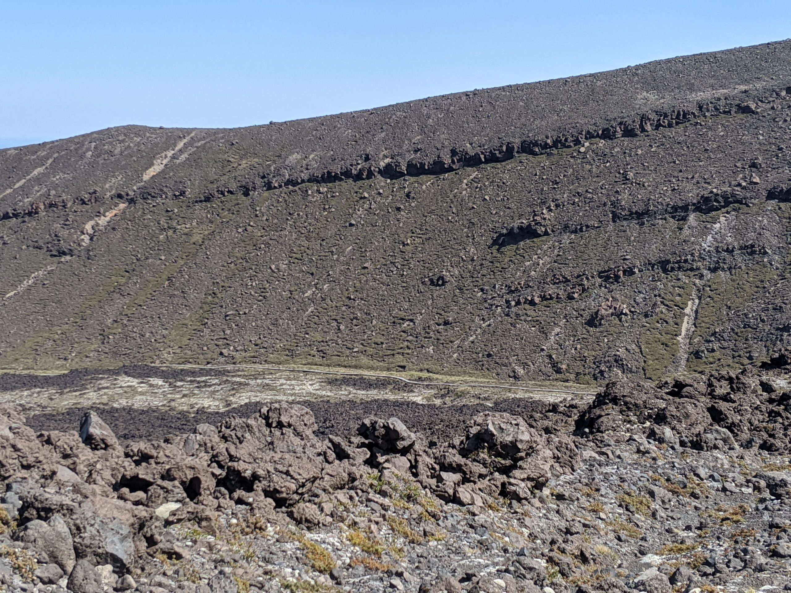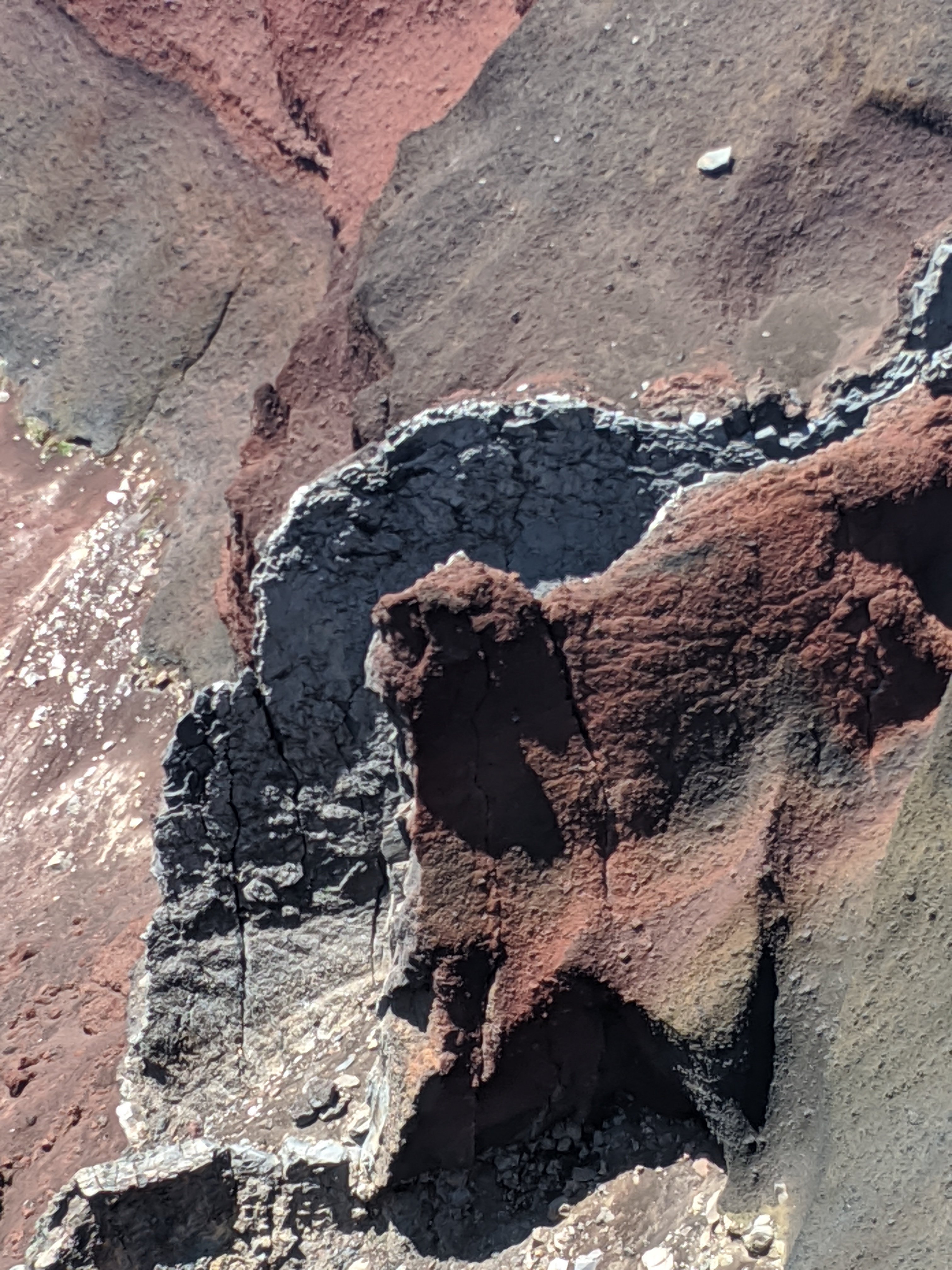 These formations in front are piles of pumice.There was an eruption in 2012. At the top is the red crater. We will be walking right beside that as we get closer.This is Mordor in the Lord of the Rings.This is actually taken at the false summit. It was a pretty difficult climb here and of course if you go up you must come down. I found that even more difficult and needed to use poles to help because of the scree which is loose rock and sand. The guide was helpful in strategies to get down. This is how many get injured.The 2 walls formed above is called a lava dike. This is a close up of the red crater.The red crater.A later formed in a crater.