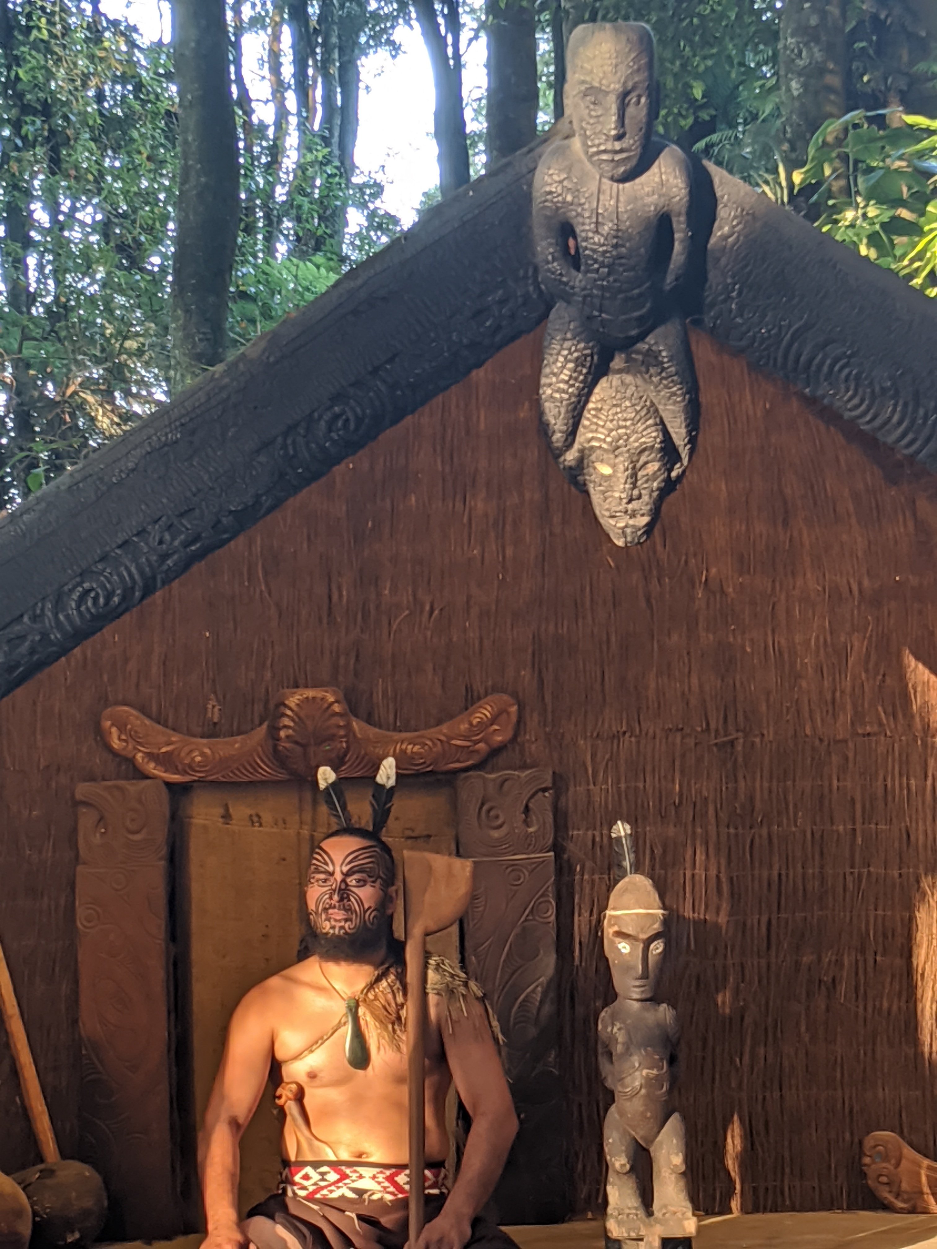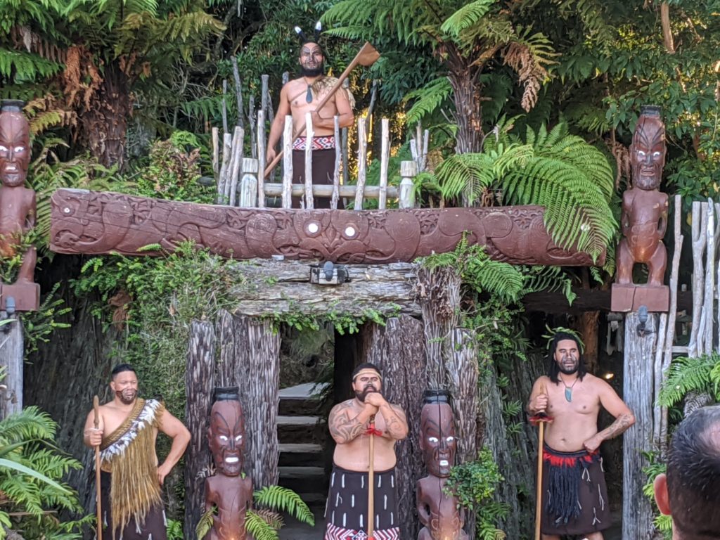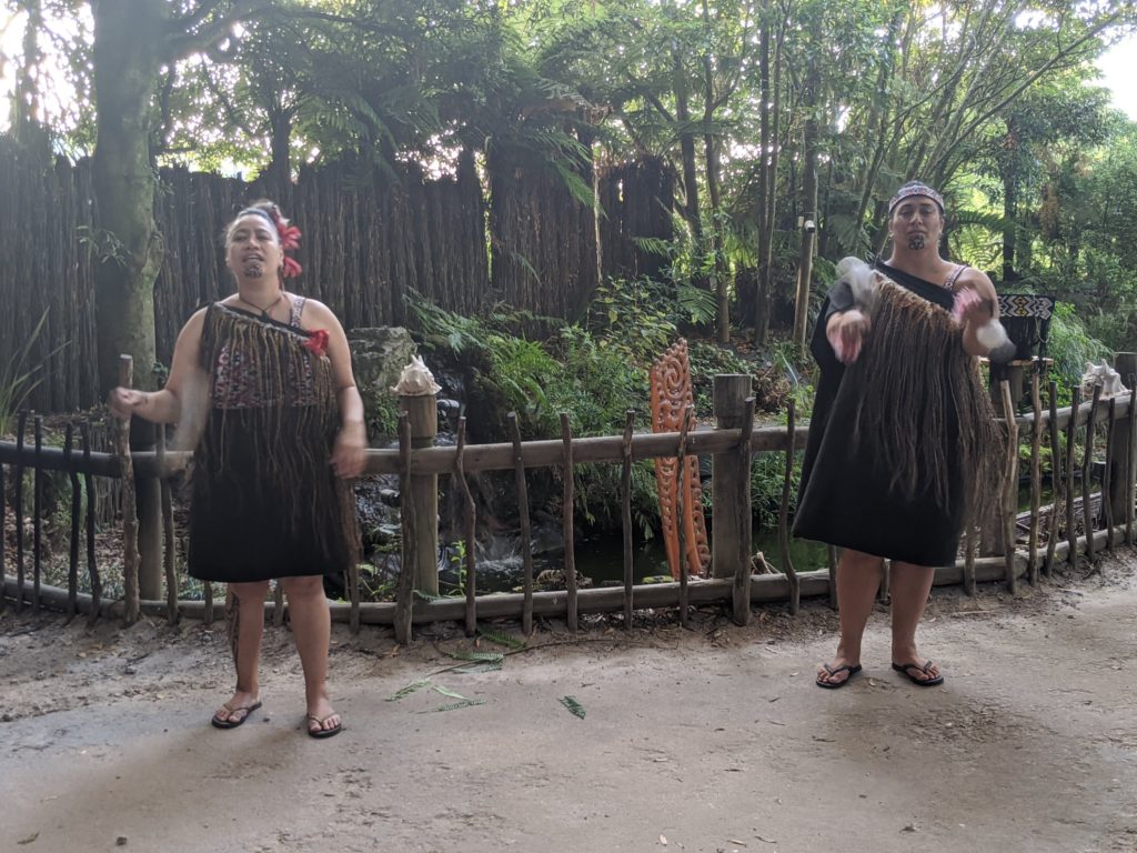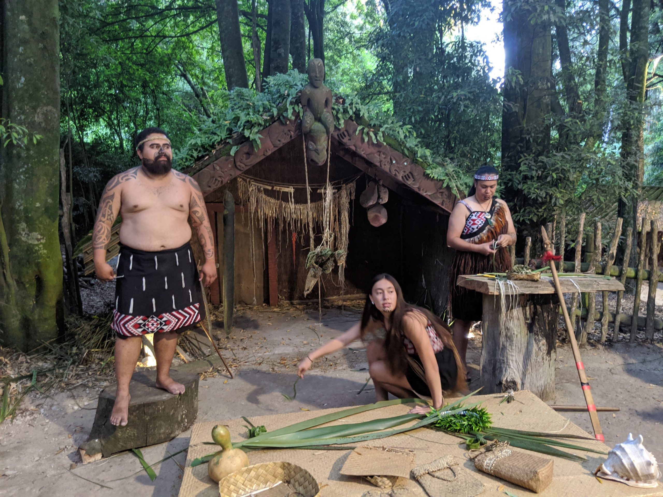 We booked tickets to the Tamaki village. They pick you up at your hotel and take you to a visitors center in town for a brief introduction of Maori legend. On our tickets was a name of a tribe. Ours was Tui. That is the bus you ride. Each bus chooses a make leader to be chief and they are briefed on the opening ceremony. We also practice Maori phrases like: “Kia ora” (hello) and “ka Pai” (okay). The bus driver was hilarious.