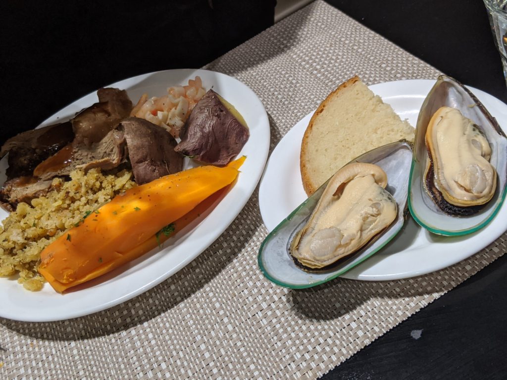 We ate a Hangi dinner which was cooked under the ground usually but for us in steel bins on to of the hot Earth. It had a wood fired taste to the food and was delicious. They had lamb and chicken which I did not eat but also had mussels and fish. We also had pavlova and honey called for dessert.
