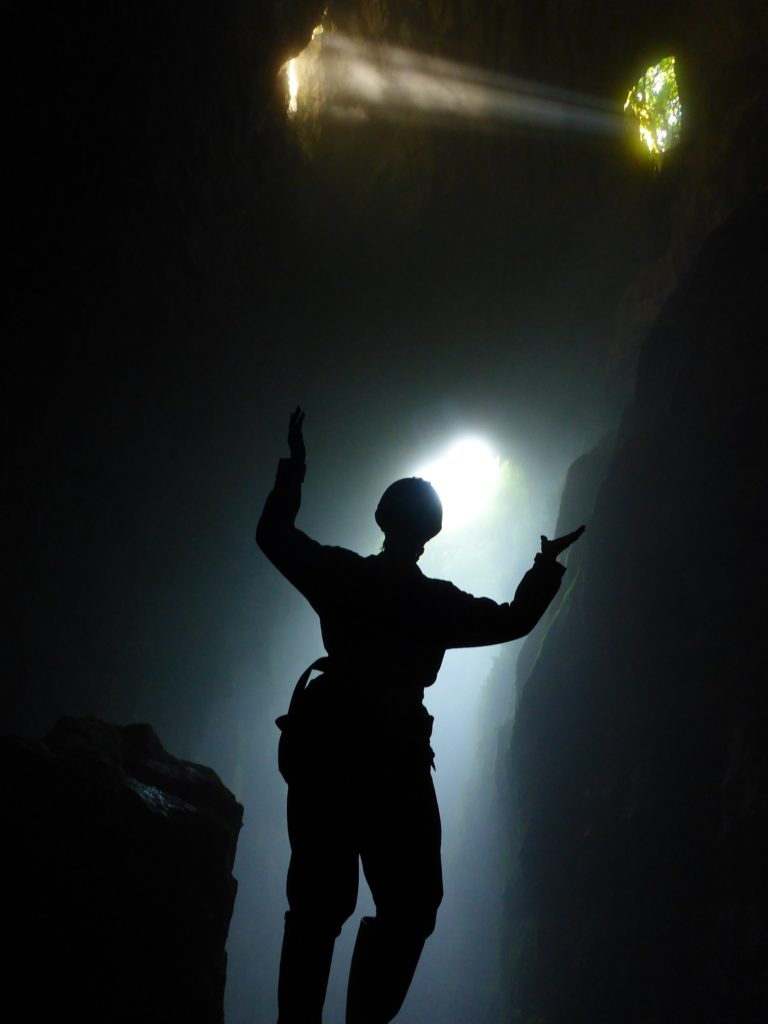 The way back out was a little more difficult. We climbed a few more rocks and ended at a ladder. One by one we climbed 137+ rungs of a ladder straight up to get out. We are attached to a rope at the end that Luke could also use to help pull us up. So no likelihood of plummeting to death. A good thing. Luke went first, then Caroline, then me. It seemed like a long time before the rope was sent back down to me to attach to. It is daunting.