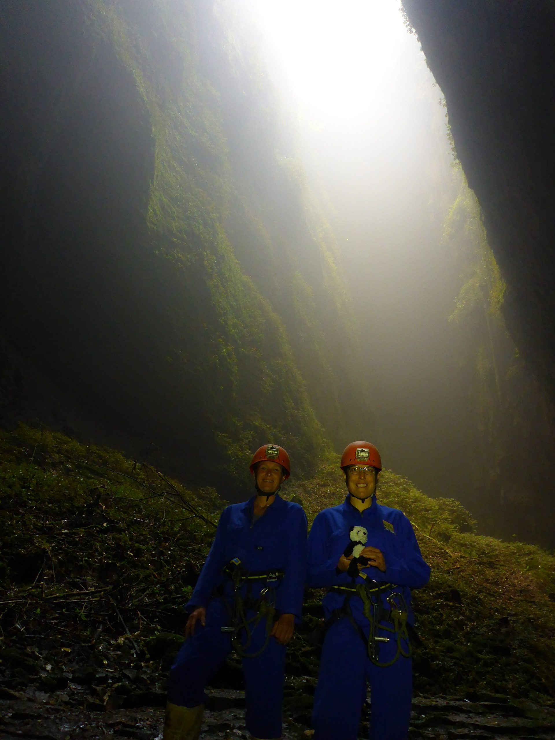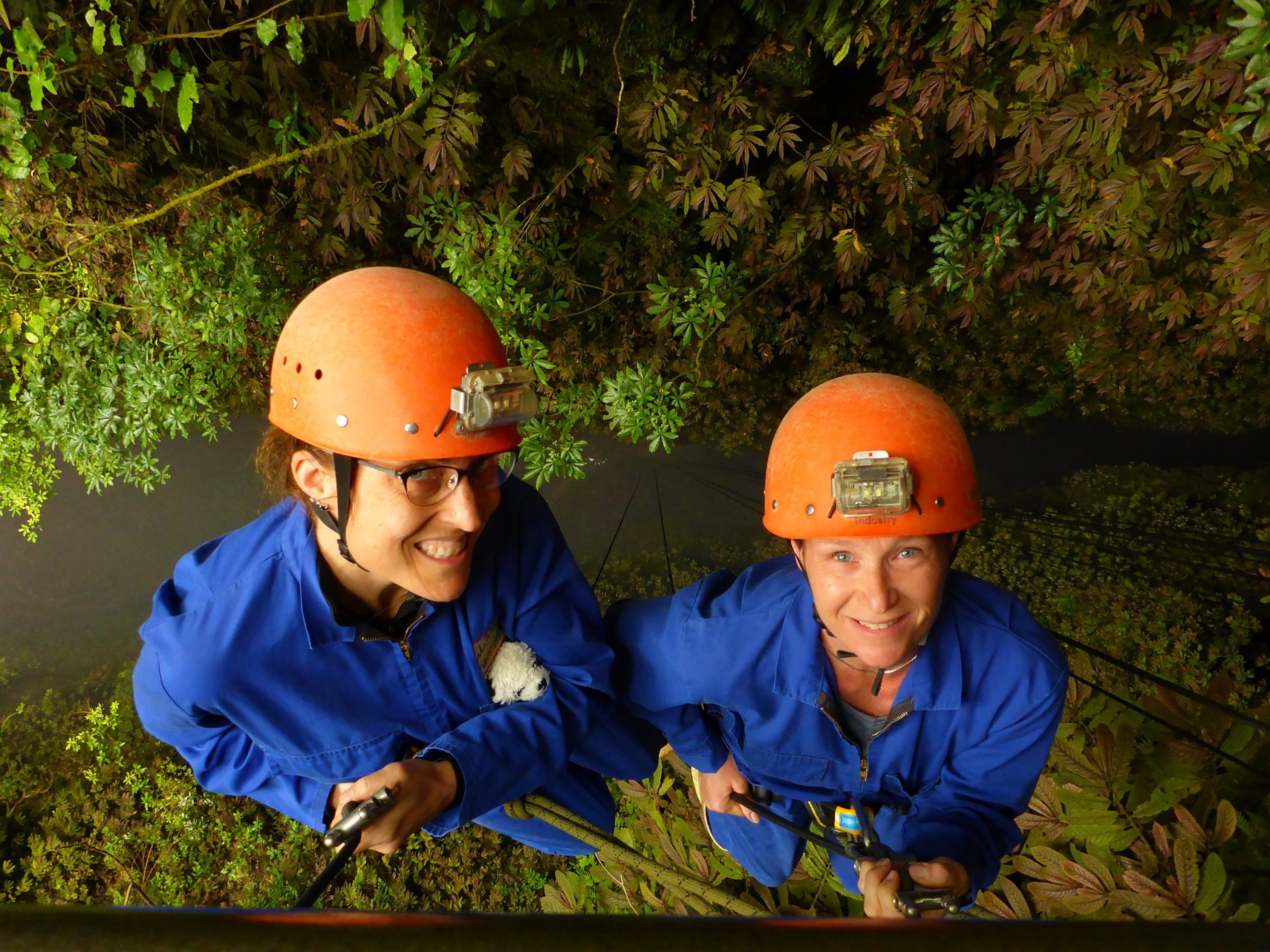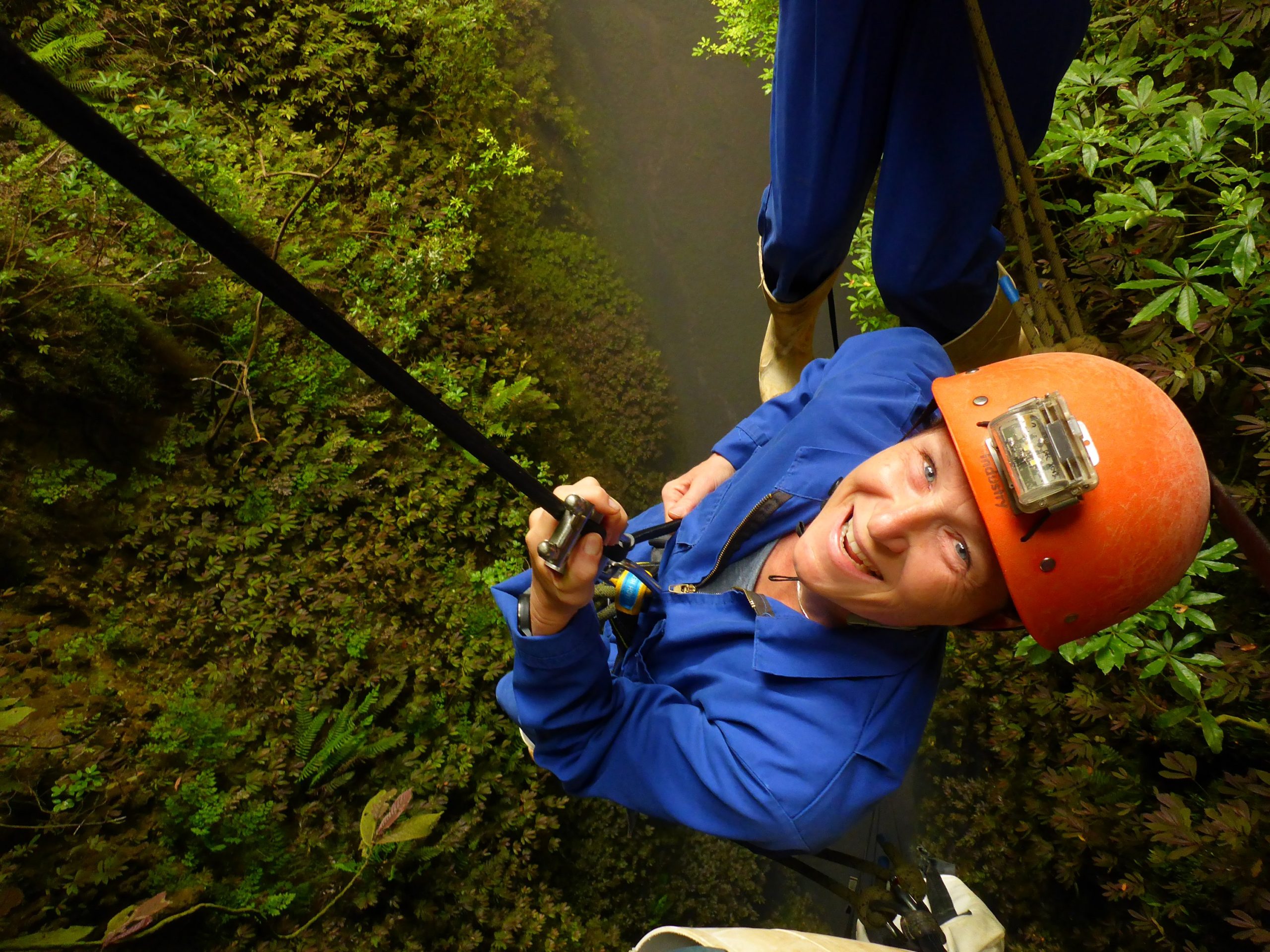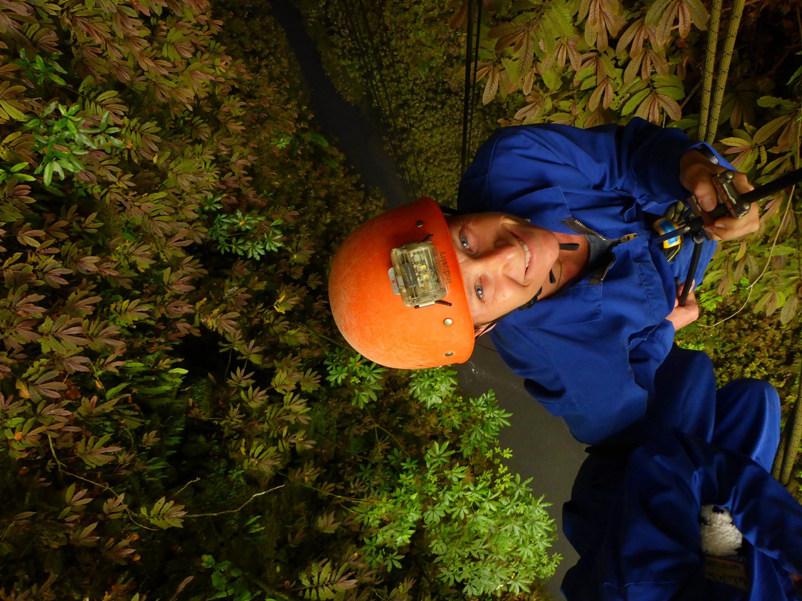 At the bottom the top looked so far away as we had abseiled 100 meters down. The biome changed as we descended.