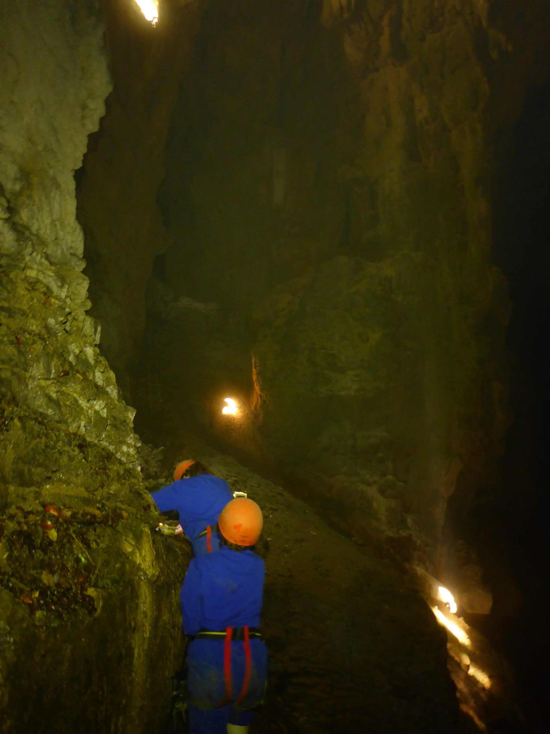 We walked to the entrance and along the way we practiced clipping our rings to the guide ropes so if we fall we don’t go far. There are new sections of ropes you tie on to along the way and doing it wrong means you owe Luke a beer.