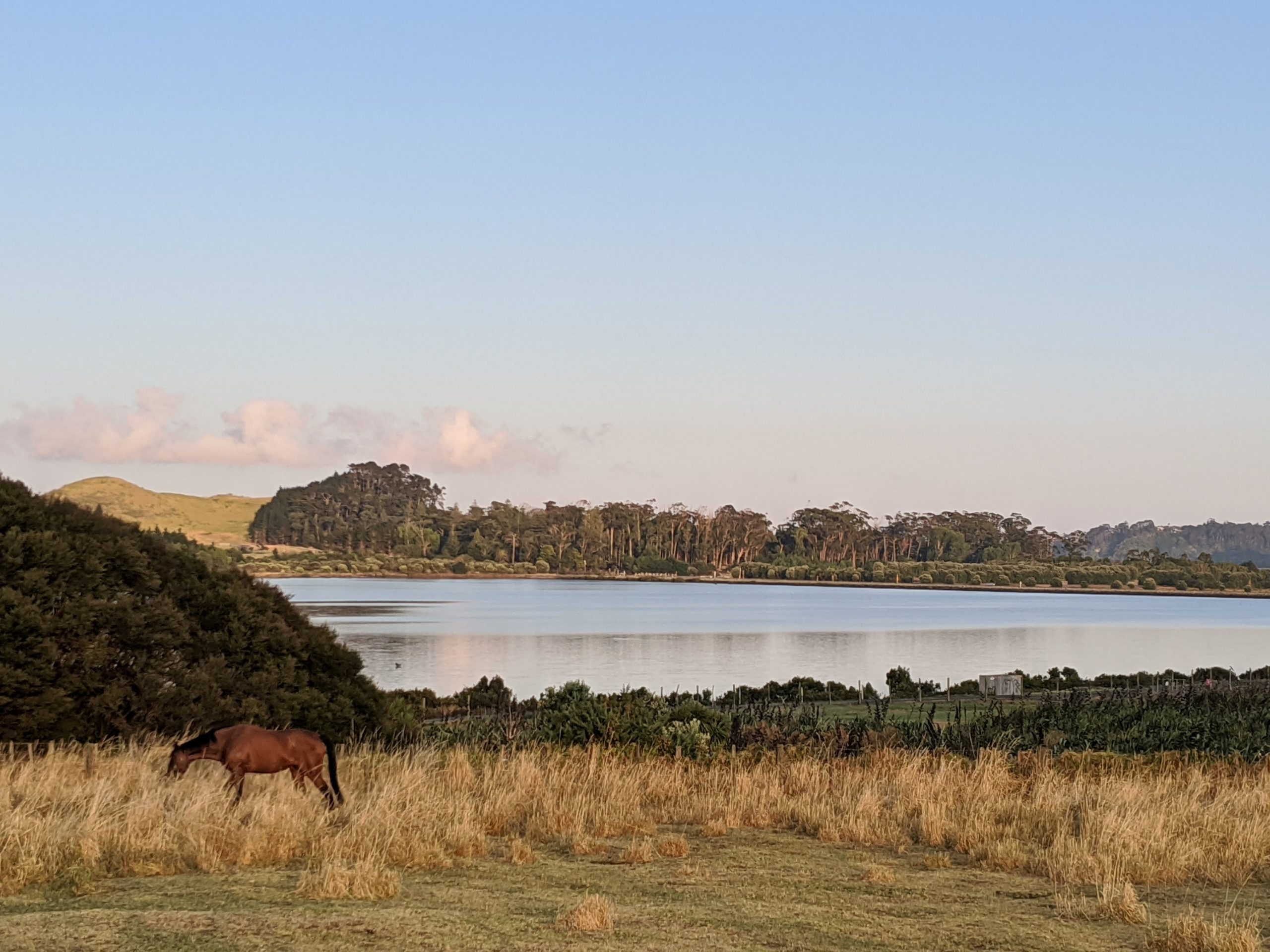 I did manage to get some sleep but my body does not know where in the world I am. We are staying at the Holiday inn Auckland airport which is a 6 NZ ride on the yellow bus from the airport. It is also walking distance to the winery. The views on the walk were gorgeous. We actually ran along that beach in the race.