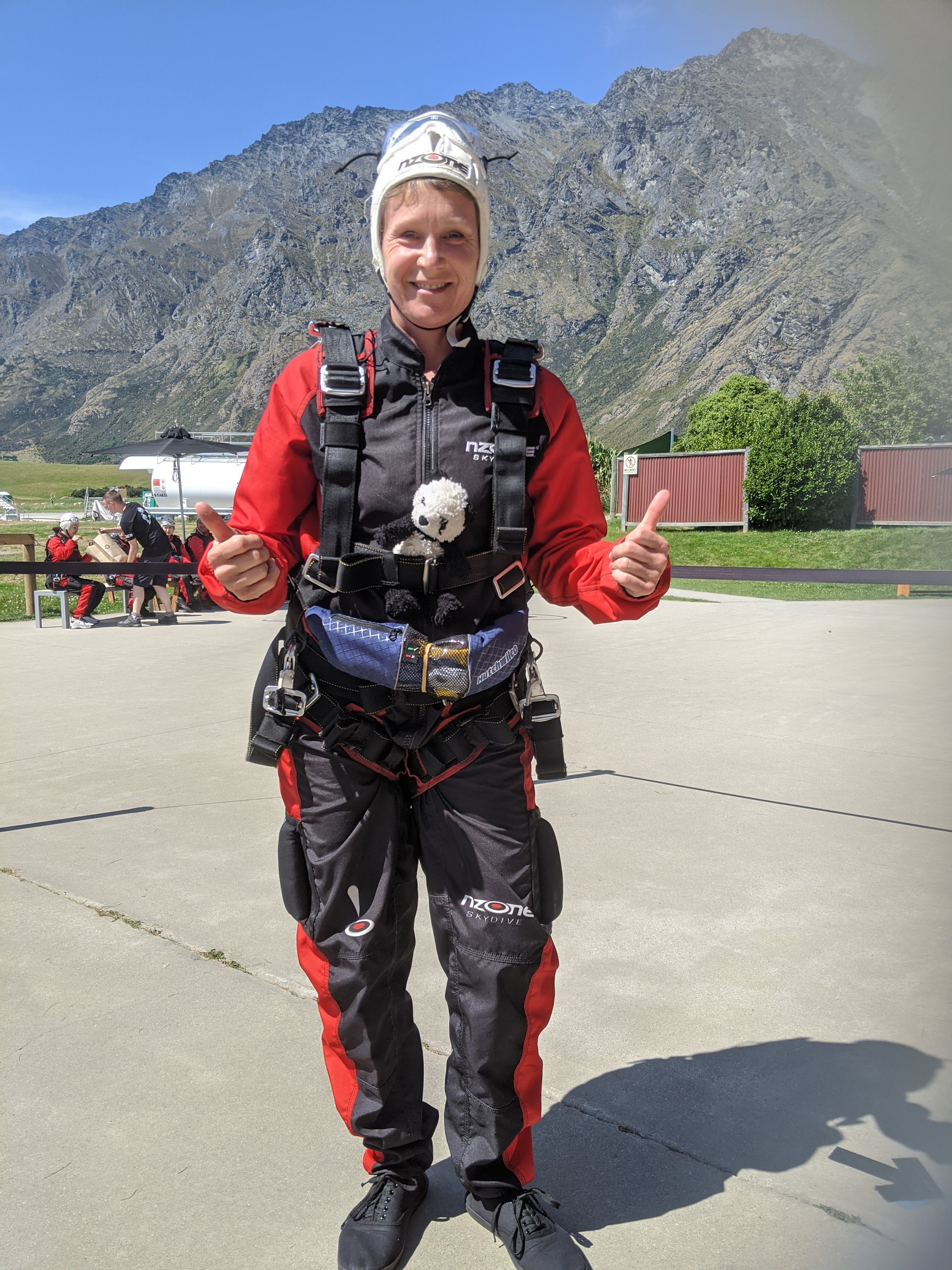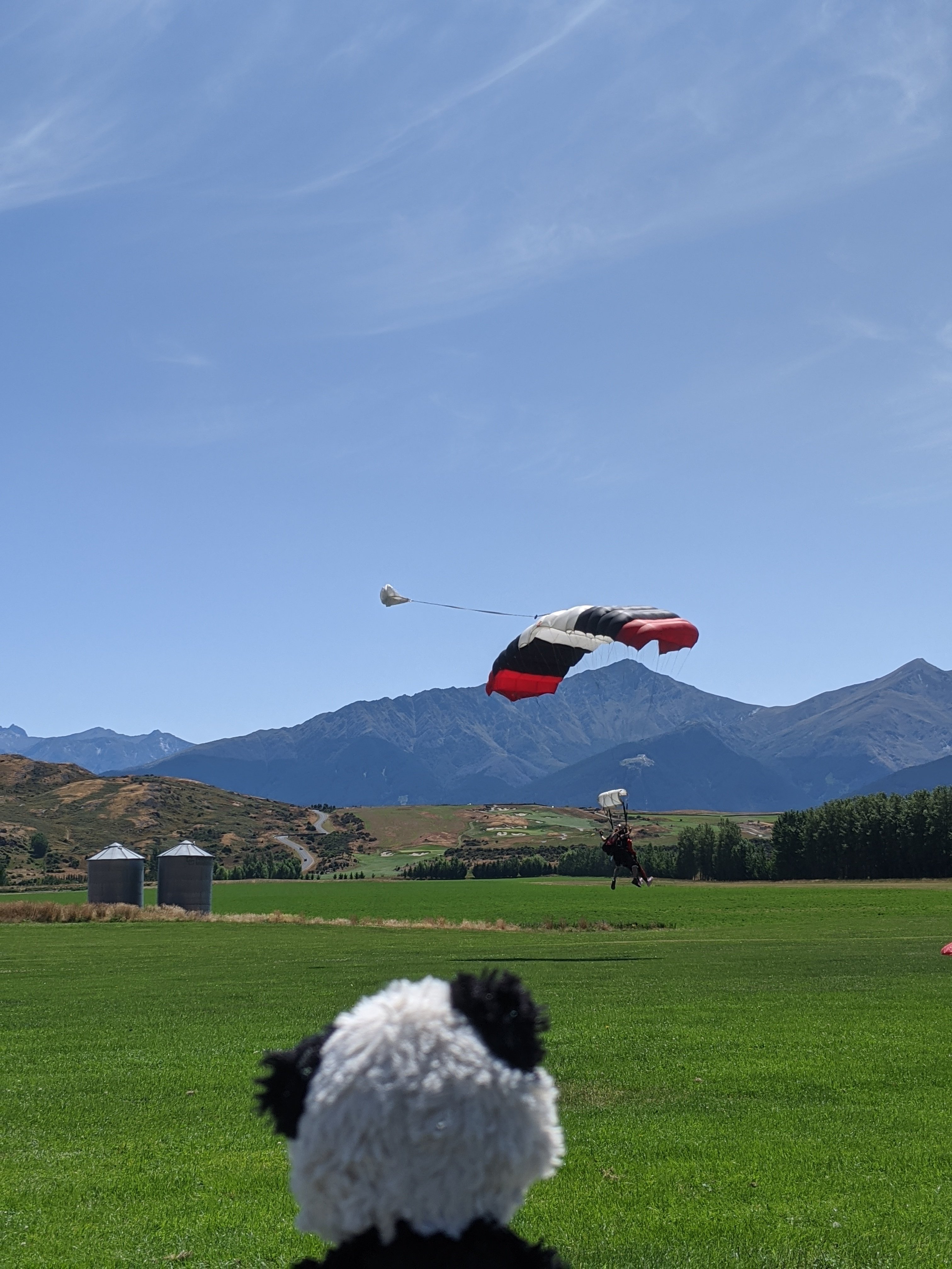 I was more concerned with being on the edge of the plane waiting to jump out but once your are in position it is a split second. I was also worried about the somersaulting we would do initially but it was the easiest part. Once you are free falling the force on your face and ears is immense and a bit disorienting. Once we reached terminal velocity, he opened the parachute and we were gliding. Of course the spinning around had my stomach in knots but it was fun. The landing was easy. They are a top notch facility and the views in NZ make it stunning. One more thing off the bucket list.